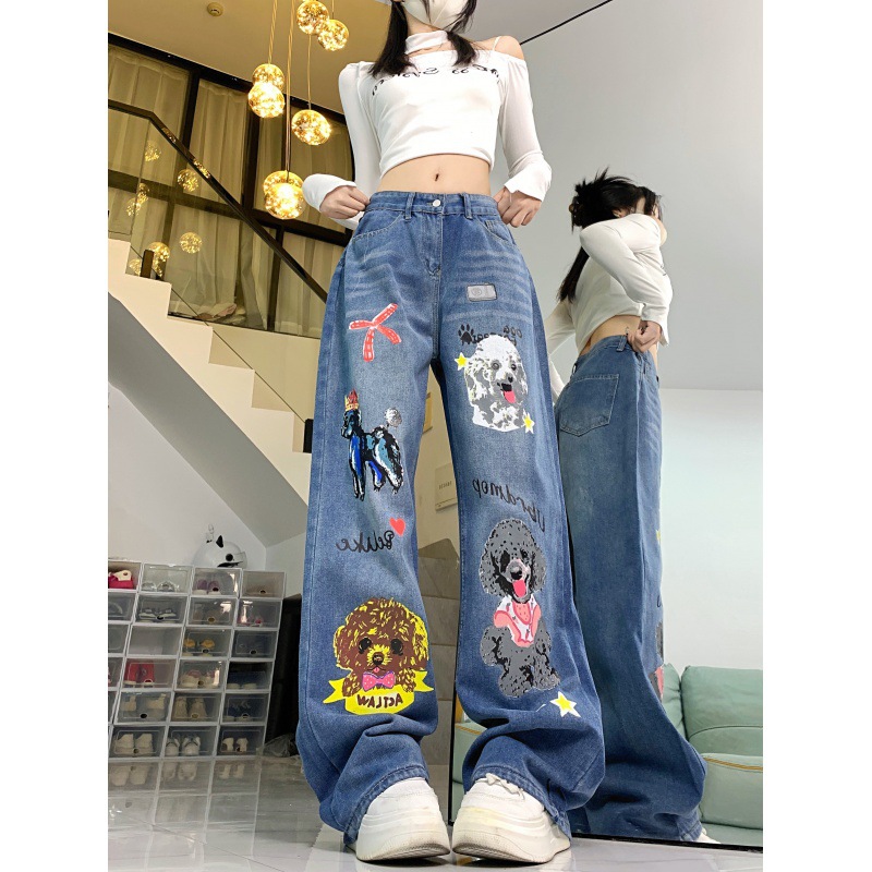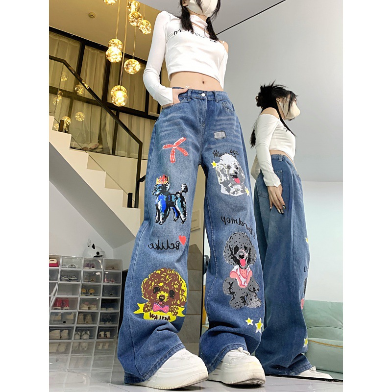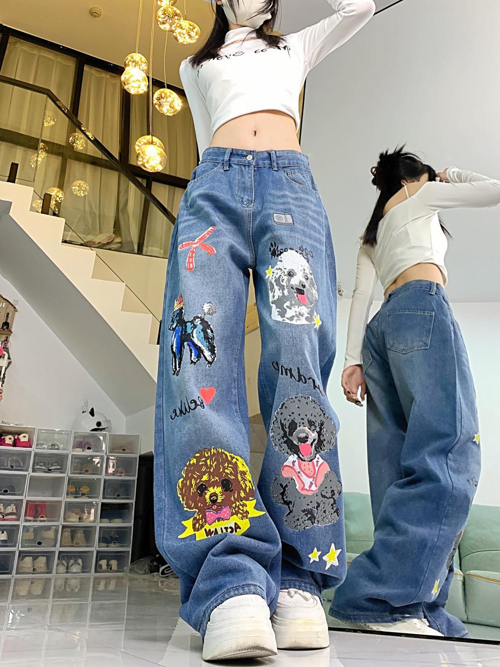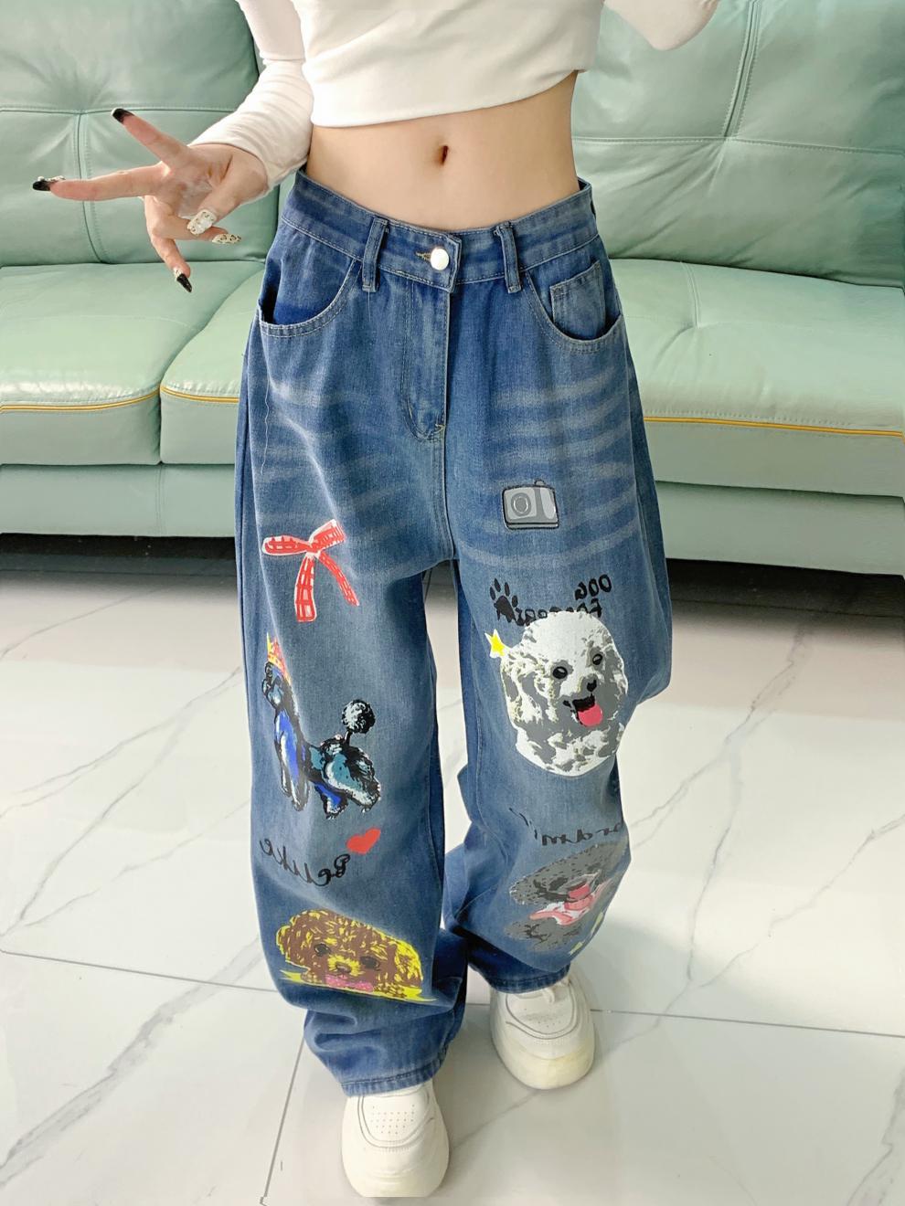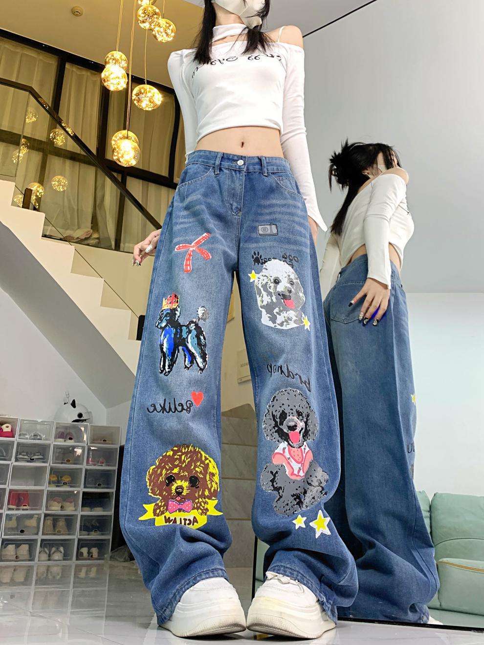 Реже цена!!! Щенки джинсы женский новый дизайн чувство ниши свободные прямые повседневные широкие брюки