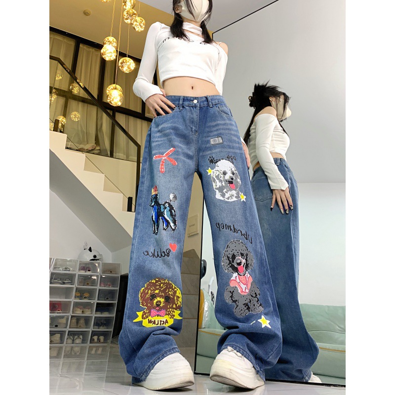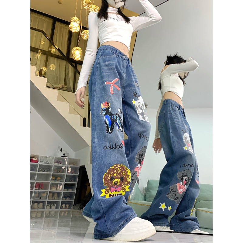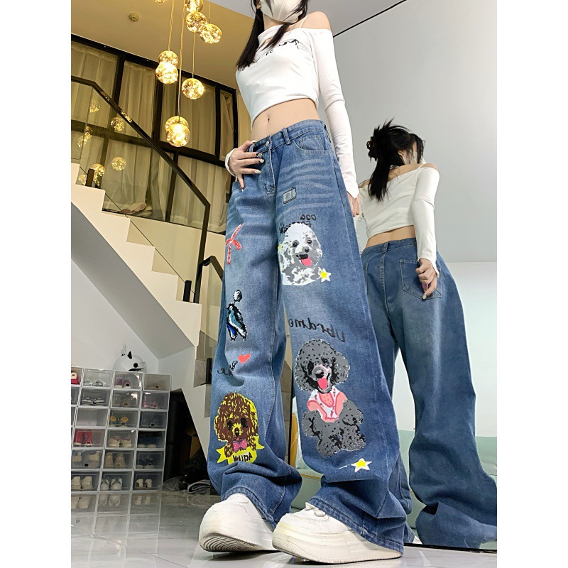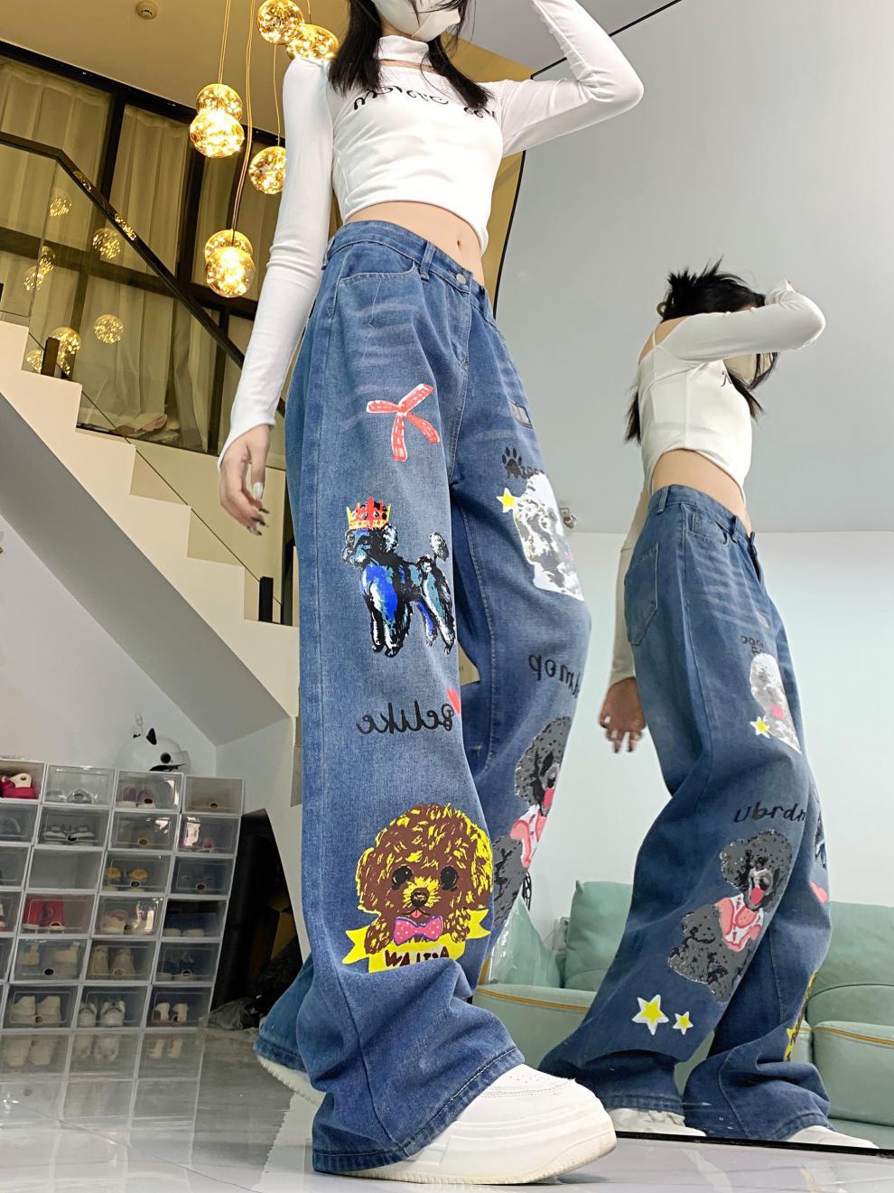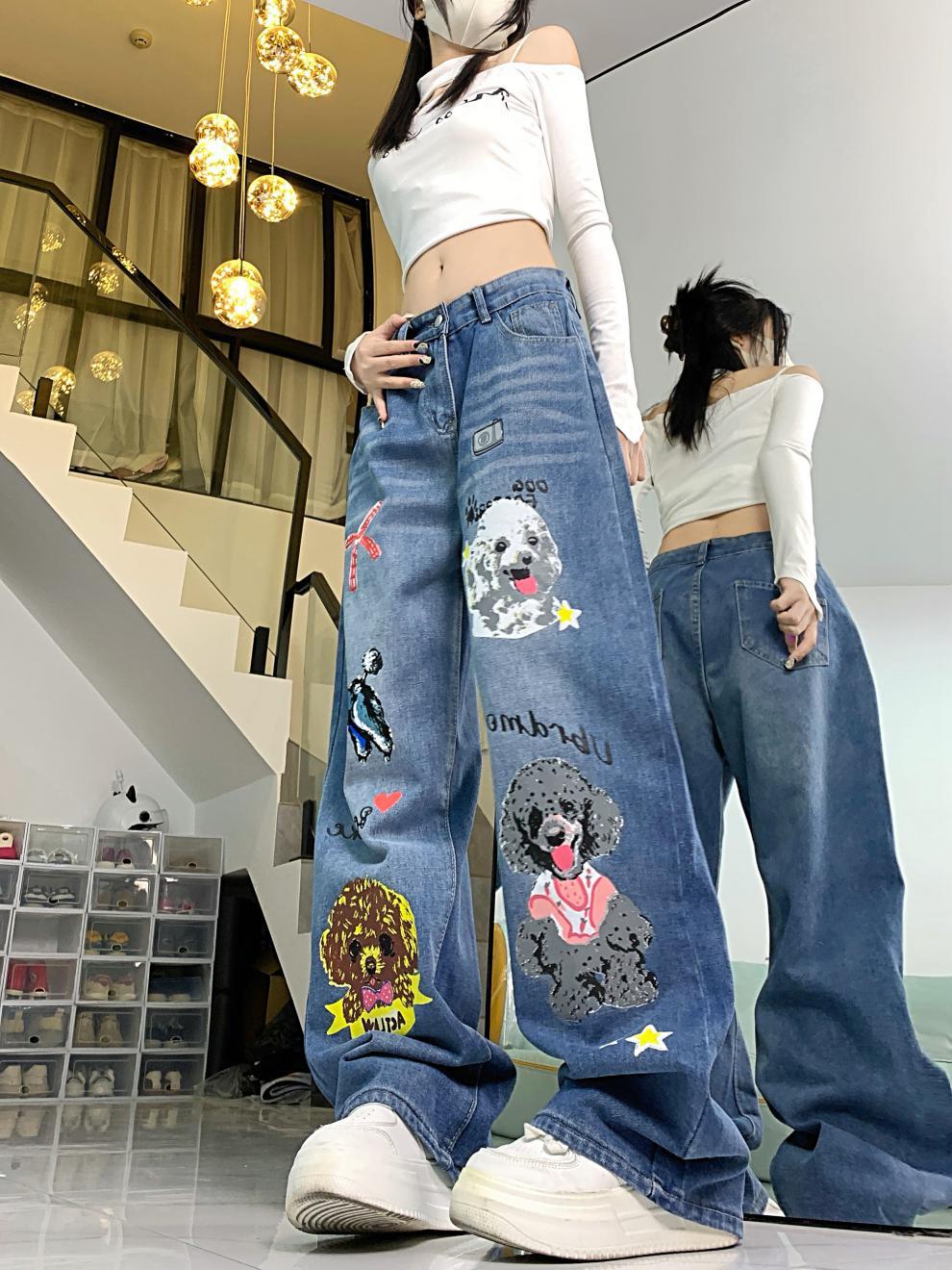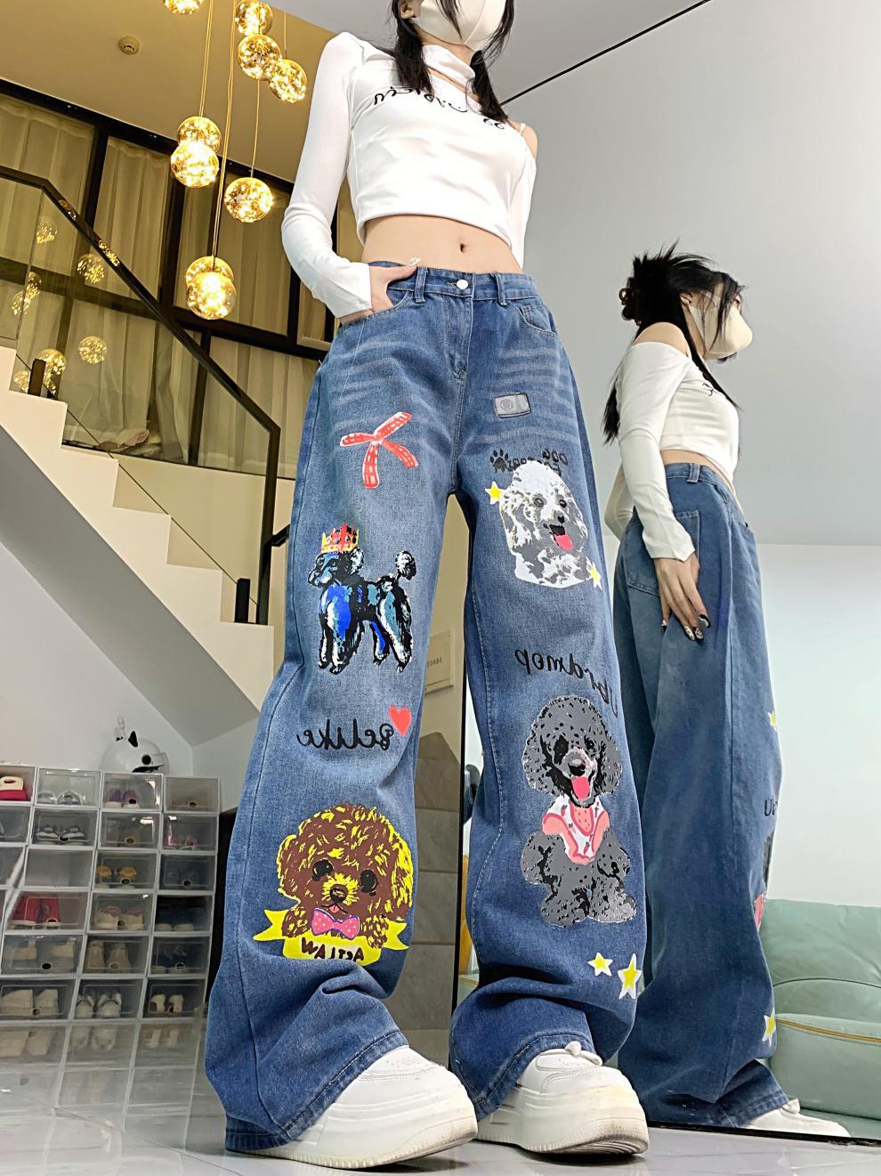 Реже цена!!! Щенки джинсы женский новый дизайн чувство ниши свободные прямые повседневные широкие брюки