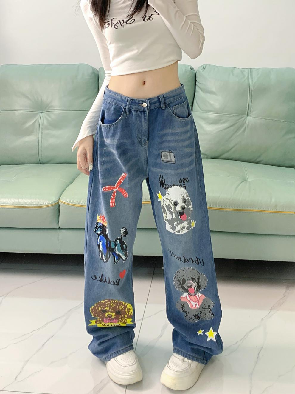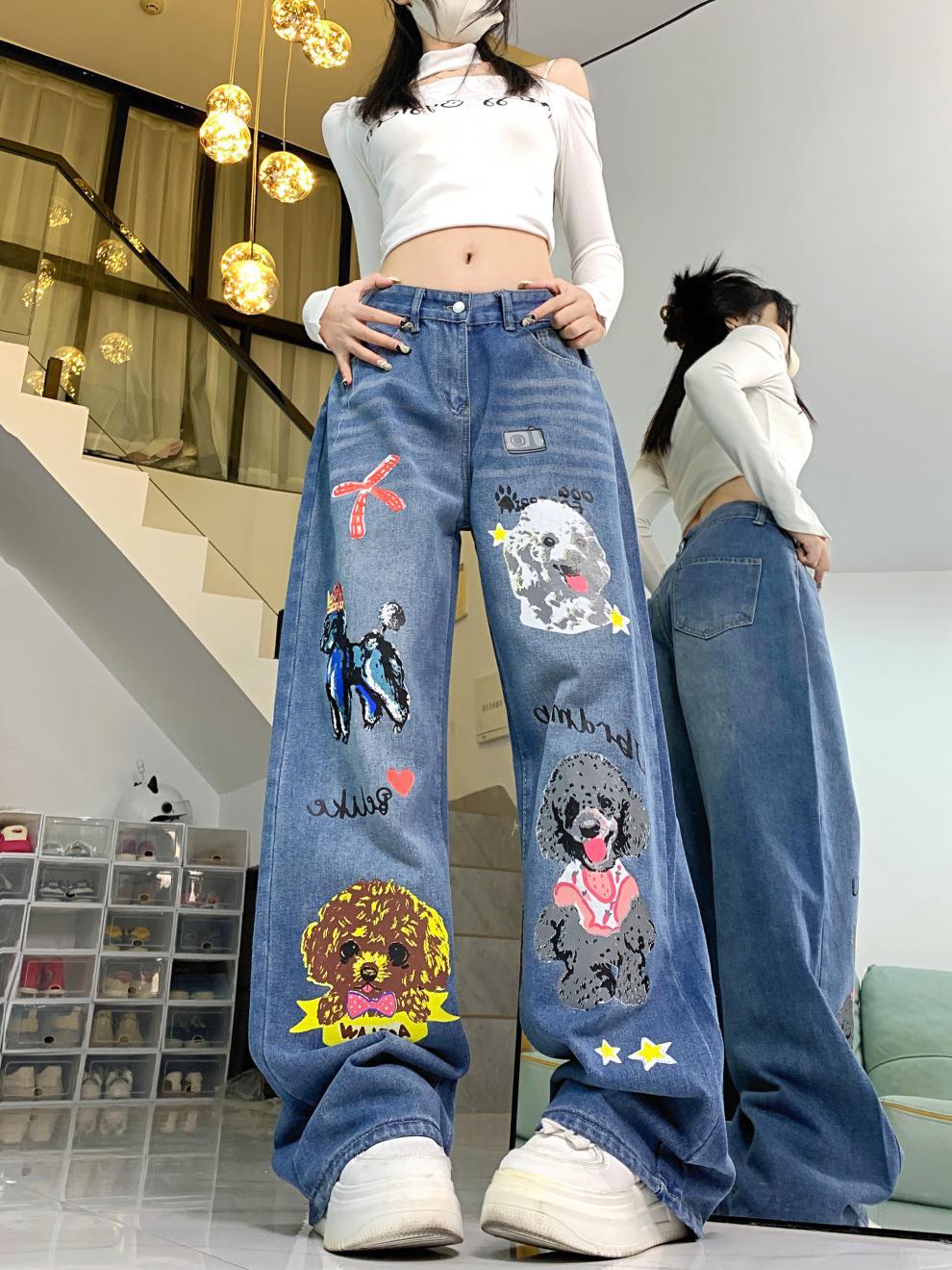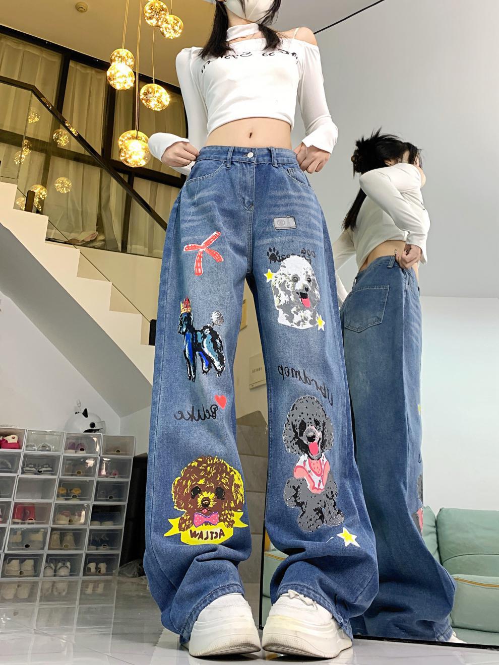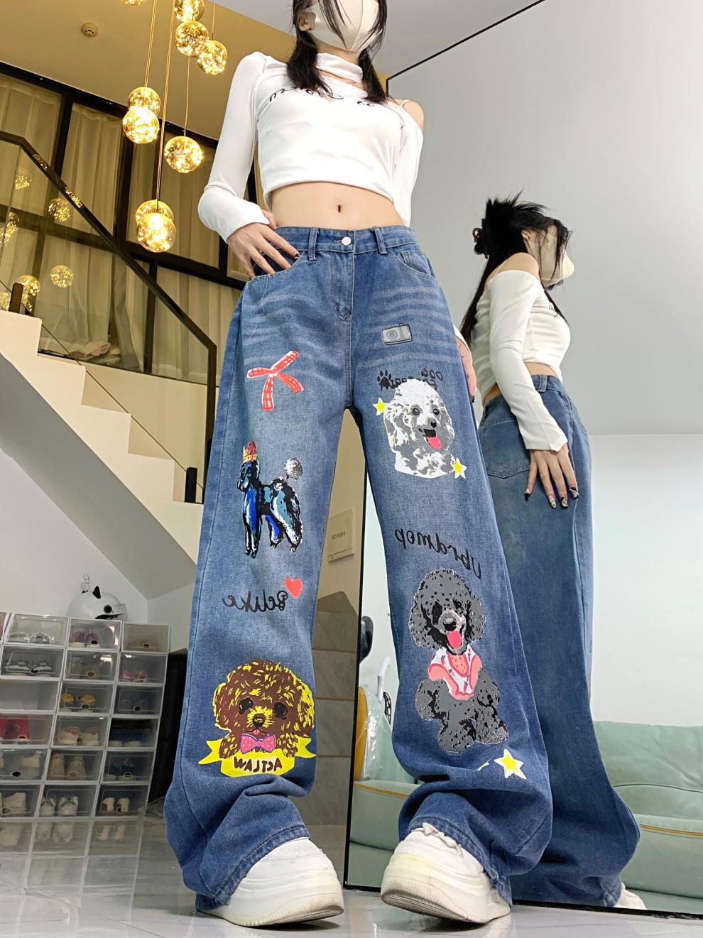 Реже цена!!! Щенки джинсы женский новый дизайн чувство ниши свободные прямые повседневные широкие брюки