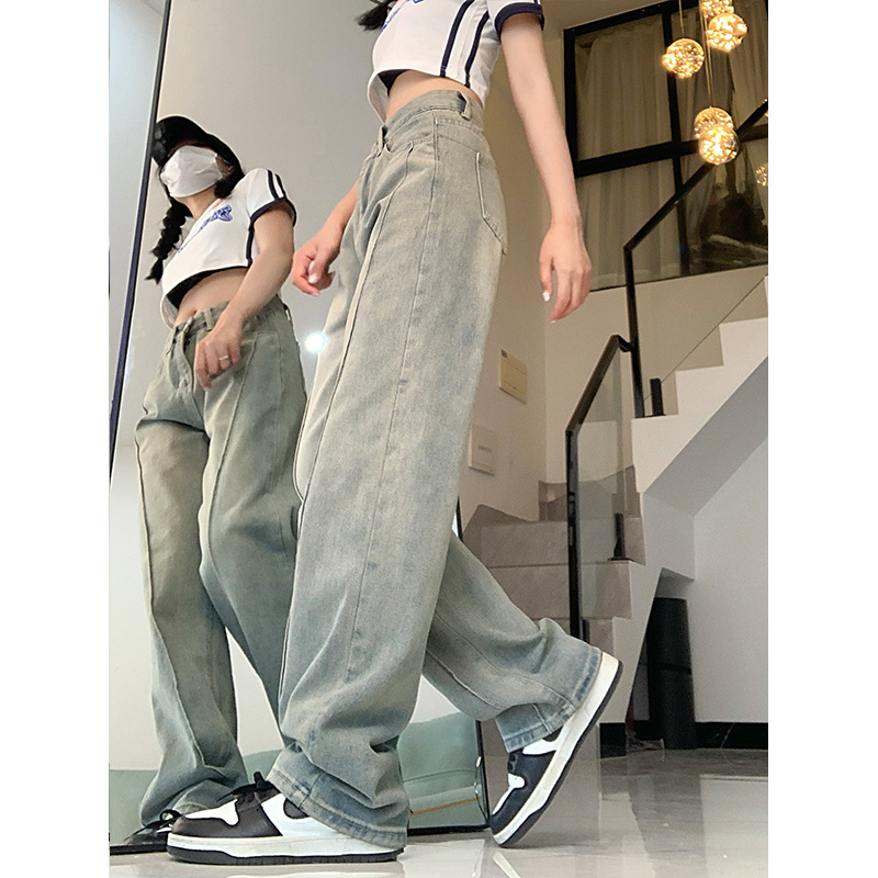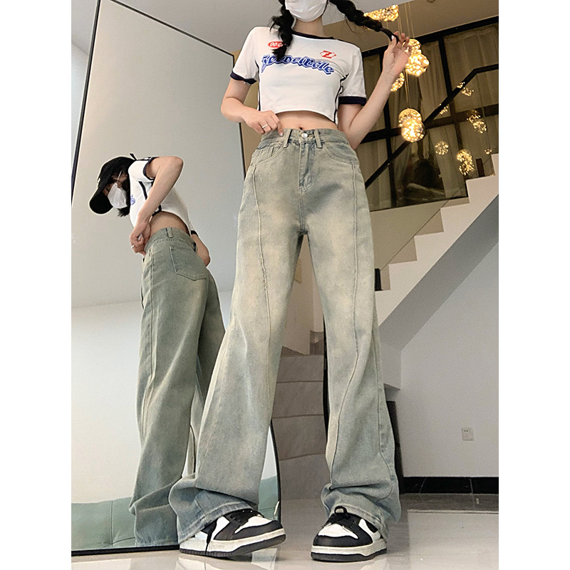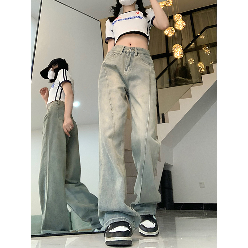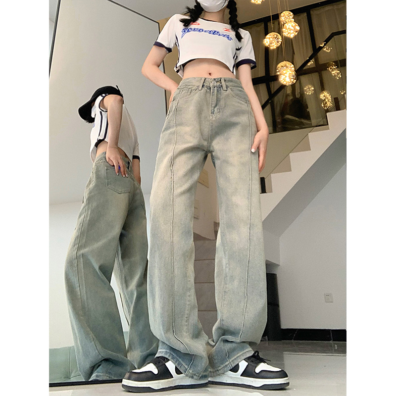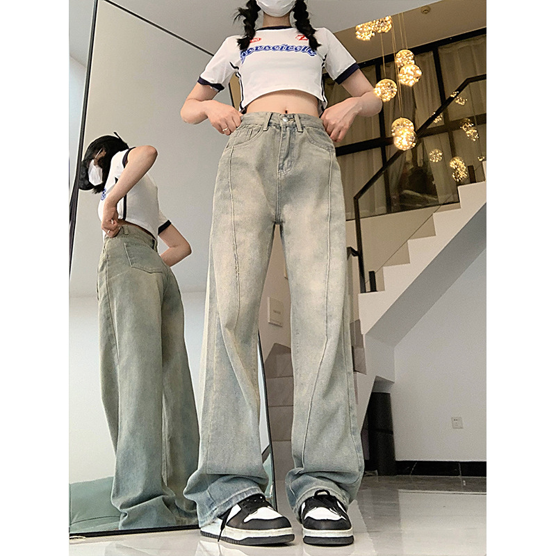 Реальный выстрел по реальной цене! Американские уличные старые желтые грязевые мойки с высокой талией ретро джинсы женские свободные прямые брюки
