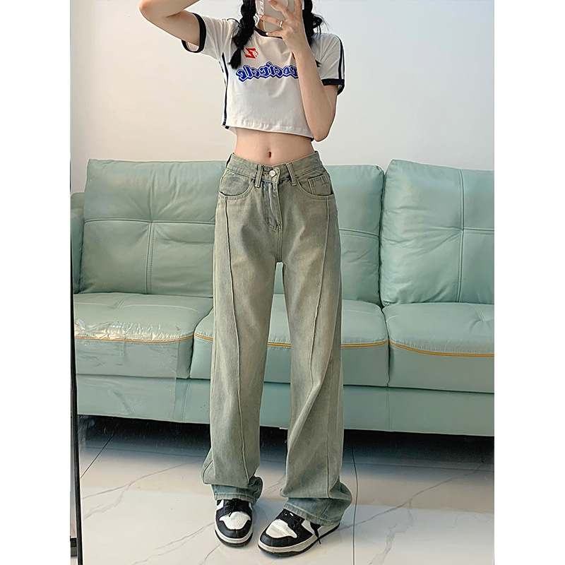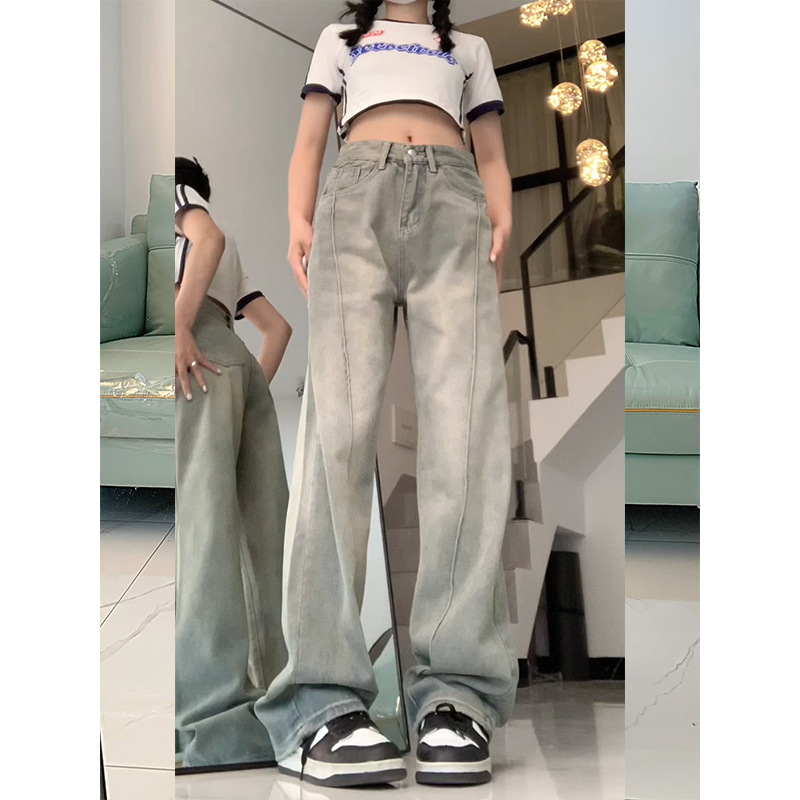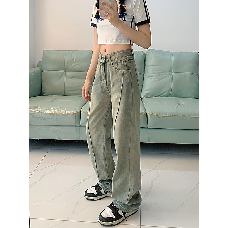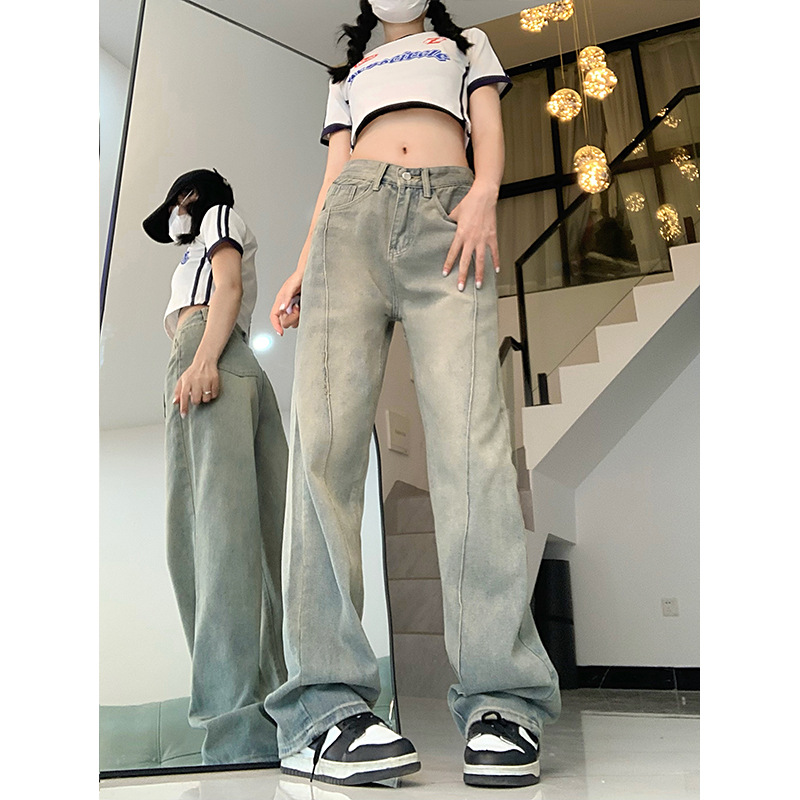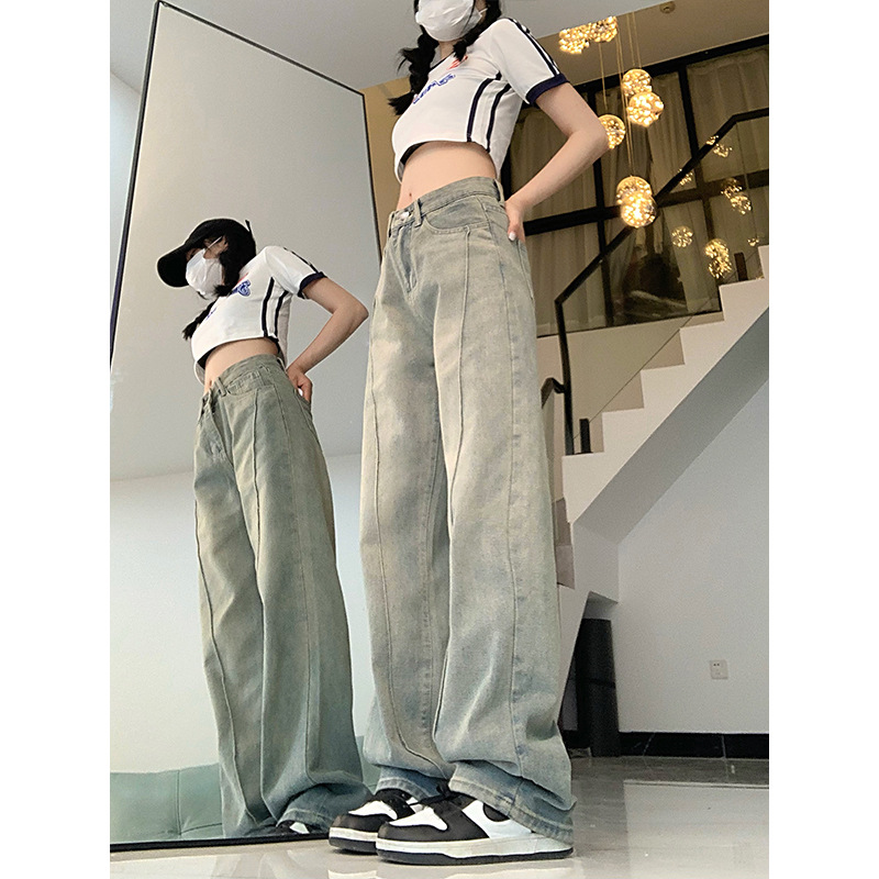 Реальный выстрел по реальной цене! Американские уличные старые желтые грязевые мойки с высокой талией ретро джинсы женские свободные прямые брюки