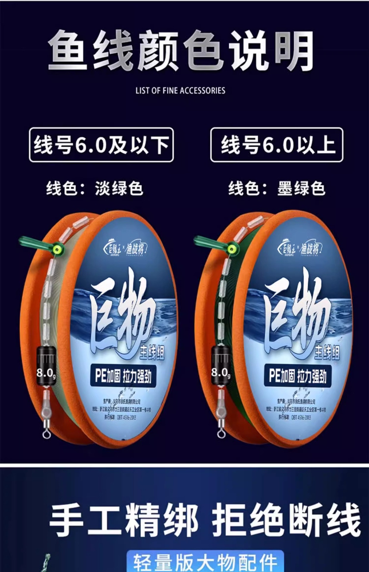 Рыбная нить, привязанная к готовой нейлоновой основной группе рыболовных нитей, полный набор рыболовных нитей