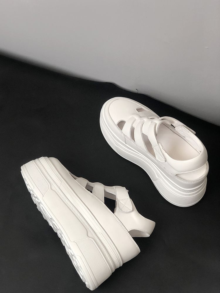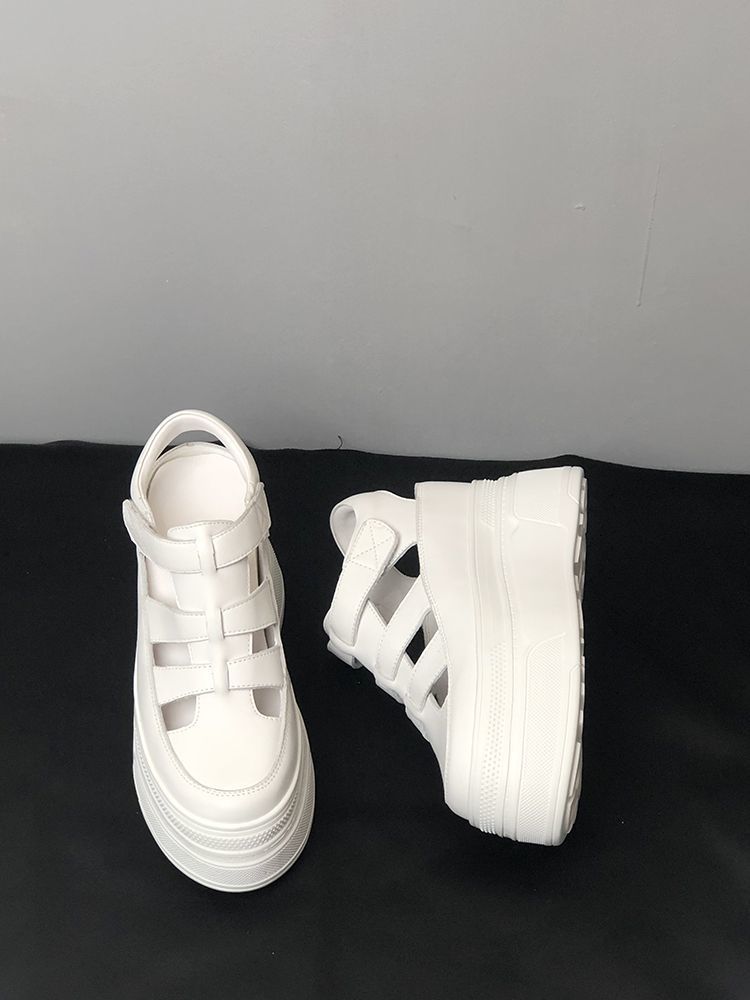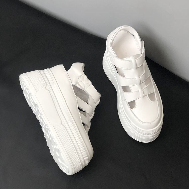 Мягкая кожа 12cm увеличенные спортивные сандалии женский летний 2024 новый баотоу полый кекс с толстым дном
