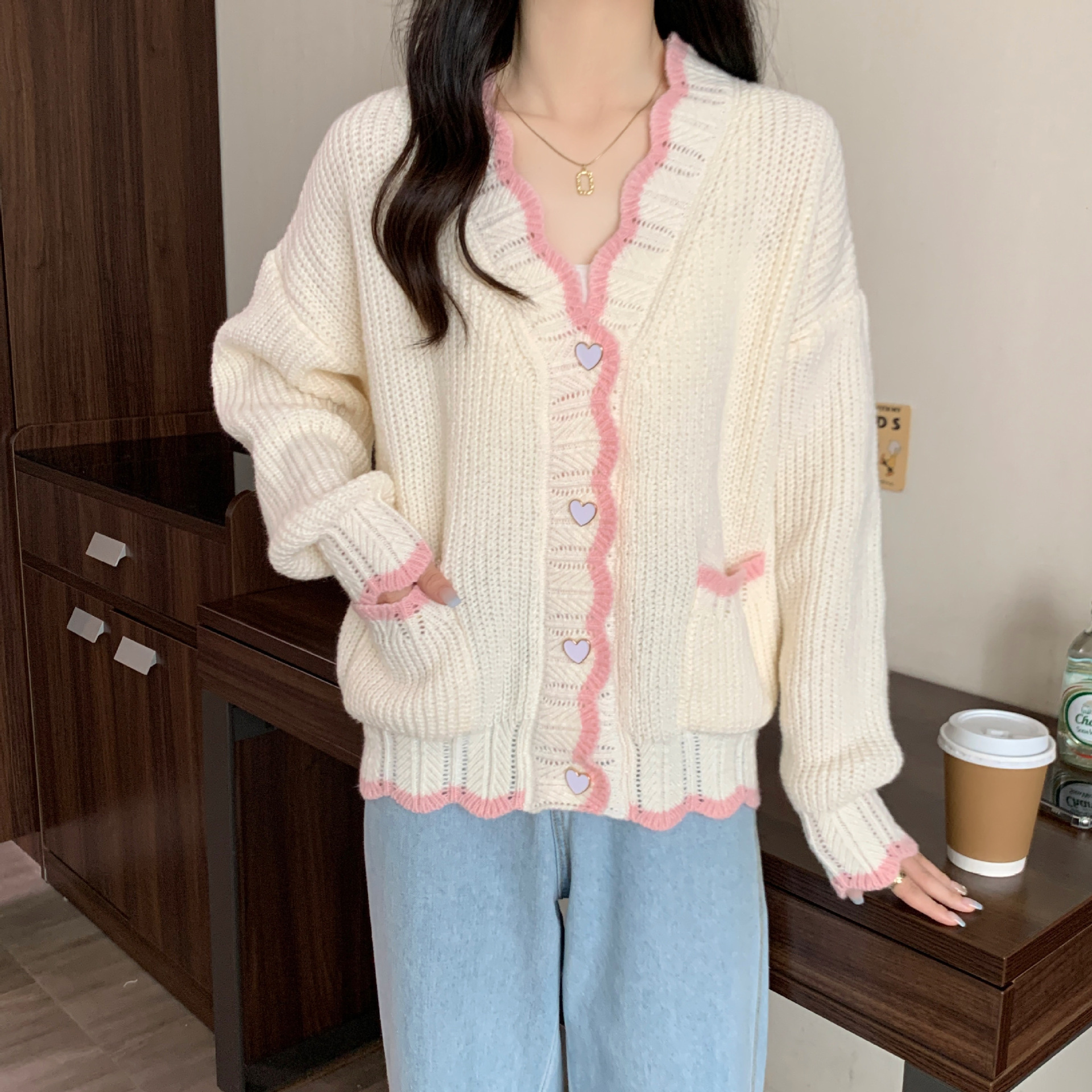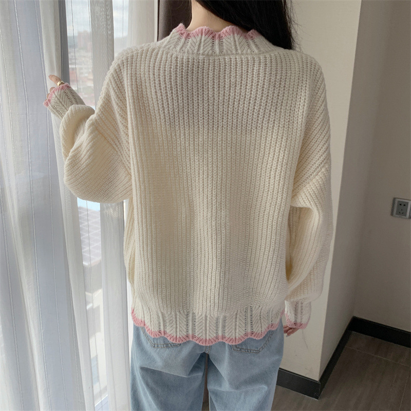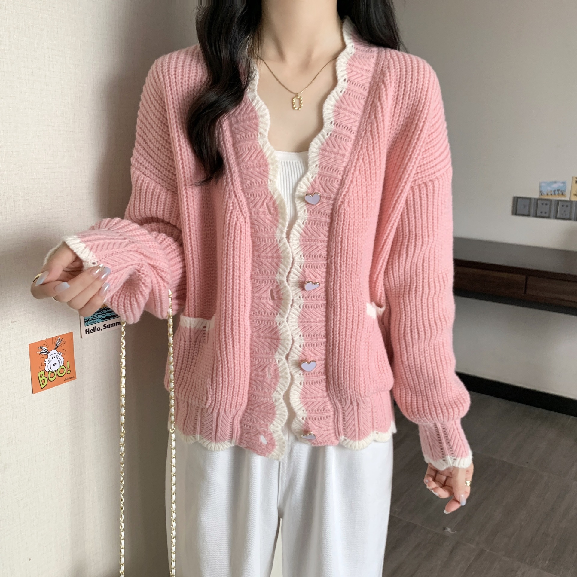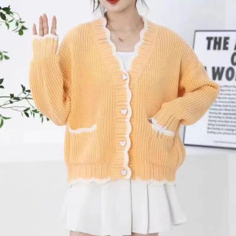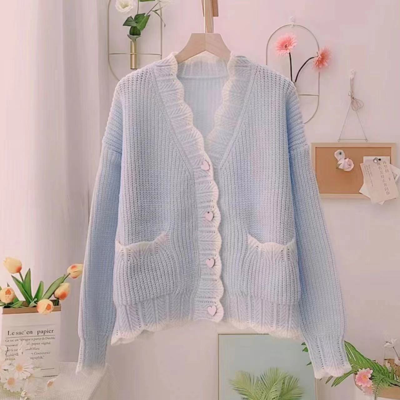 Сладкий вязаный кардиган с длинными рукавами с V-образным вырезом нежный стиль дизайн первая любовь топ женский розовый мягкий клейкий пальто свитер осень