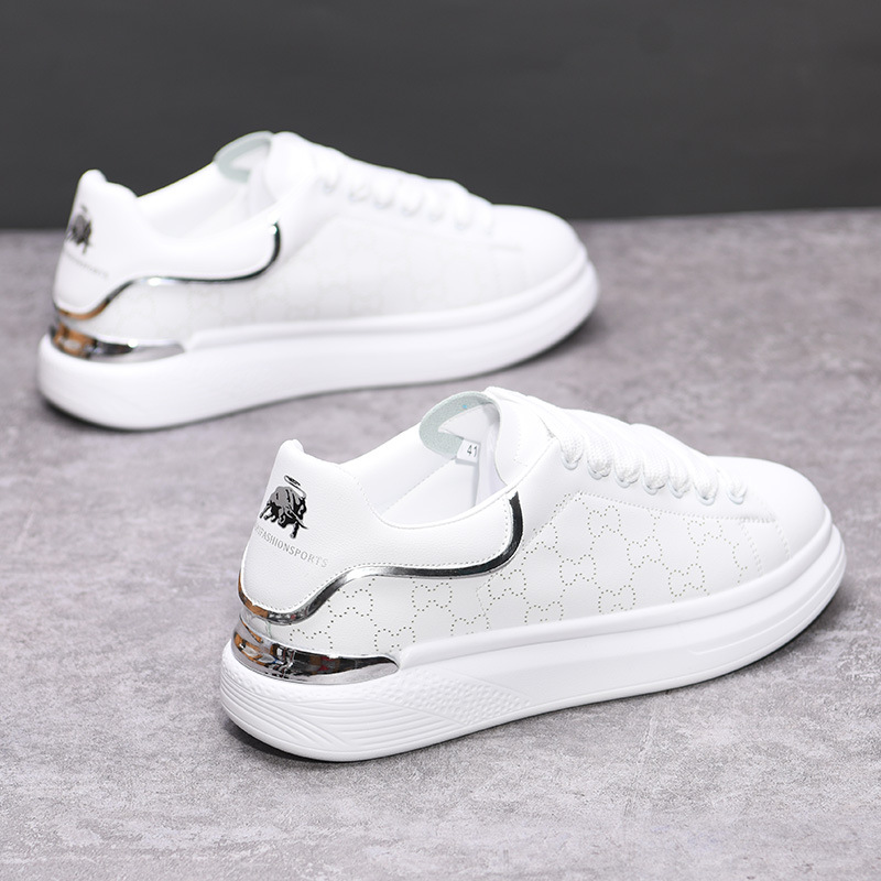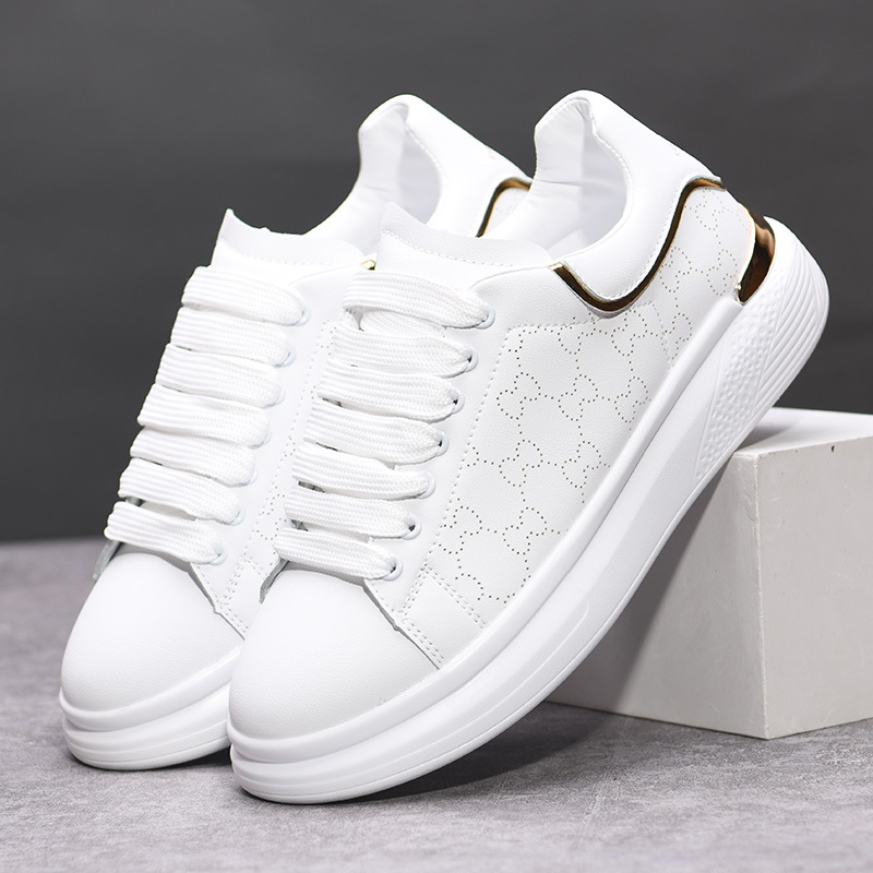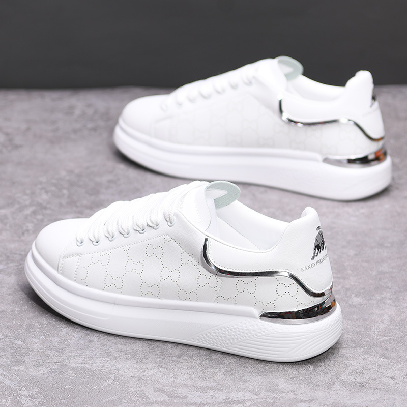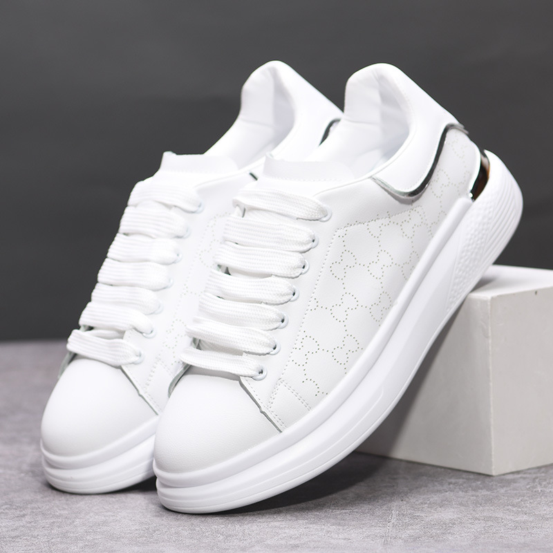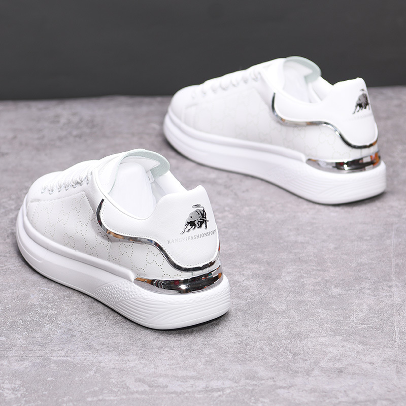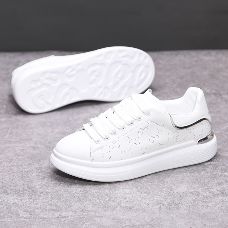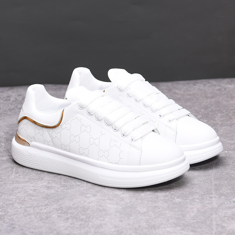 Кроссовки McQueen из натуральной кожи белого цвета на толстой подошве для увеличения роста, дышащие повседневные кроссовки для мужчин и женщин KY2112-1, удобная обувь на платформе.