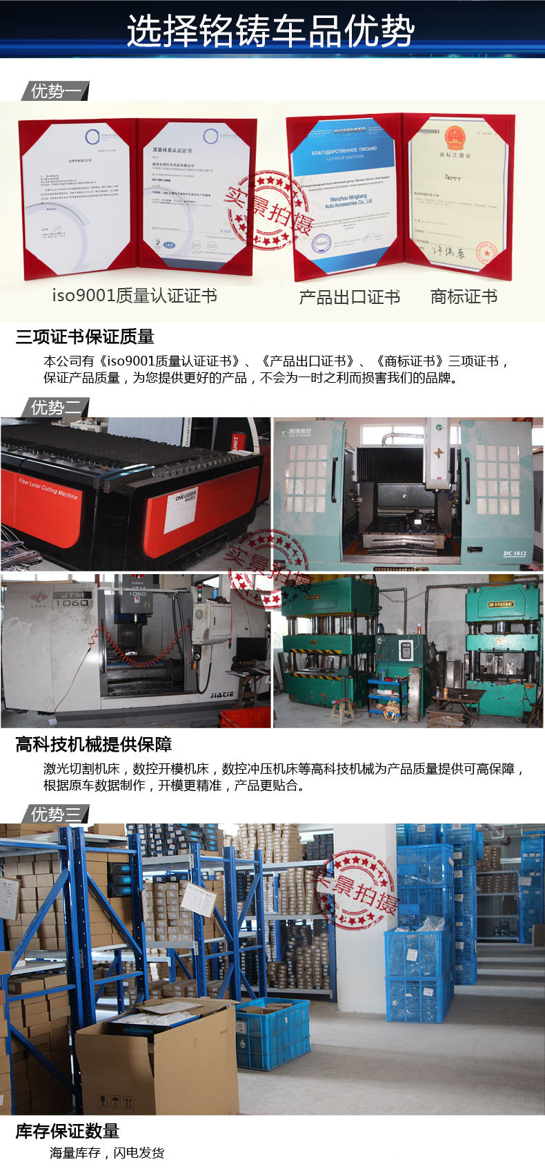 3、模具制造,外表光洁亮丽,安装简单,能够起到一定得防擦防刮功能,更是一种装饰性的元素。