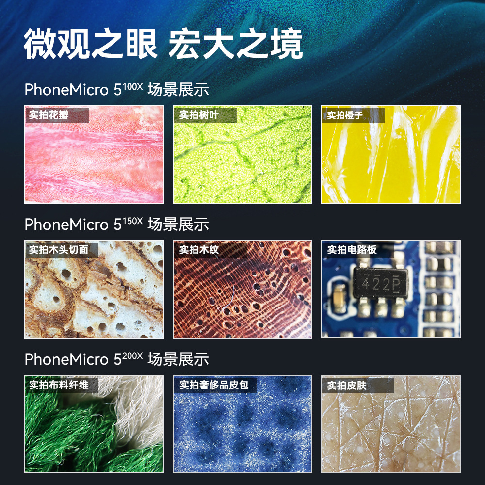 Трансграничный модернизированный микроскоп для мобильного телефона, 200-кратное оптическое увеличительное стекло высокой четкости, инструмент для биологических исследований кожи, текстиля
