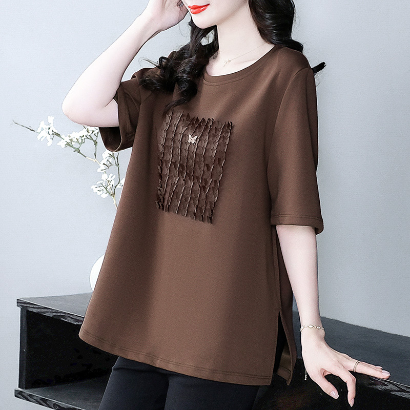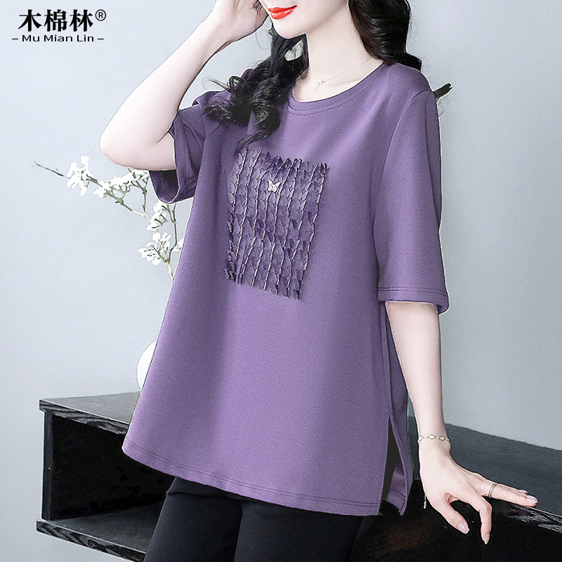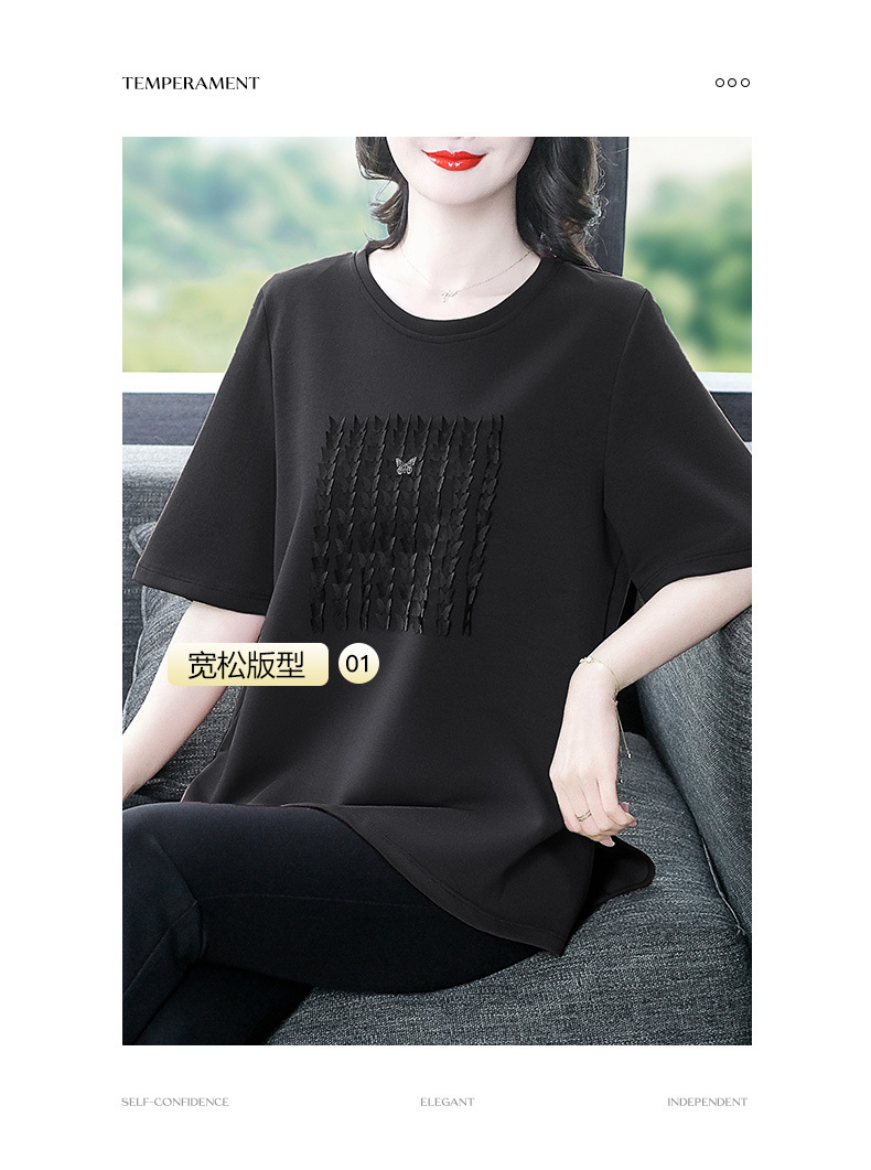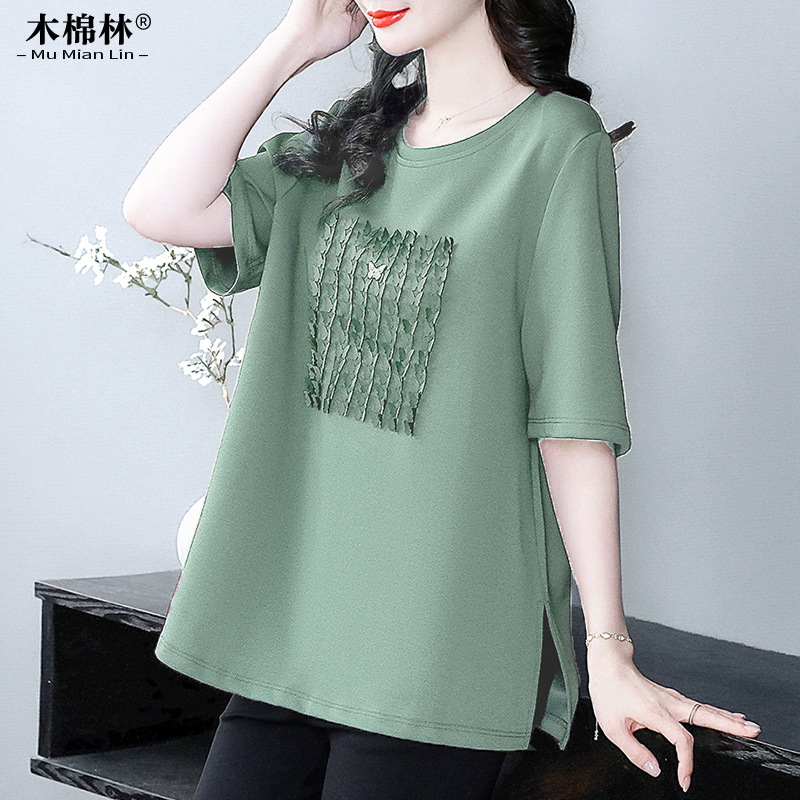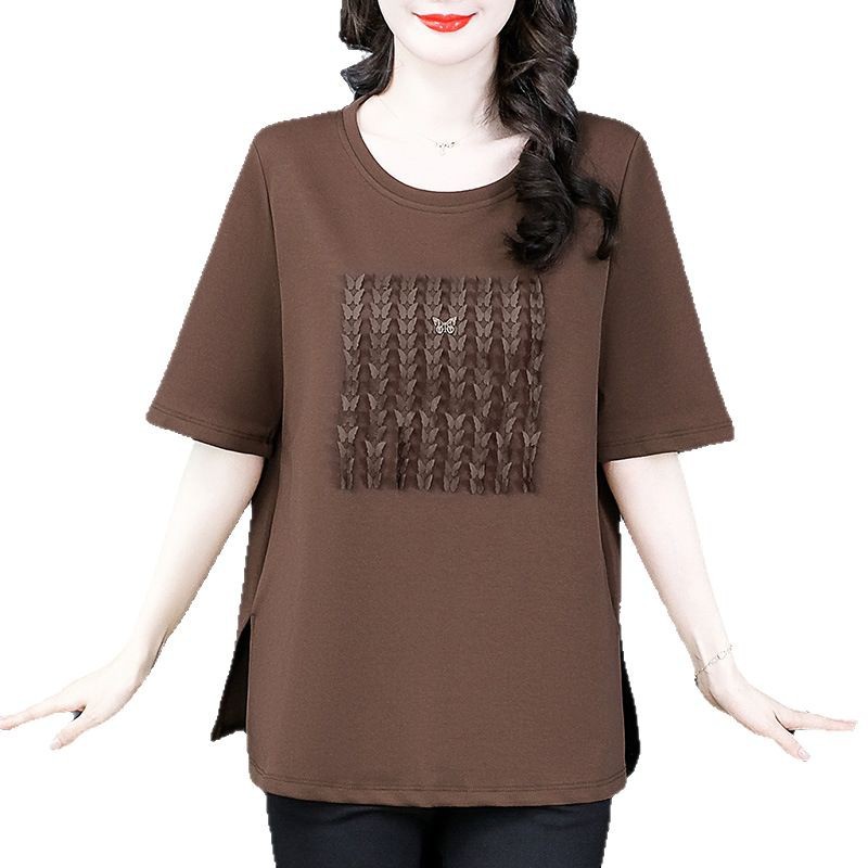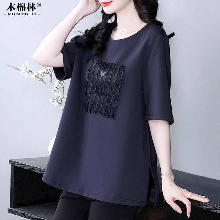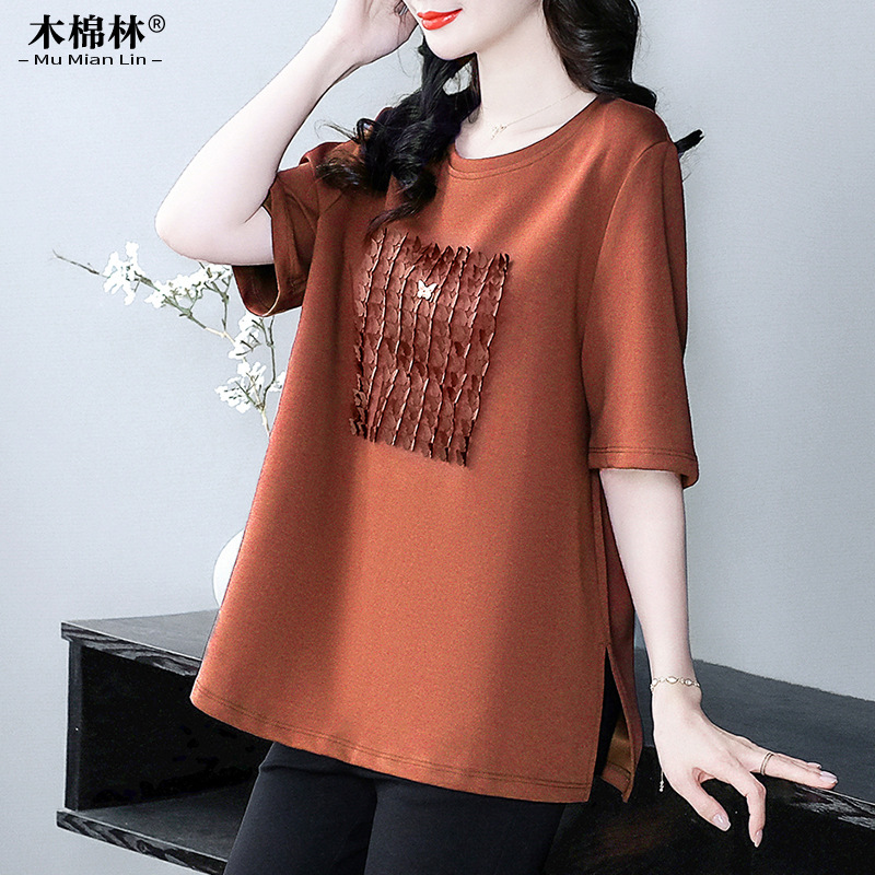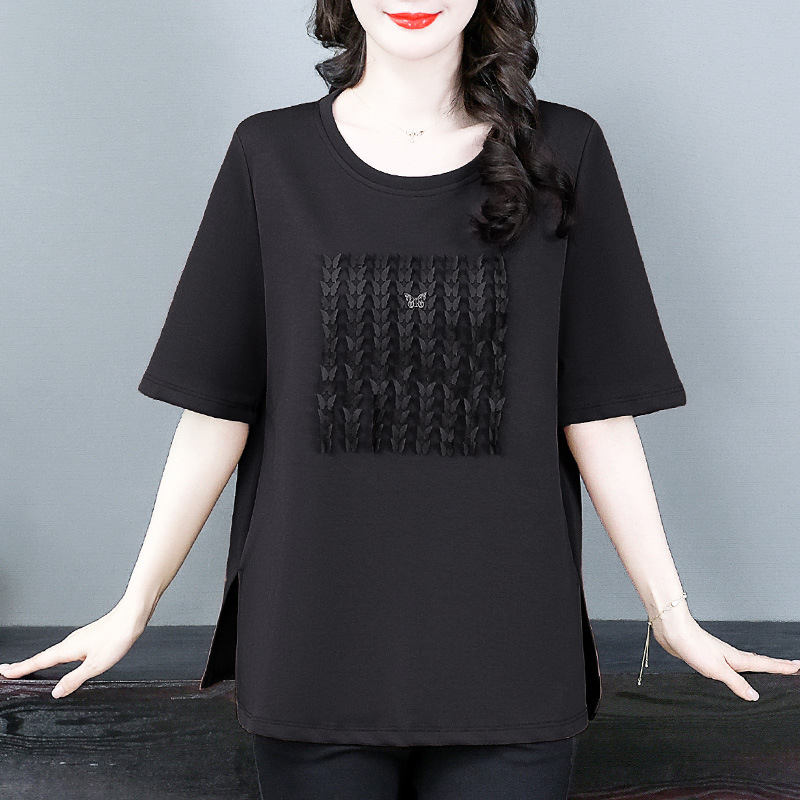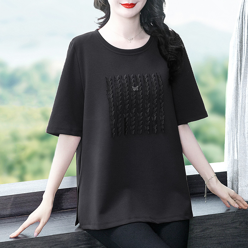 Летняя расшатая бисерная вышивка дикие большие размеры 240 фунтов толстая MM мама среднего возраста женская футболка с короткими рукавами