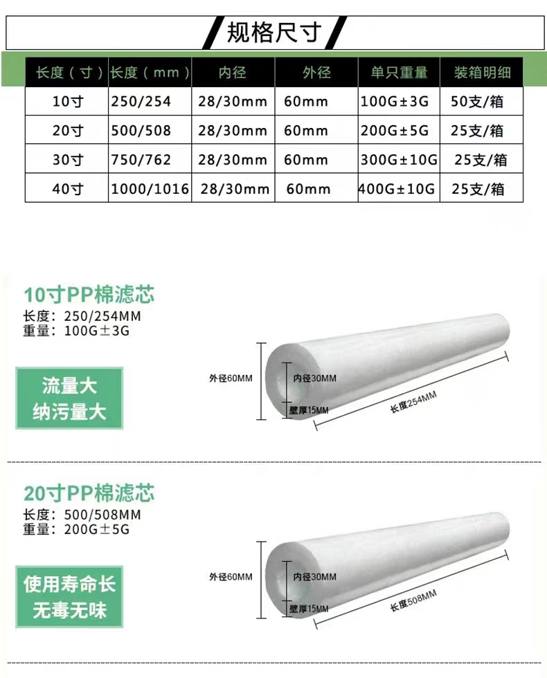Универсальный полипропиленовый хлопковый стержень из расплава хлопчатобумажный фильтрующий элемент из хлопка из хлопка, домашний очиститель воды фитинги 10/20/30/40 дюймов
