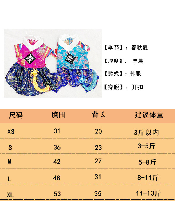 跨境新款韩国民族宠物服装 传统绣花宫廷韩服 夏季宠物狗衣服批发