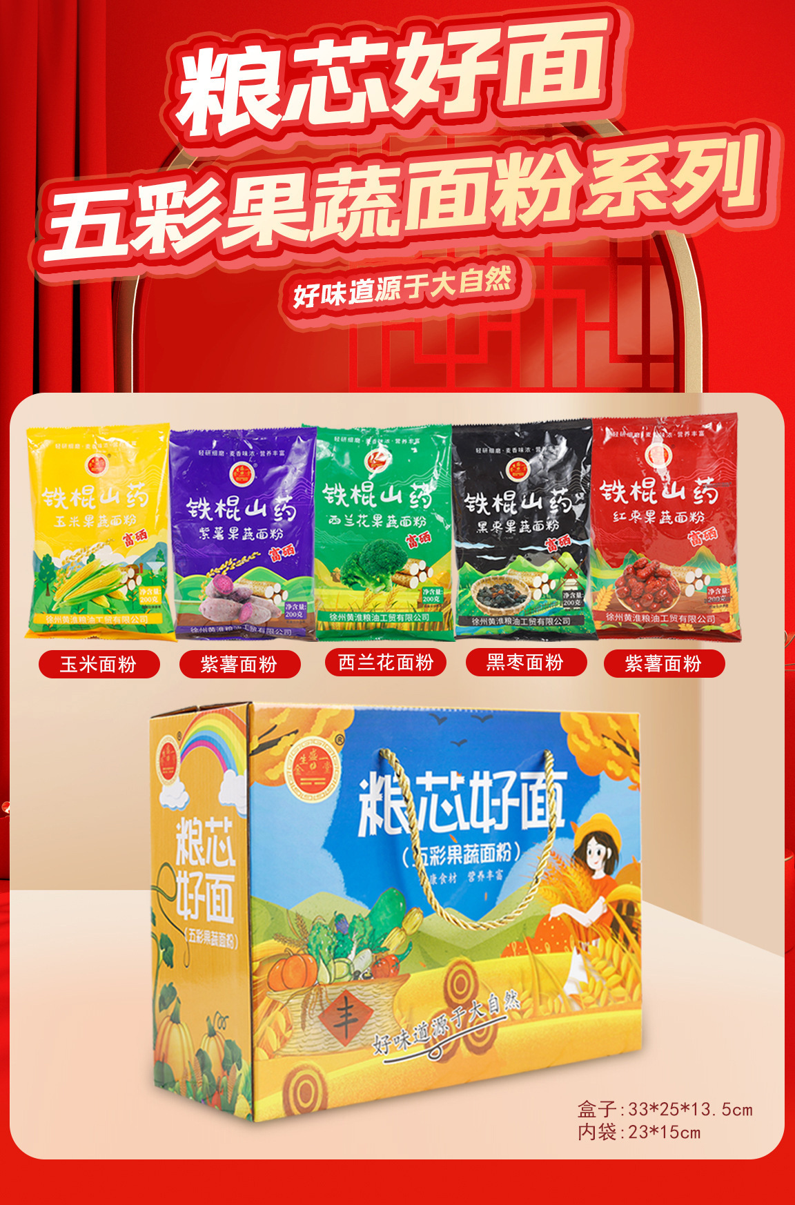 五彩面粉1kg礼盒装玉米红枣紫薯西兰花黑枣面粉小麦粉2斤会销礼品