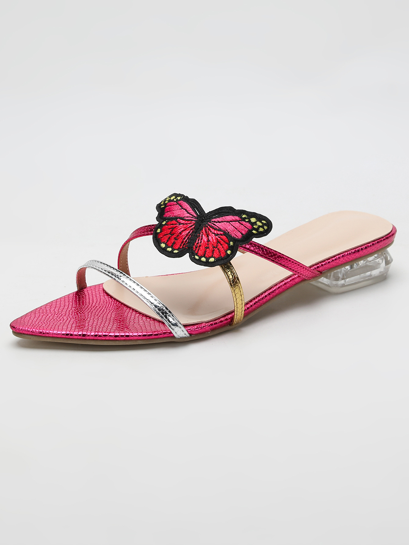 Трансграничные горячие продажи прозрачные каблуки сандалии 2024 Летняя новая бабочка украшения слово с тапочками модная внешняя торговля обувь
