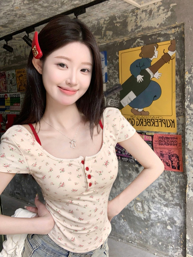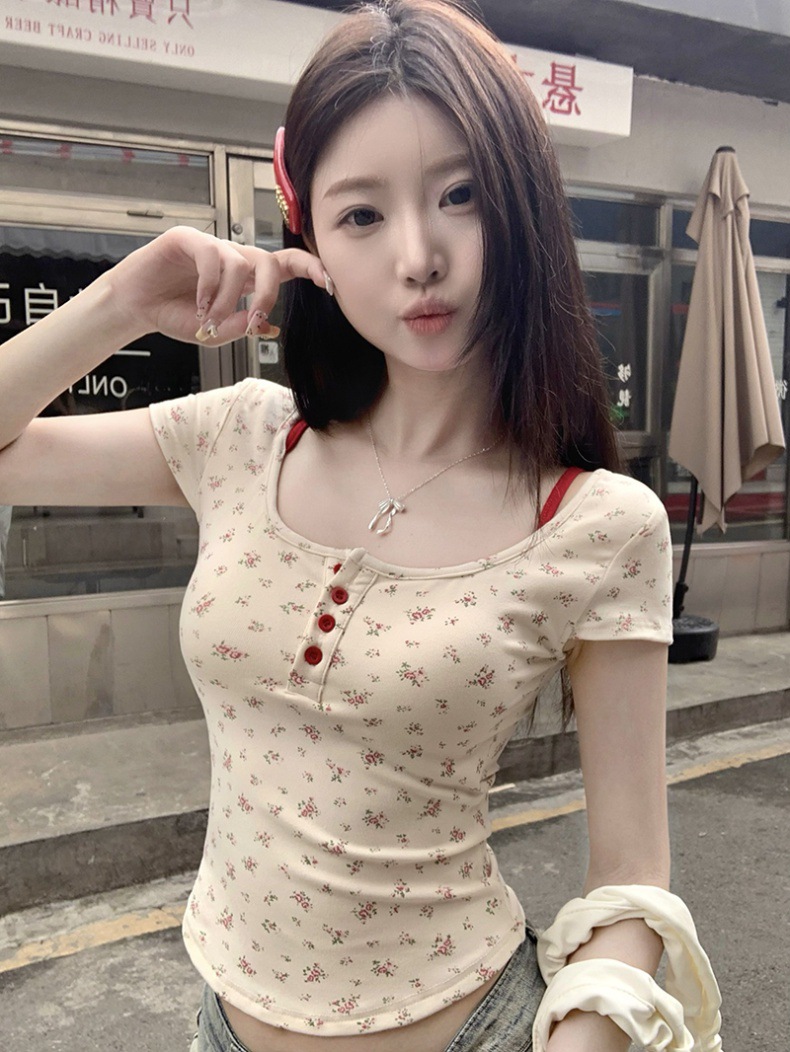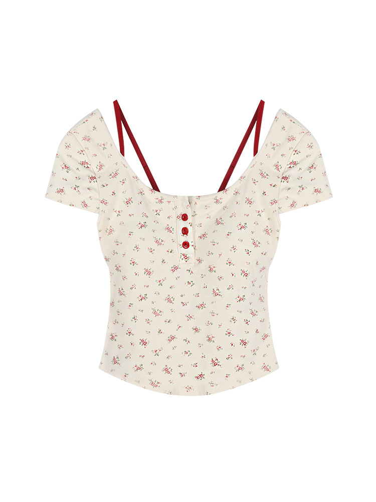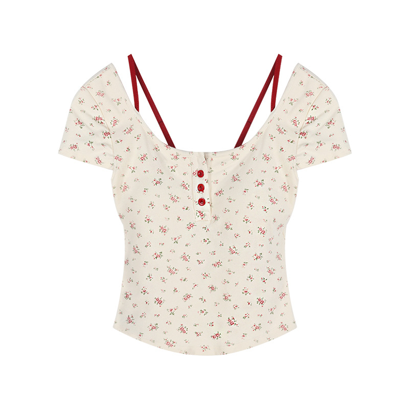 Чисто поддельные две футболки с короткими рукавами с цветочным принтом женский летний дизайн