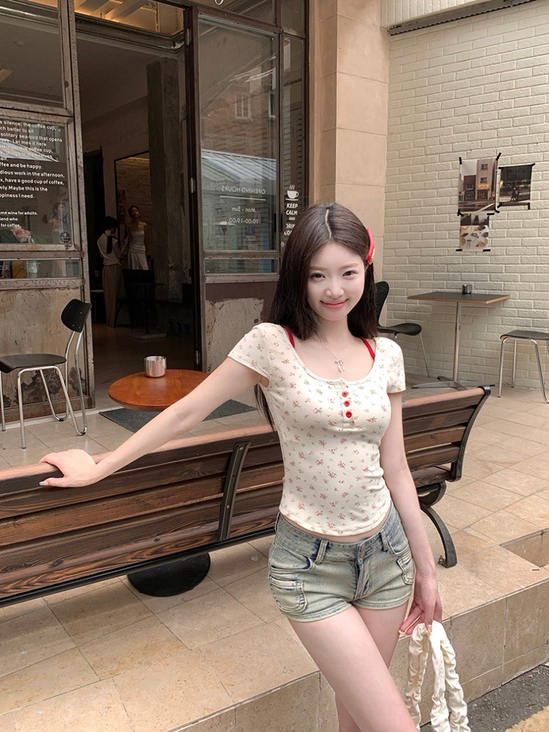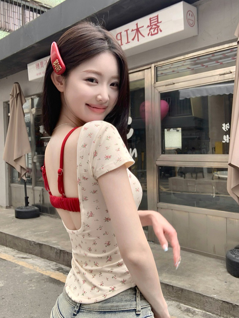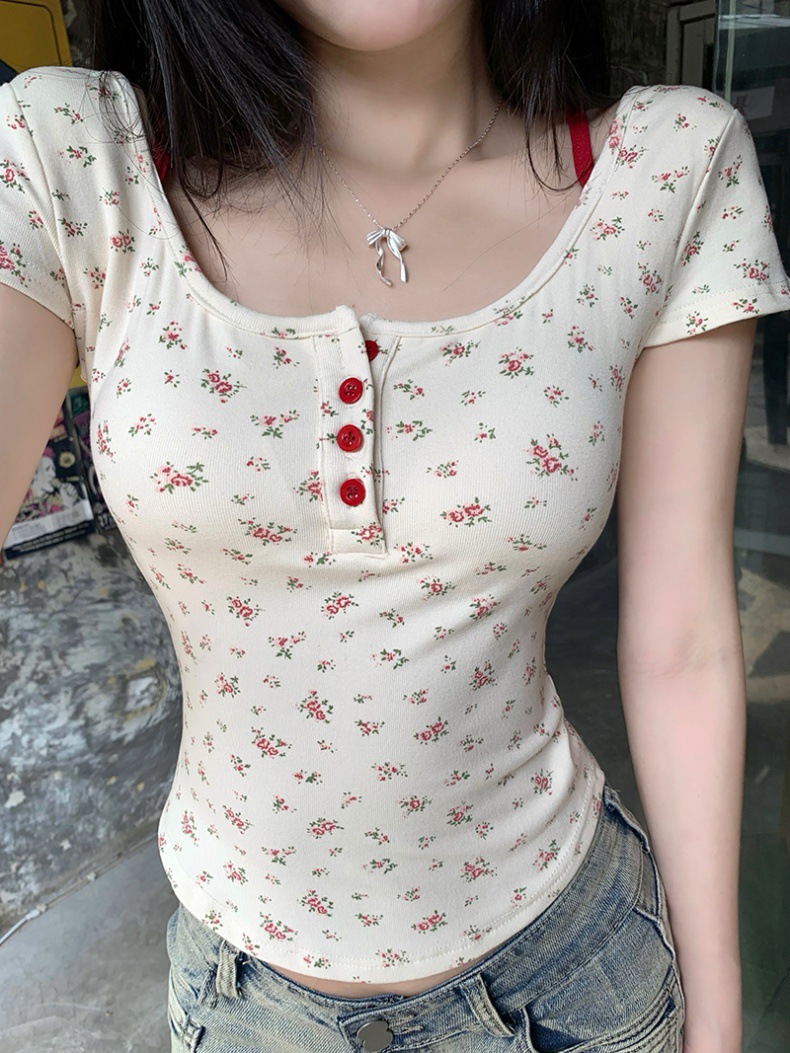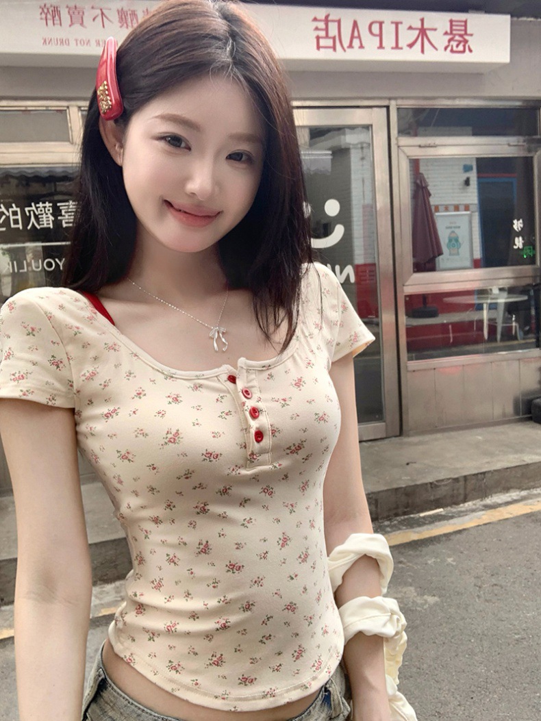 Чисто поддельные две футболки с короткими рукавами с цветочным принтом женский летний дизайн