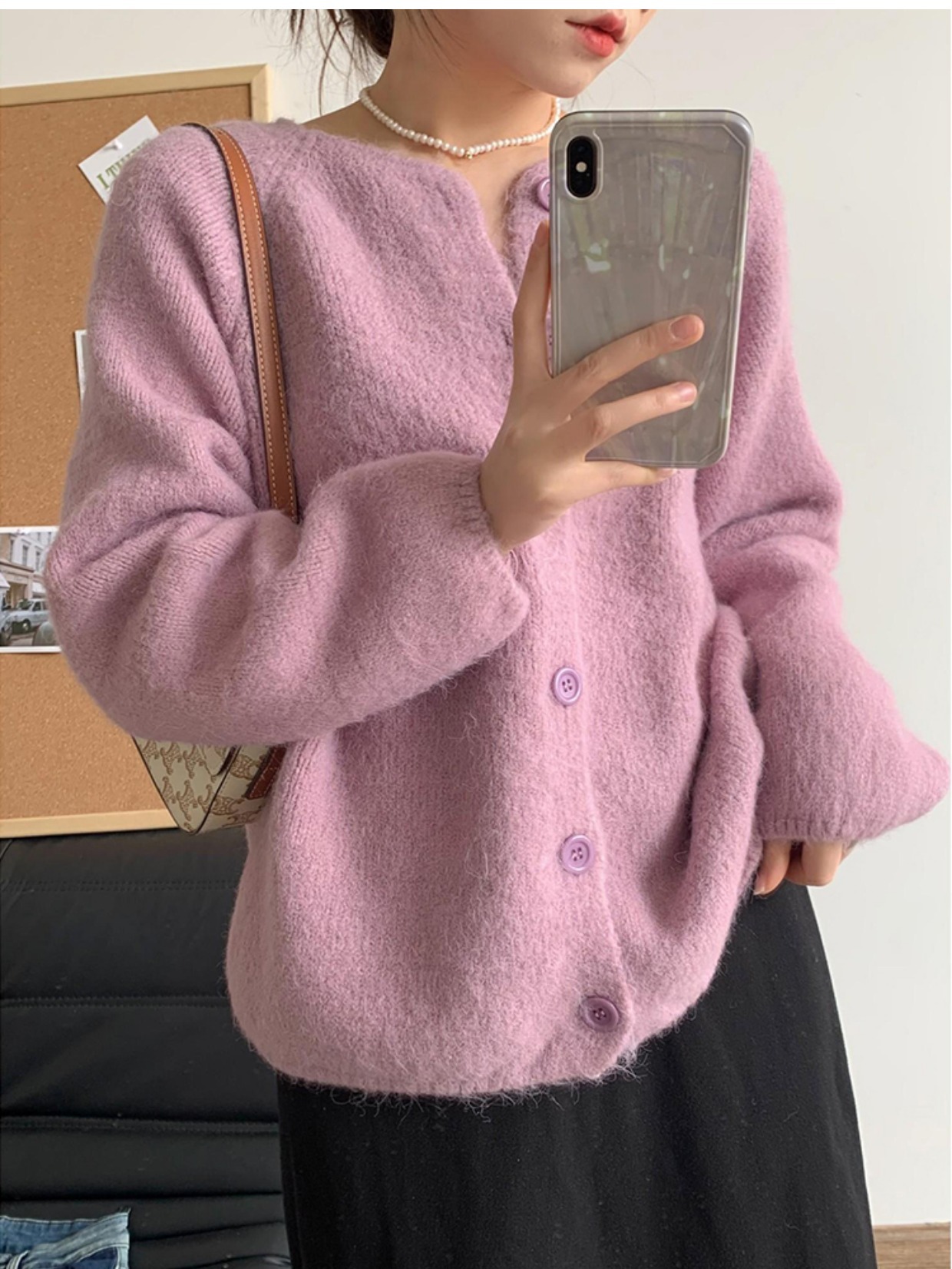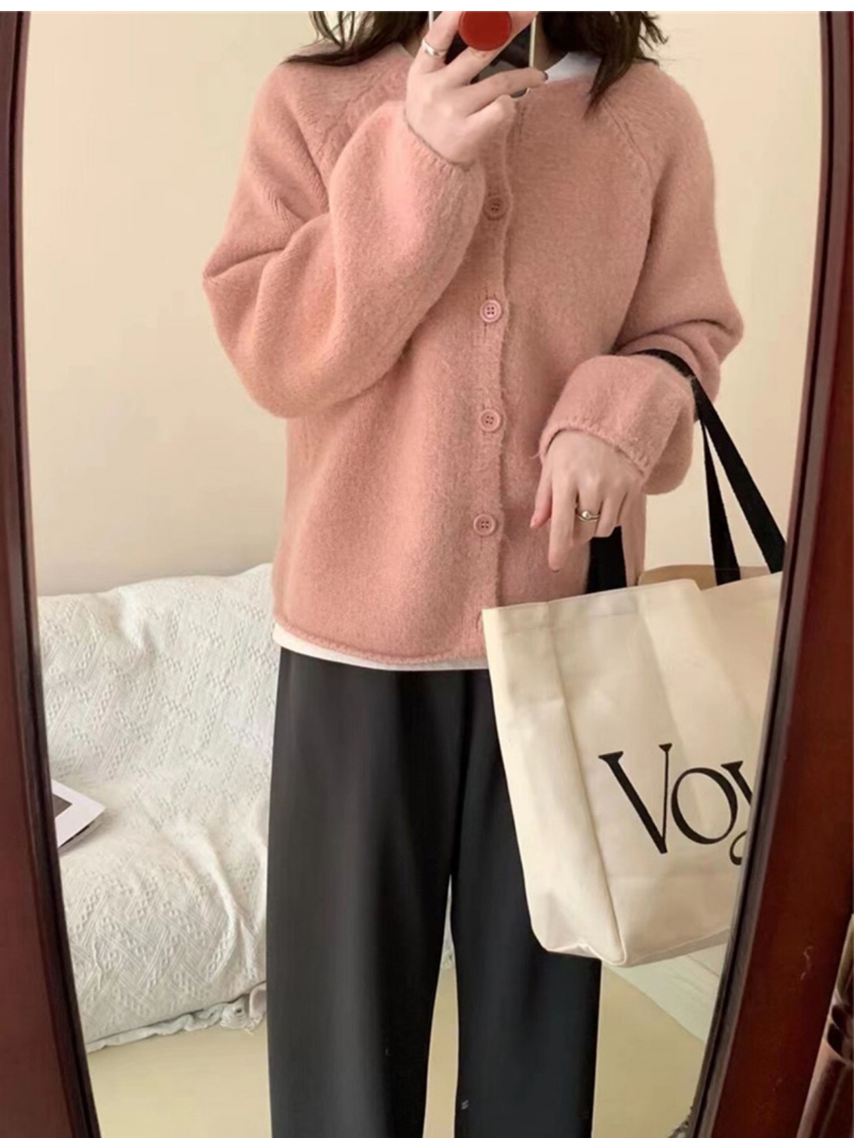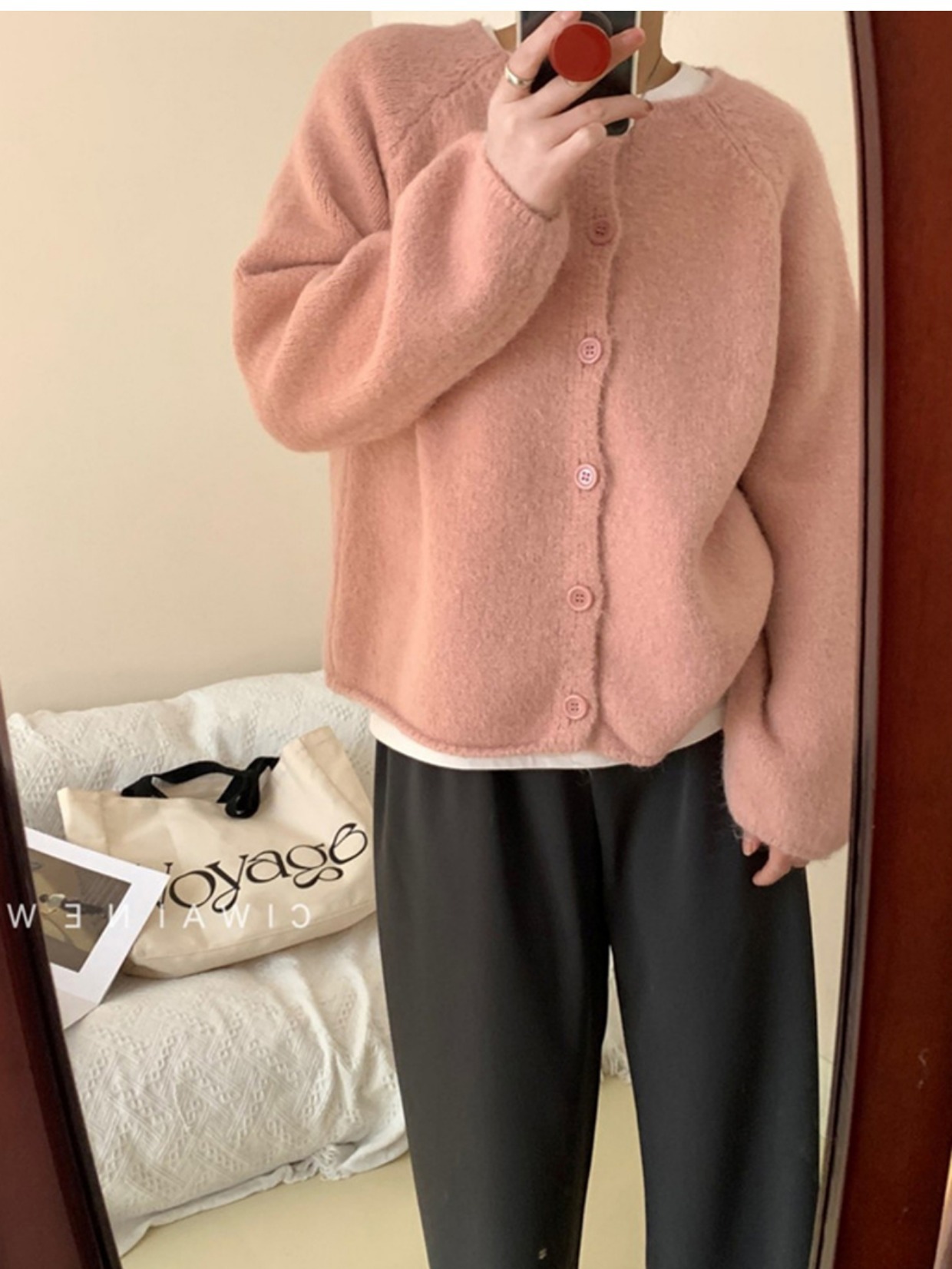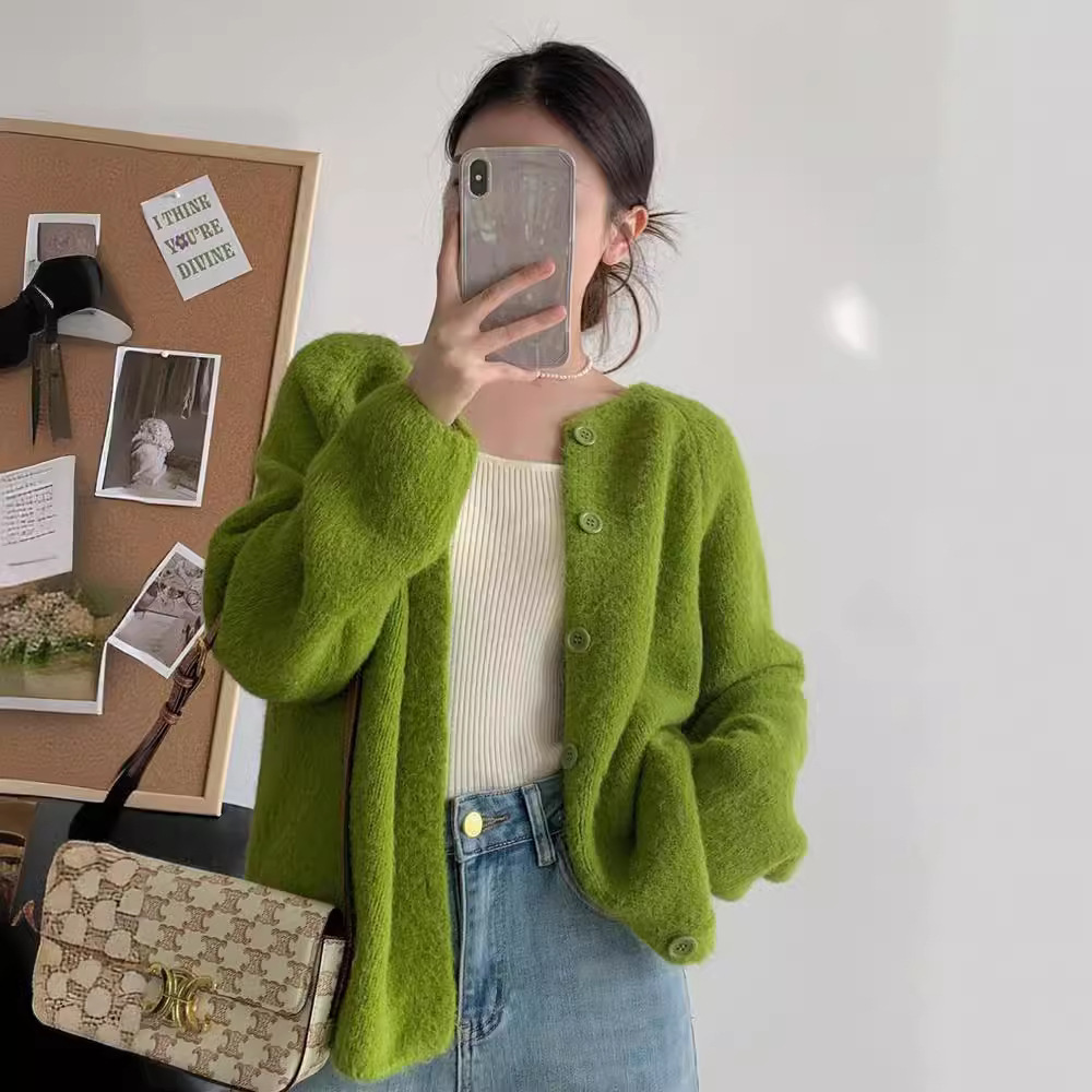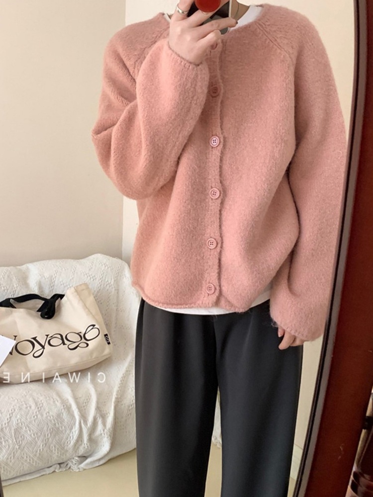 Мягкий вязаный кардиган топ женский осень 2024 новый корейский свободный круглый вырез с длинными рукавами нежный ветер свитер куртка