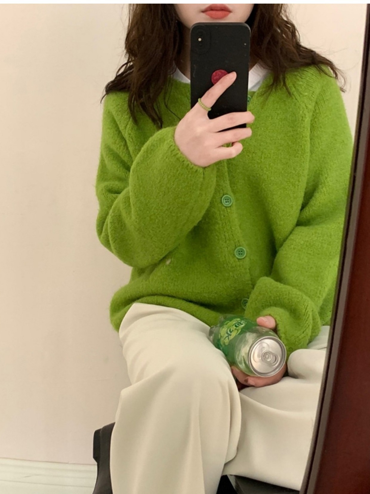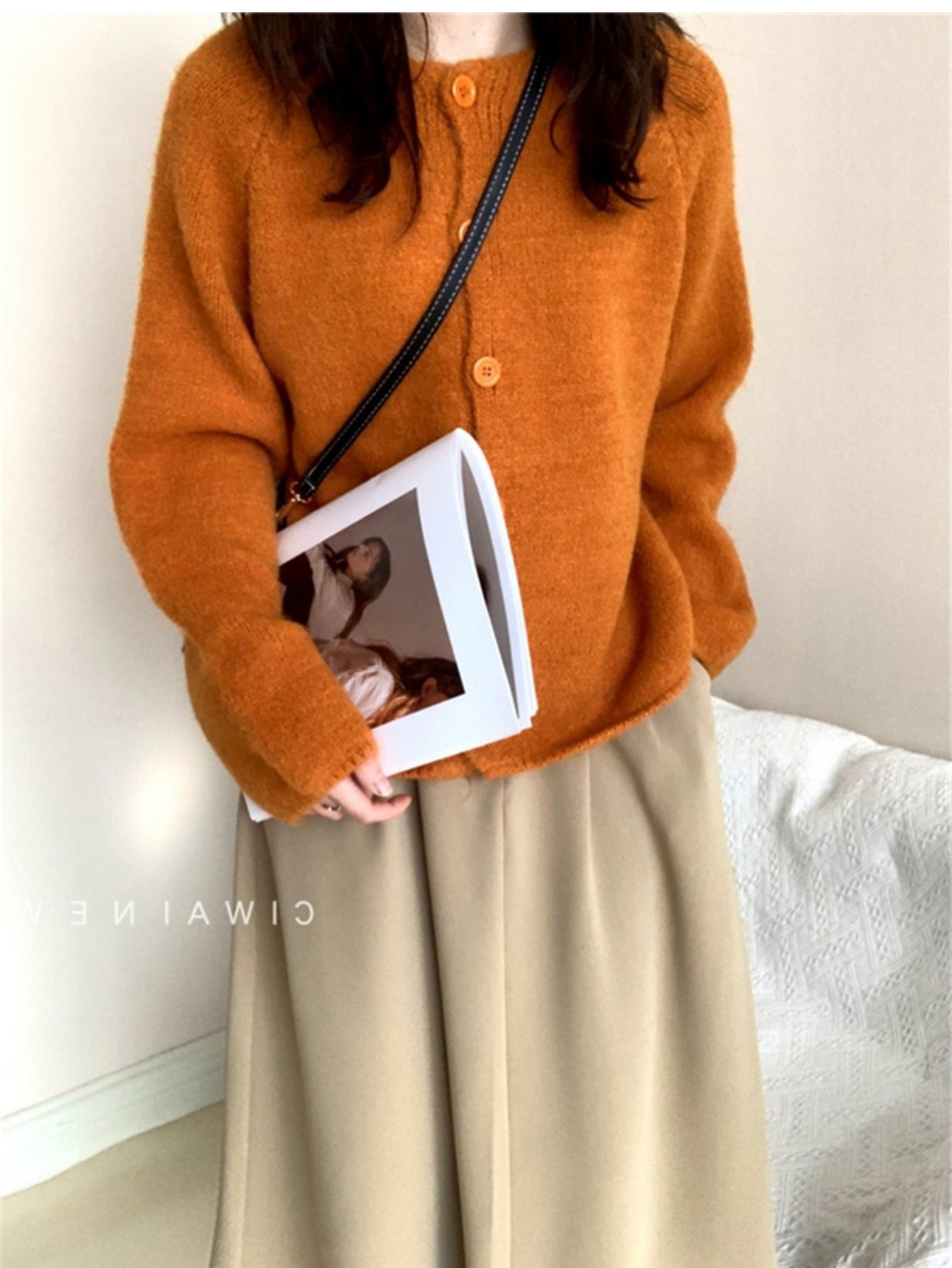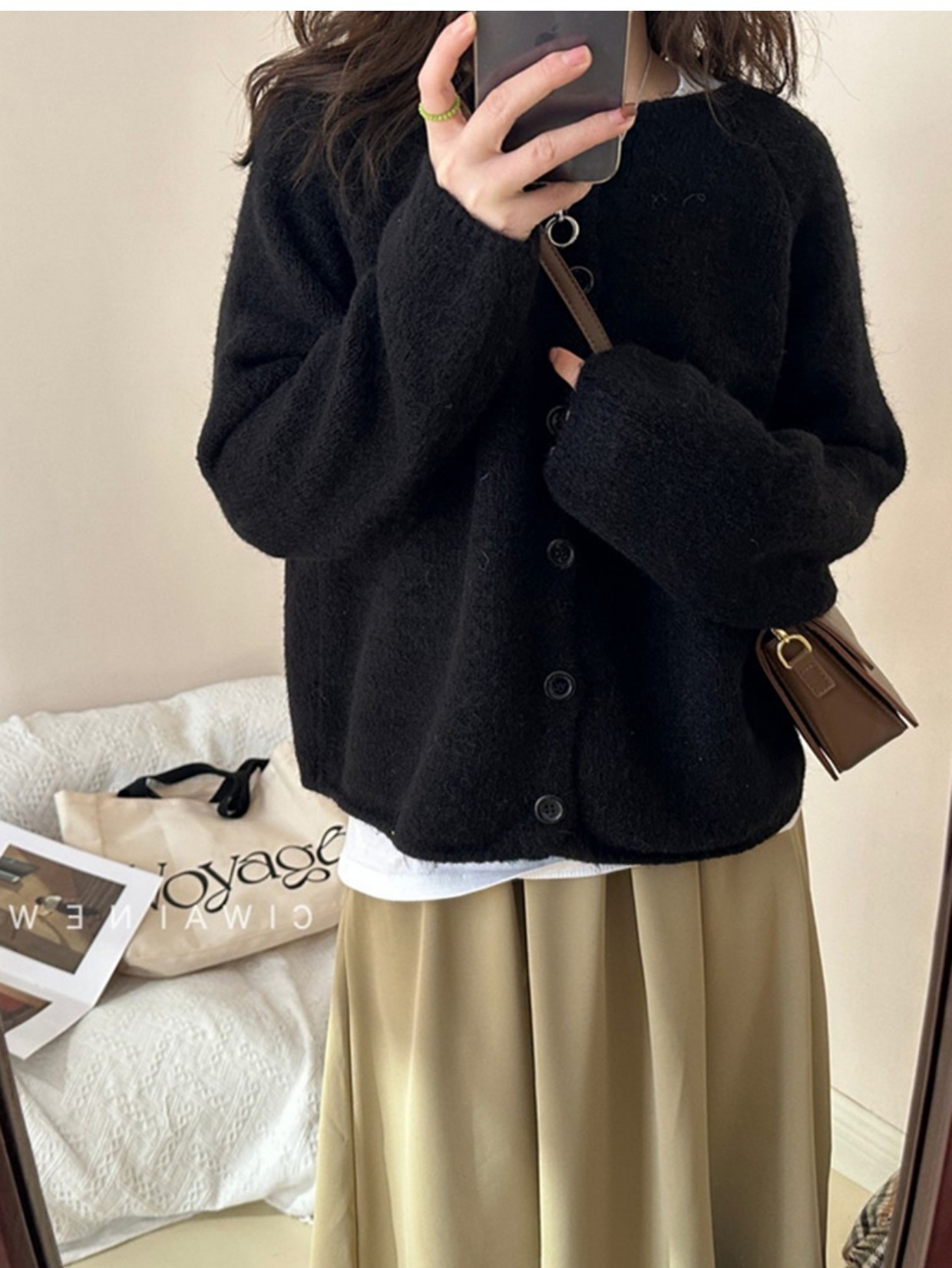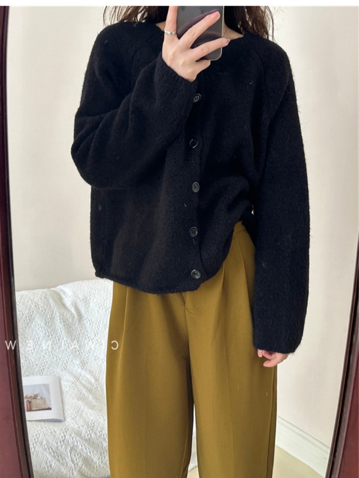 Мягкий вязаный кардиган топ женский осень 2024 новый корейский свободный круглый вырез с длинными рукавами нежный ветер свитер куртка