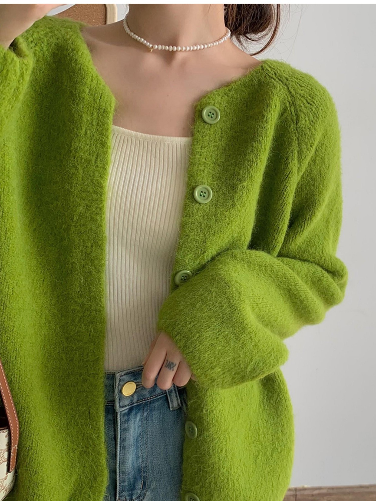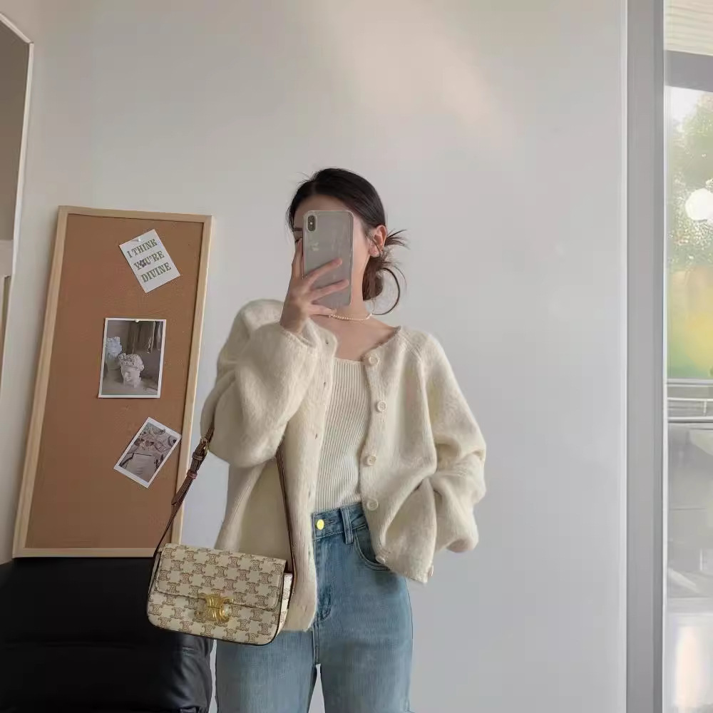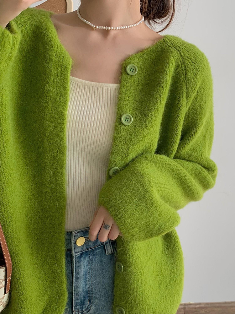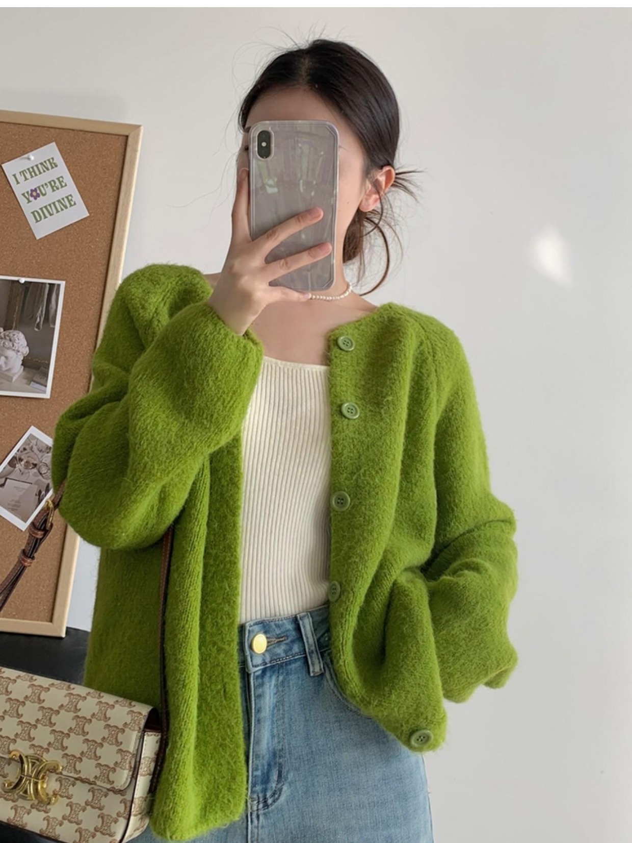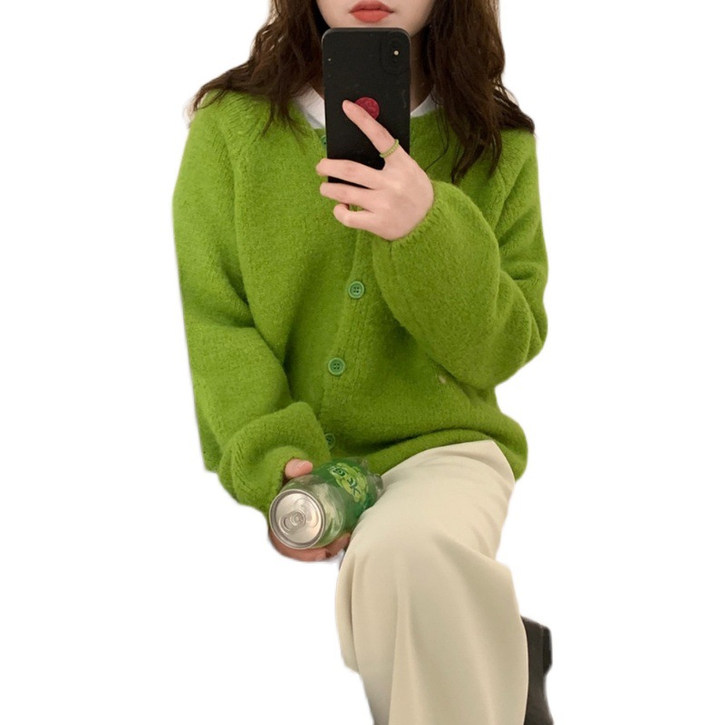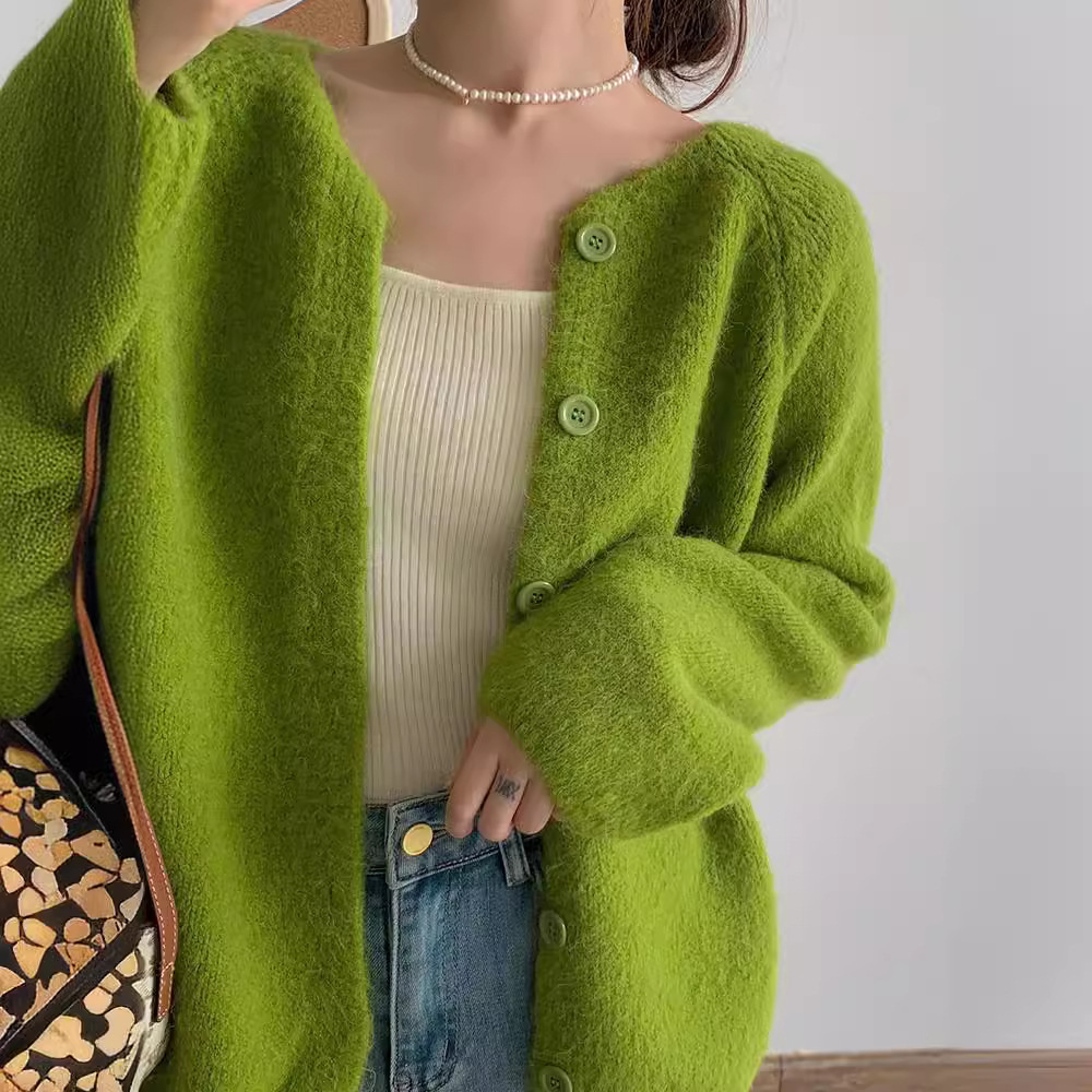 Мягкий вязаный кардиган топ женский осень 2024 новый корейский свободный круглый вырез с длинными рукавами нежный ветер свитер куртка