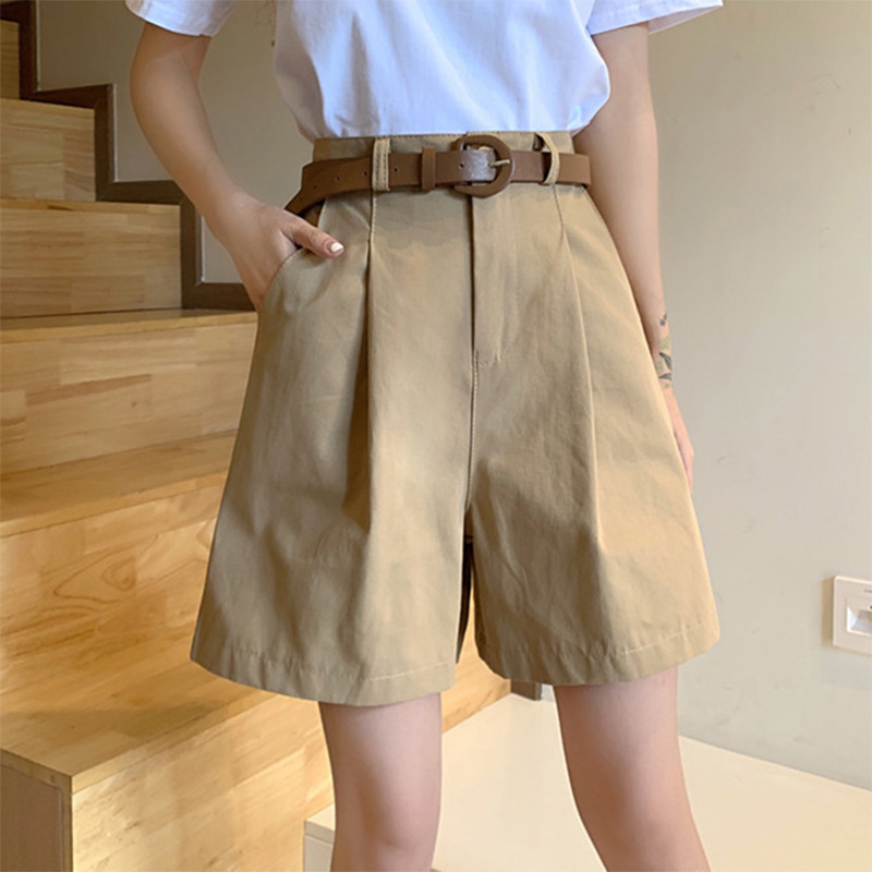 Хаки шорты-карго женские летние тонкие с высокой талией тонкие свободные широкие брюки средней длины повседневный костюм брюки пять четвертей