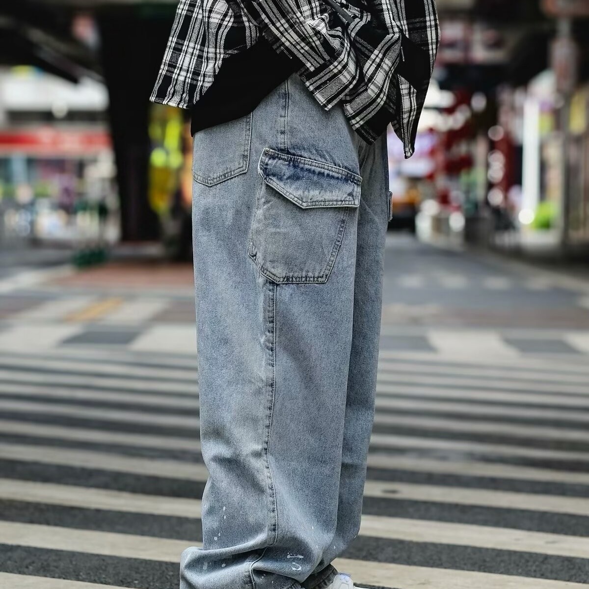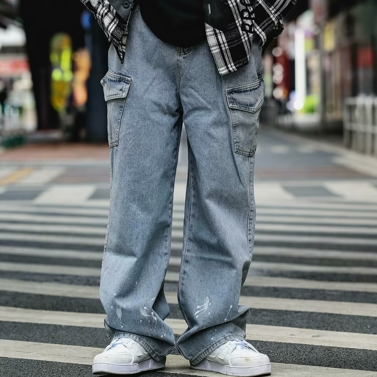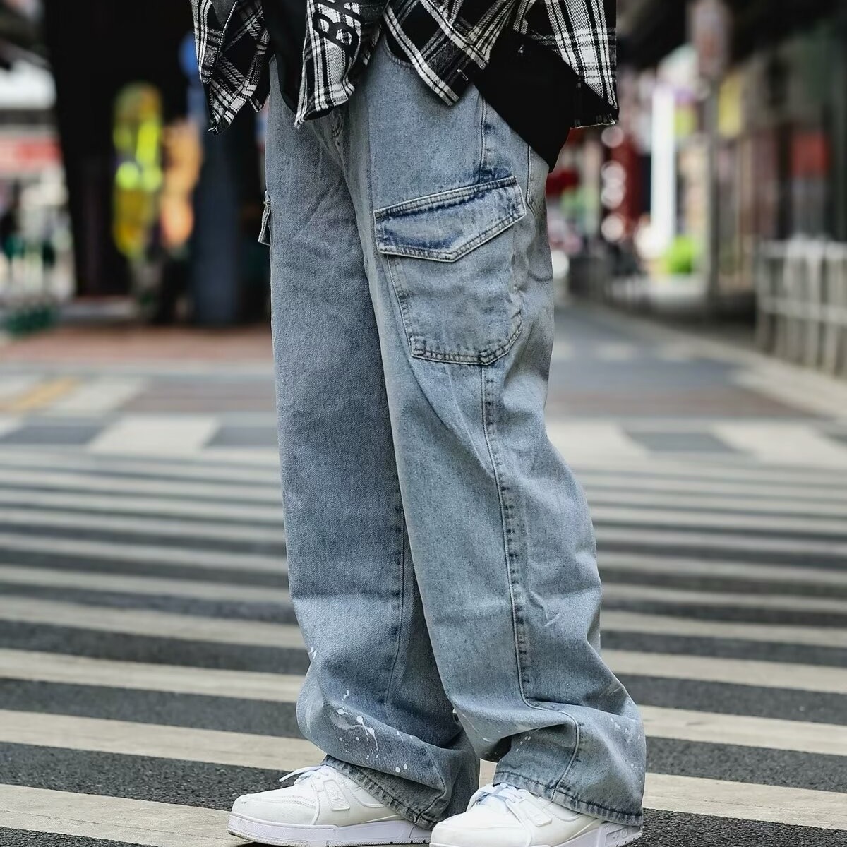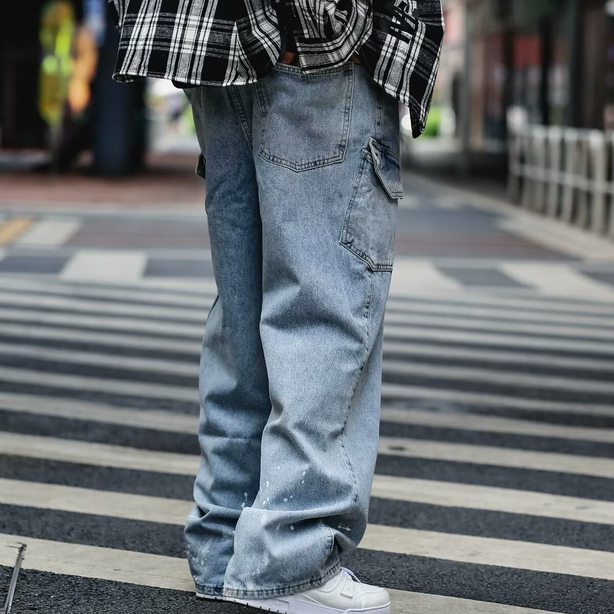 Японский стирается тяжелым дизайном Окрашенные прямые джинсы Мужская мода модная свободная ретро-швабра