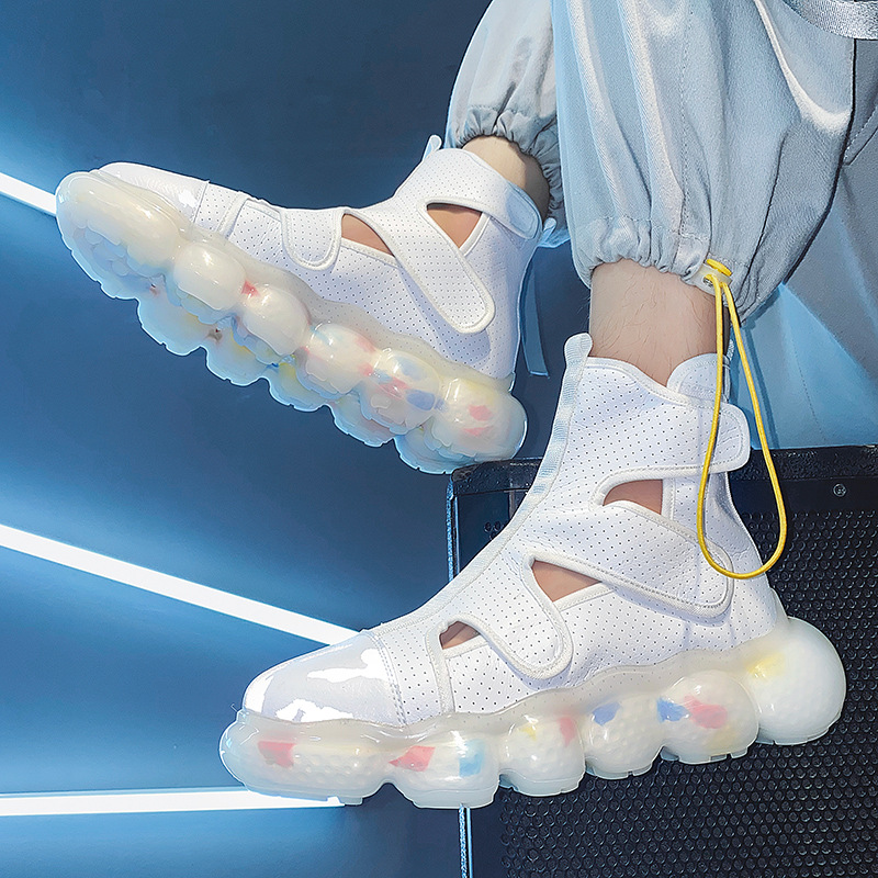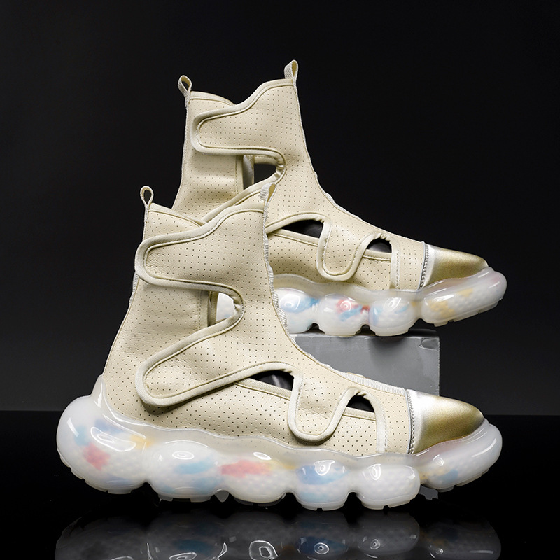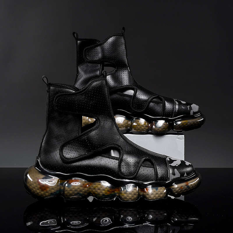Летние высокие сандалии-мокасины 2025: новая модель, молодежные повседневные кожаные туфли без застежек, мужские трендовые туфли на толстой подошве