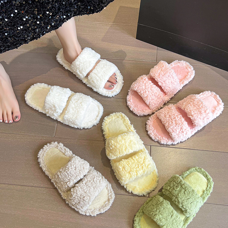 2024 новые плюшевые тапочки женские домашние ступающие на фекалии шерстяные тапочки трансграничные хлопчатобумажные тапочки производителей прямой поставки обуви