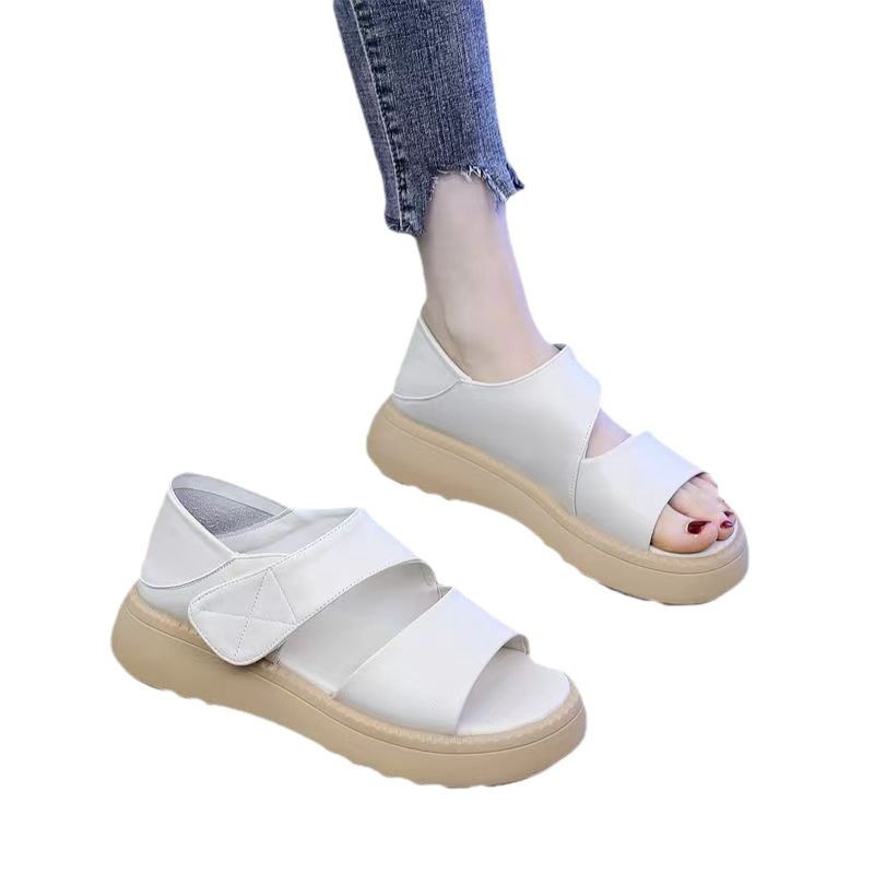 Высококачественные римские сандалии из мягкой кожи для женщин, новинка 2024, тонкие повседневные пляжные сандалии на толстой подошве на платформе, маленькие ароматные пляжные сандалии на мягкой подошве