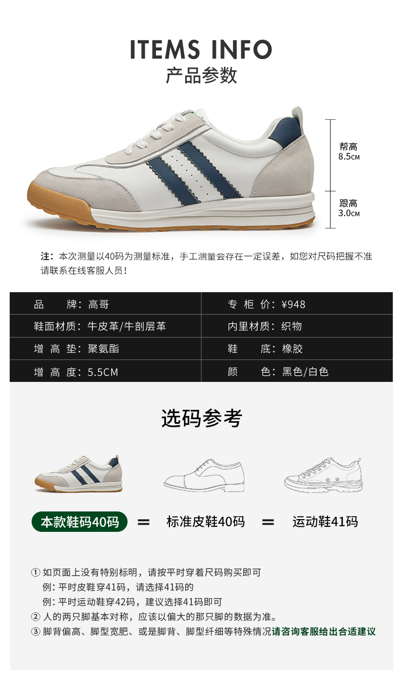 Гао Ге увеличивает мужскую обувь 2024 новая немецко-тренировательная обувь модная универсальная обувь для мужчин