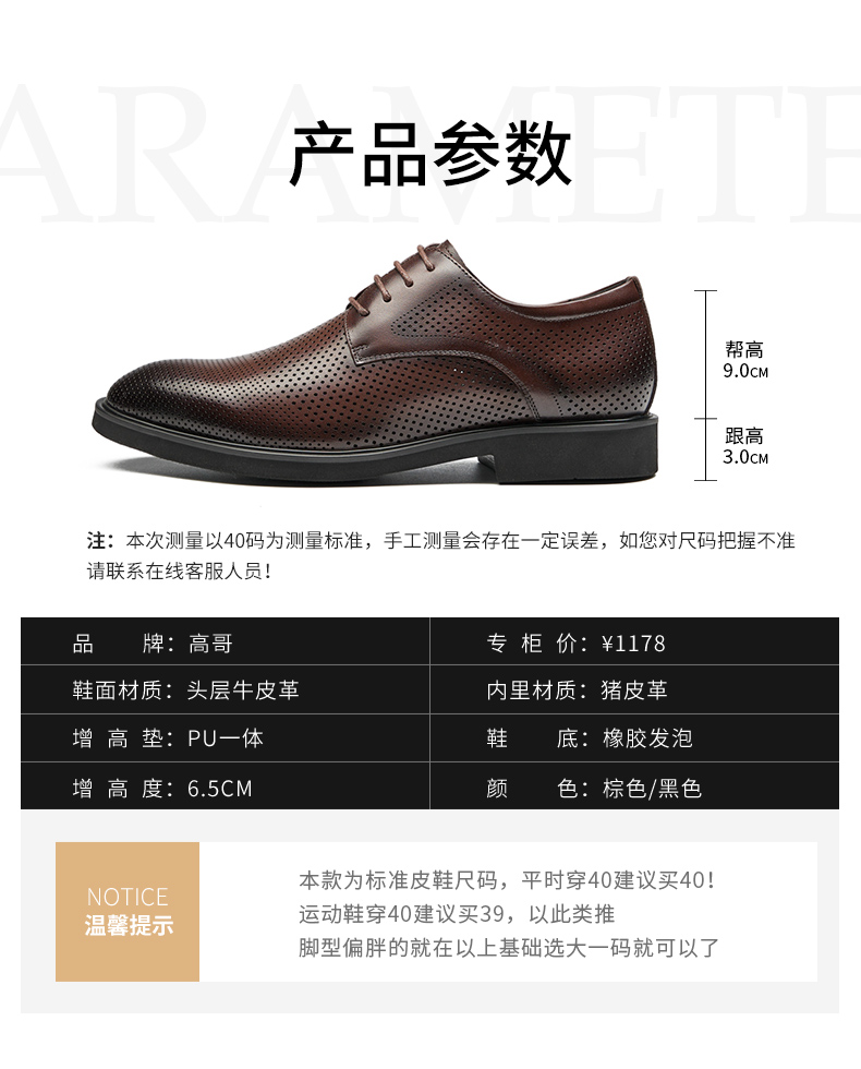 Гао Ге увеличивает кожаную обувь для мужчин летом