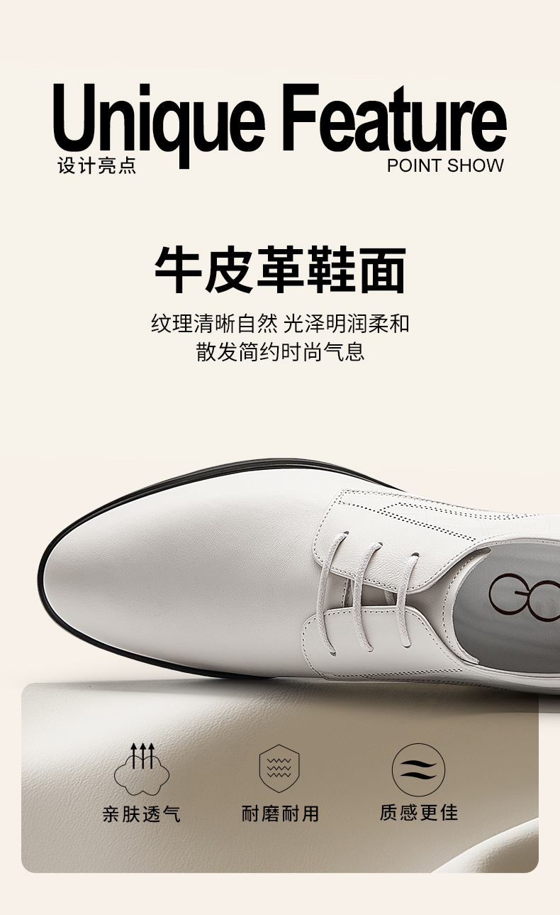 Gao Ge Needs кожаные туфли 2024 Летние новые туфли Белый жених свадебные туфли Британские бизнес увеличены мужские туфли