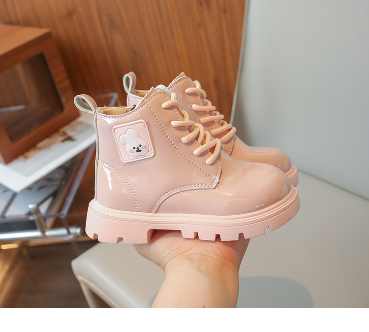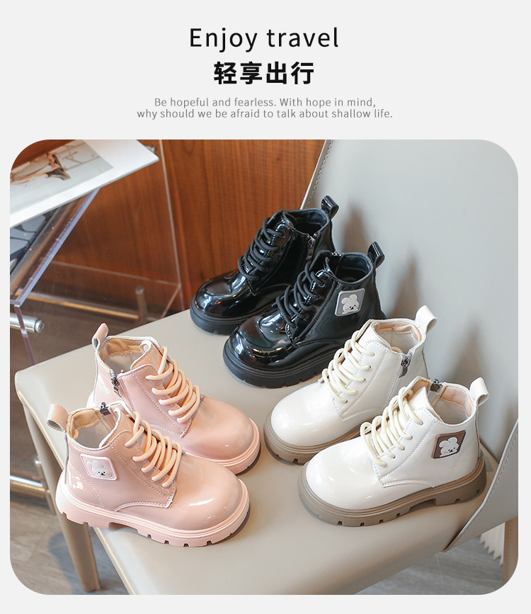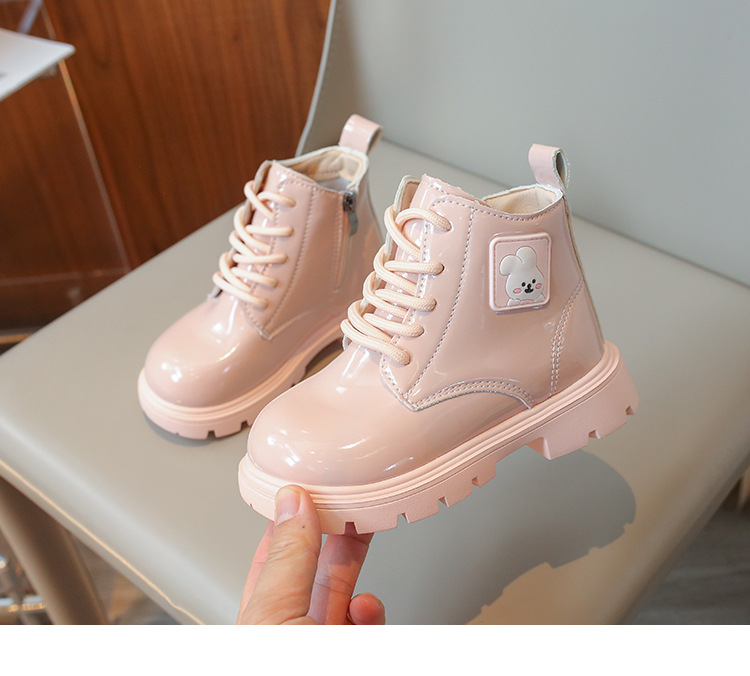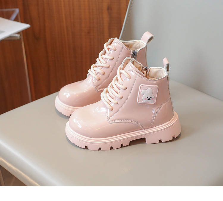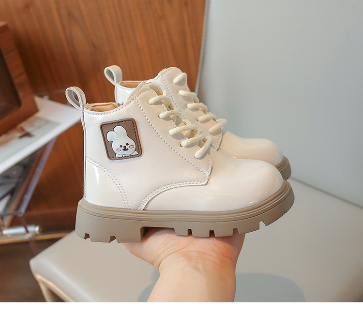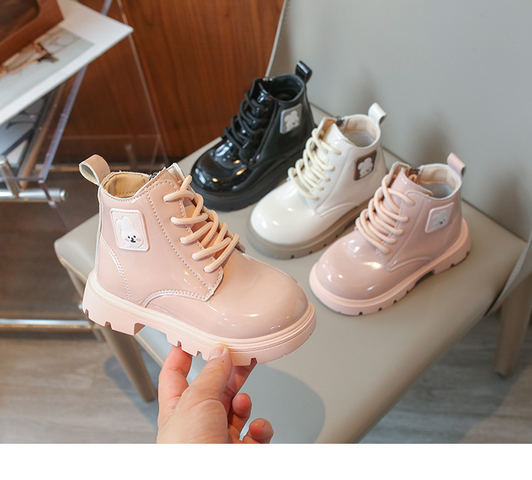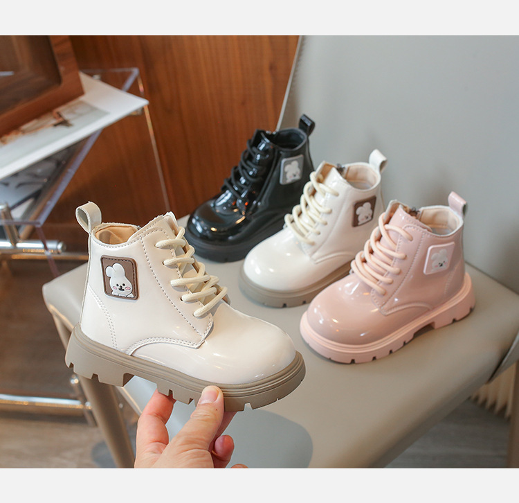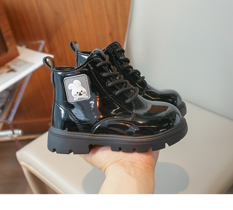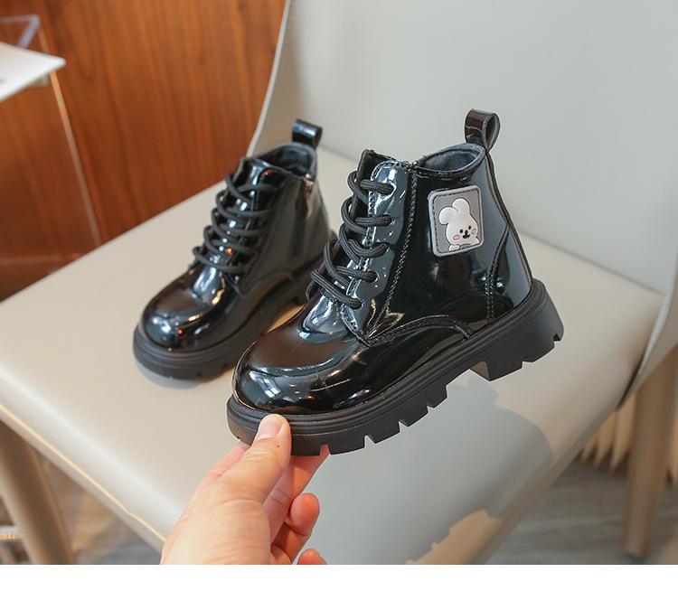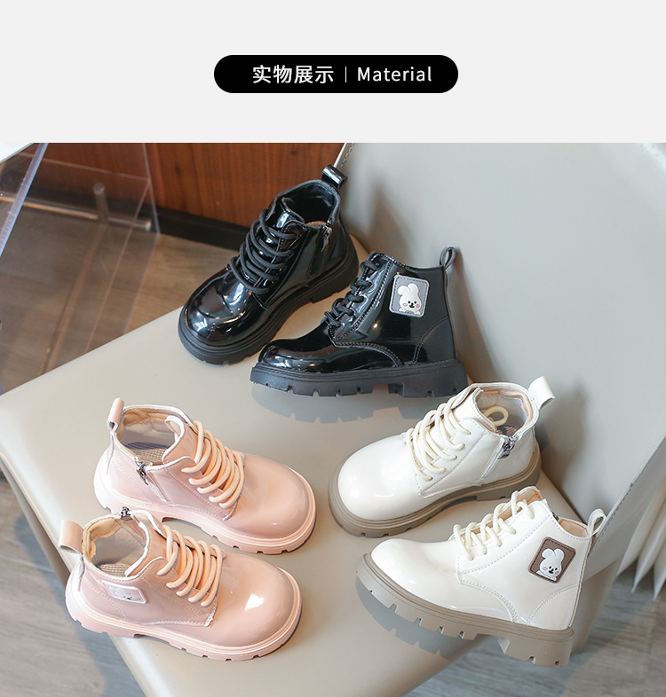 2024 осенние новые детские кожаные ботинки лакированные кожаные кроссовки милые короткие сапоги для девочек Мартин сапоги трансграничная детская обувь