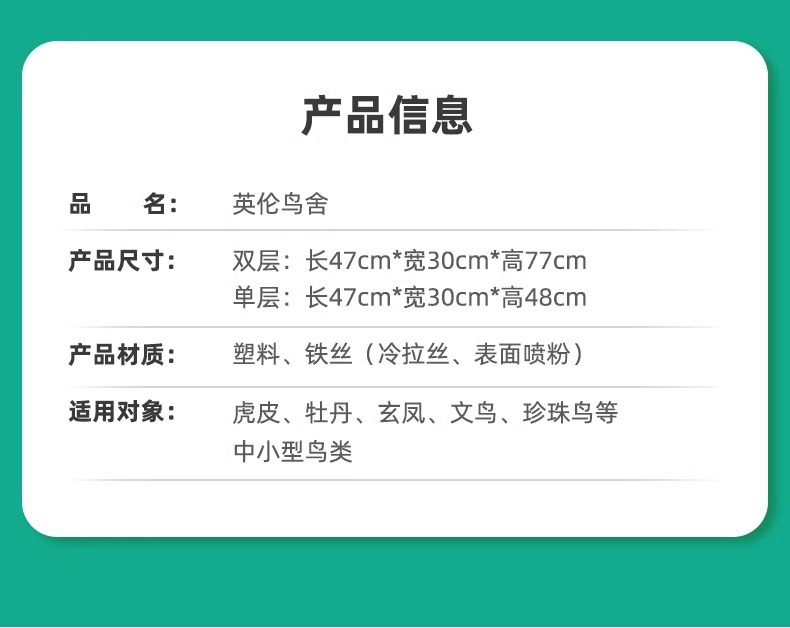 Птичья клетка в британском стиле, однослойная (белая); Птичья клетка в британском стиле, однослойная (серая); Птичья клетка в британском стиле, однослойная (зеленая); [Двухслойная] Птичья клетка в британском стиле (белая); [Двухслойная] Птичья клетка в британском стиле (серая); [Двухслойная] Птичья клетка в британском стиле (зеленая); Британский [передний прозрачный] однослойный (зеленый)