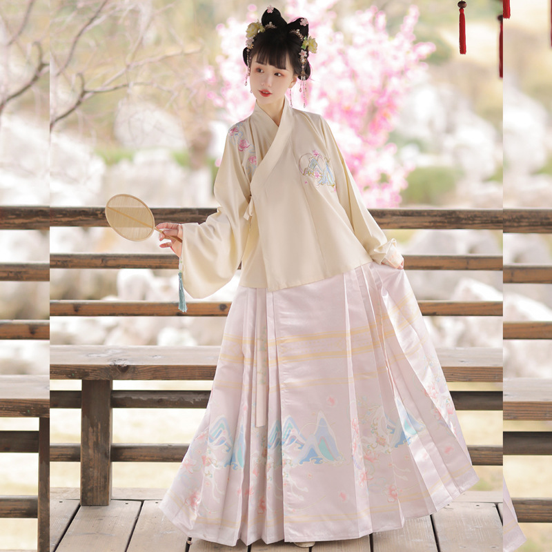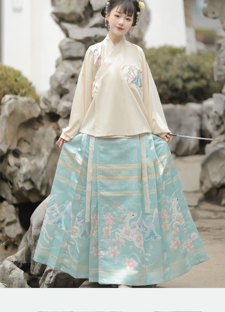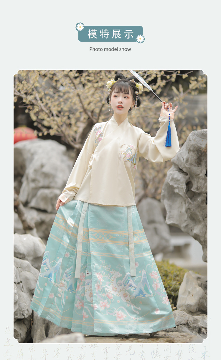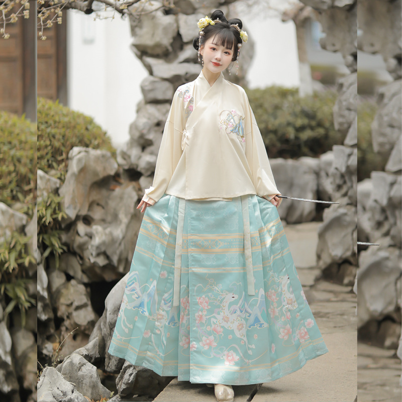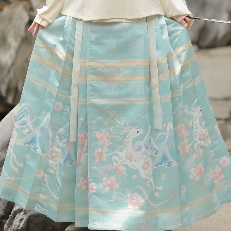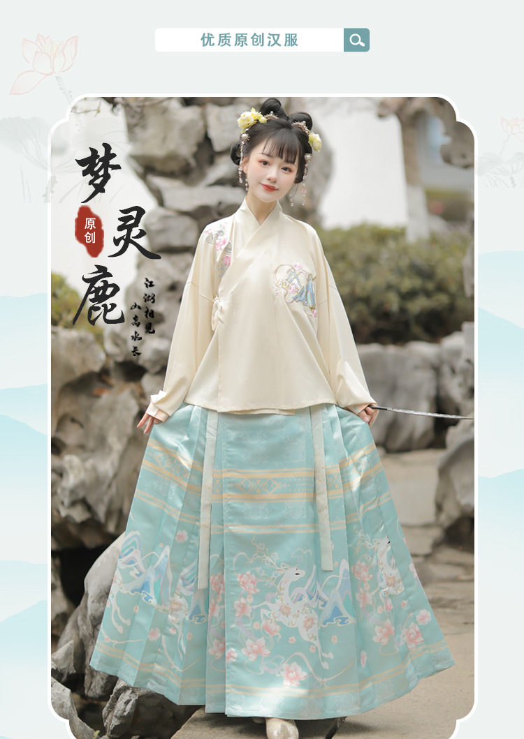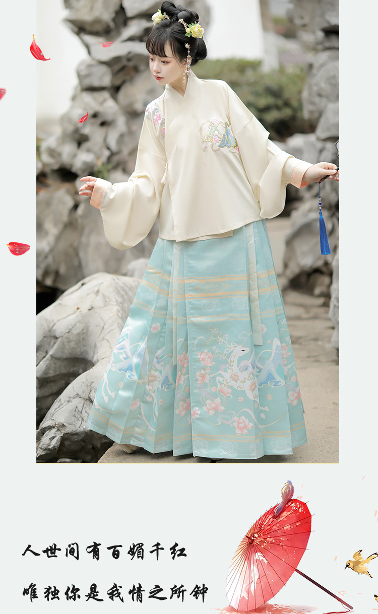 Оригинальная китайская одежда [Mengling олень] Пипа рукава имитация макияжа цветы улучшенные конские плиссированные юбки весной и осенью