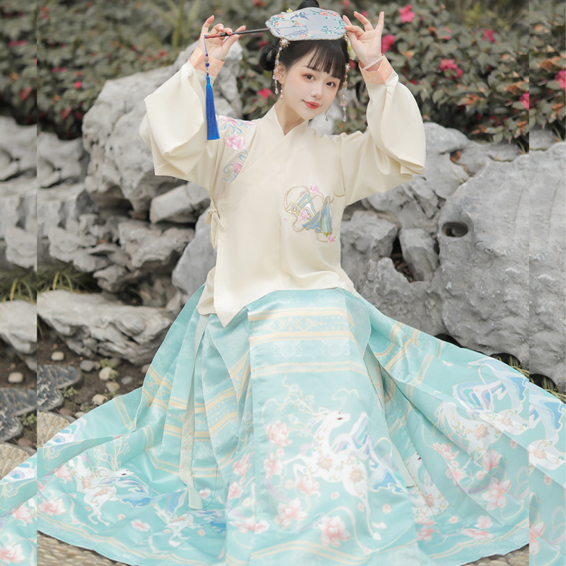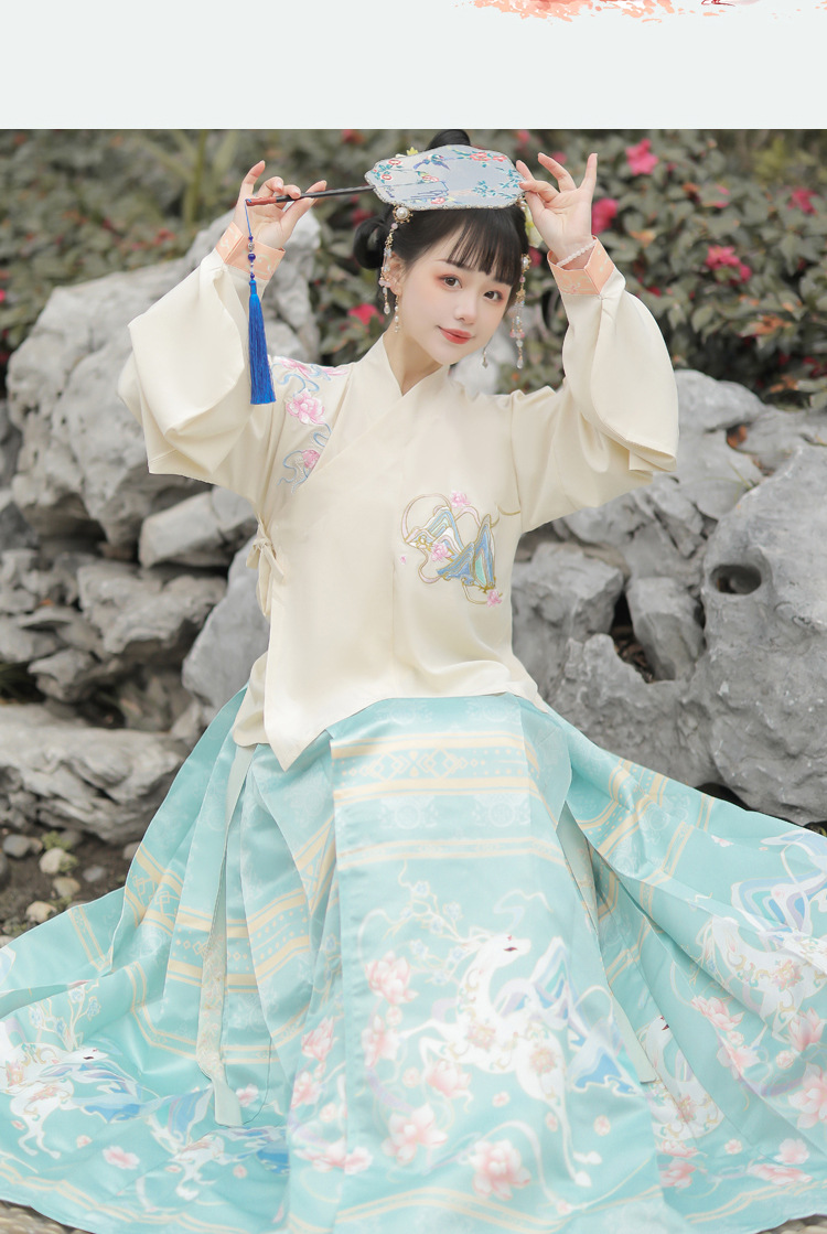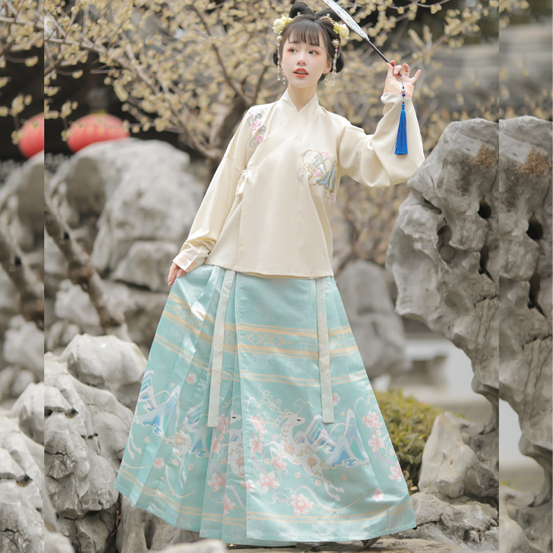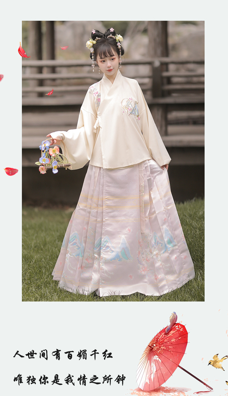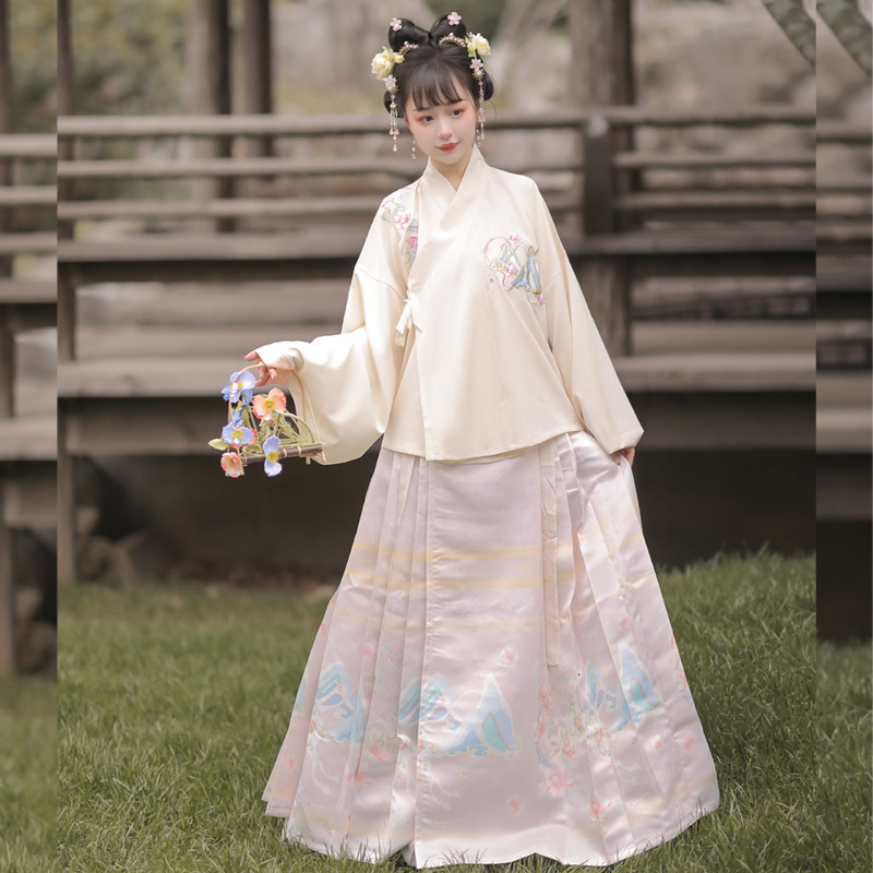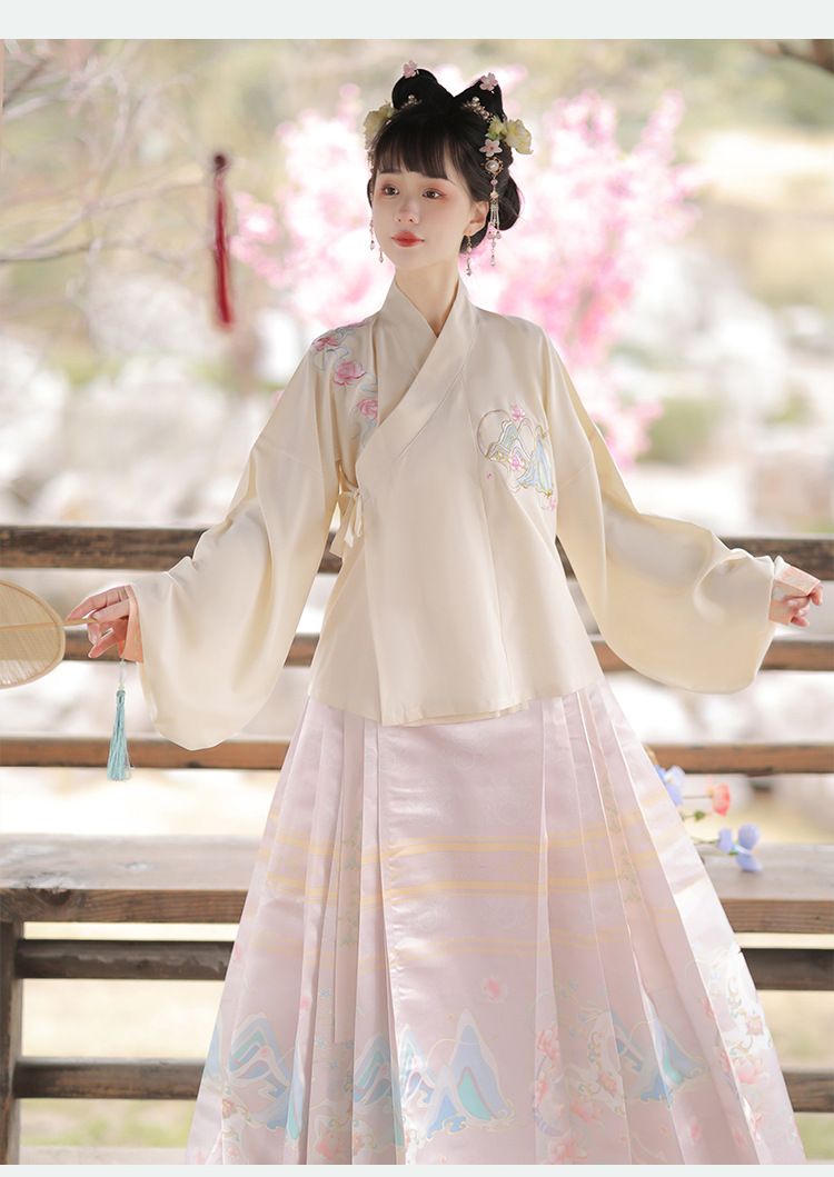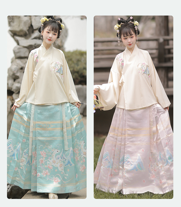 Оригинальная китайская одежда [Mengling олень] Пипа рукава имитация макияжа цветы улучшенные конские плиссированные юбки весной и осенью