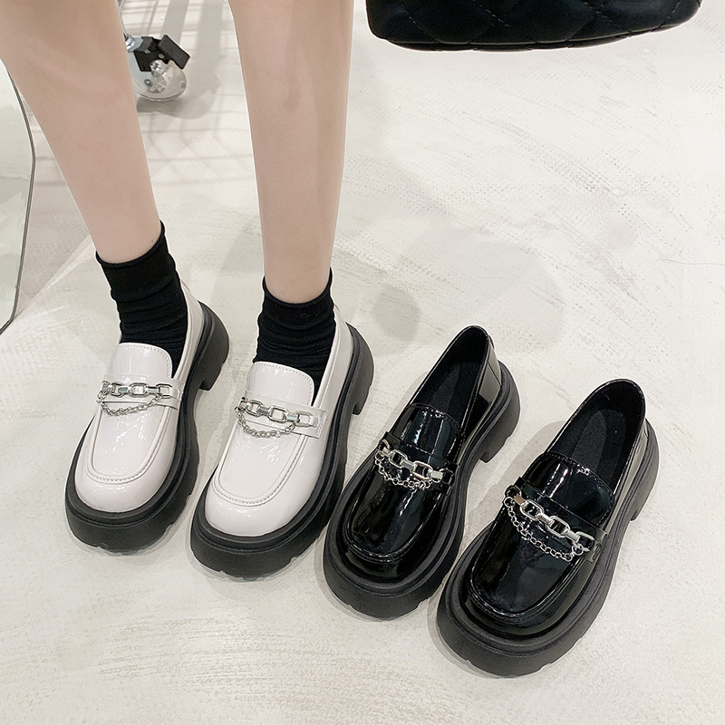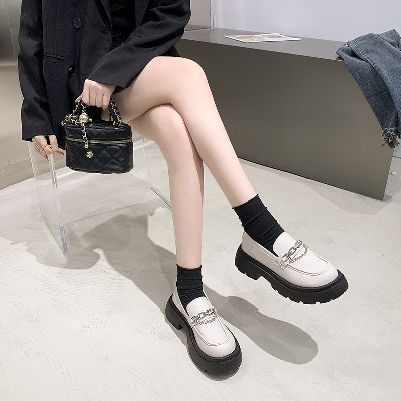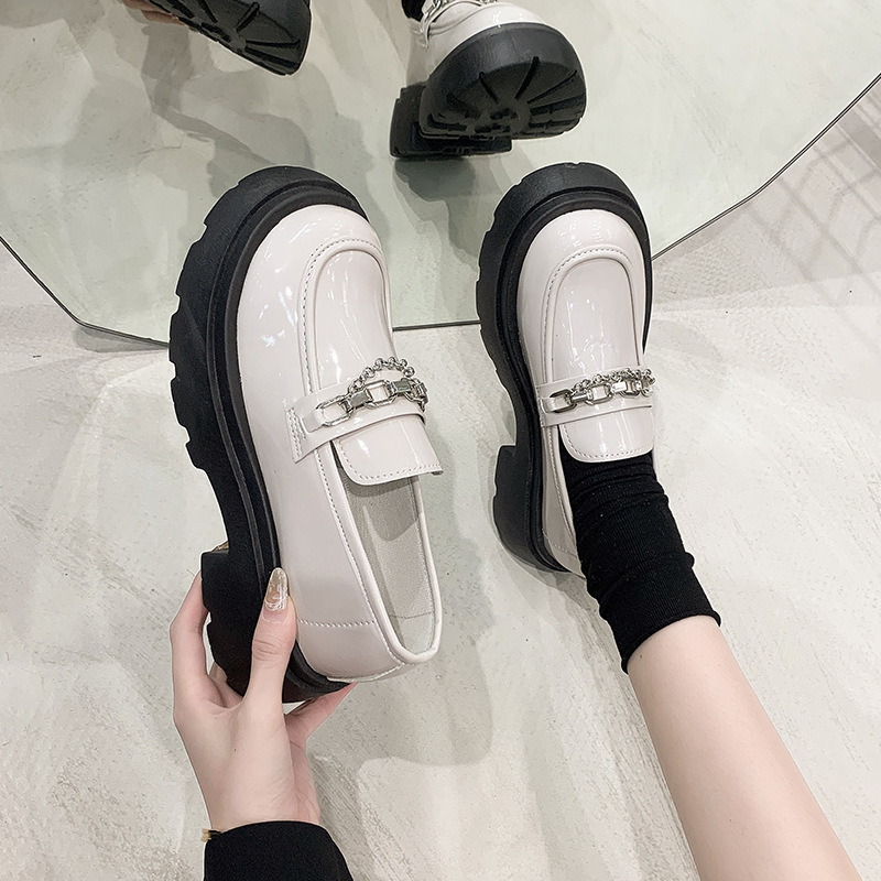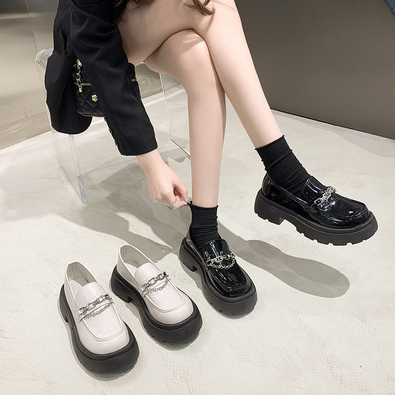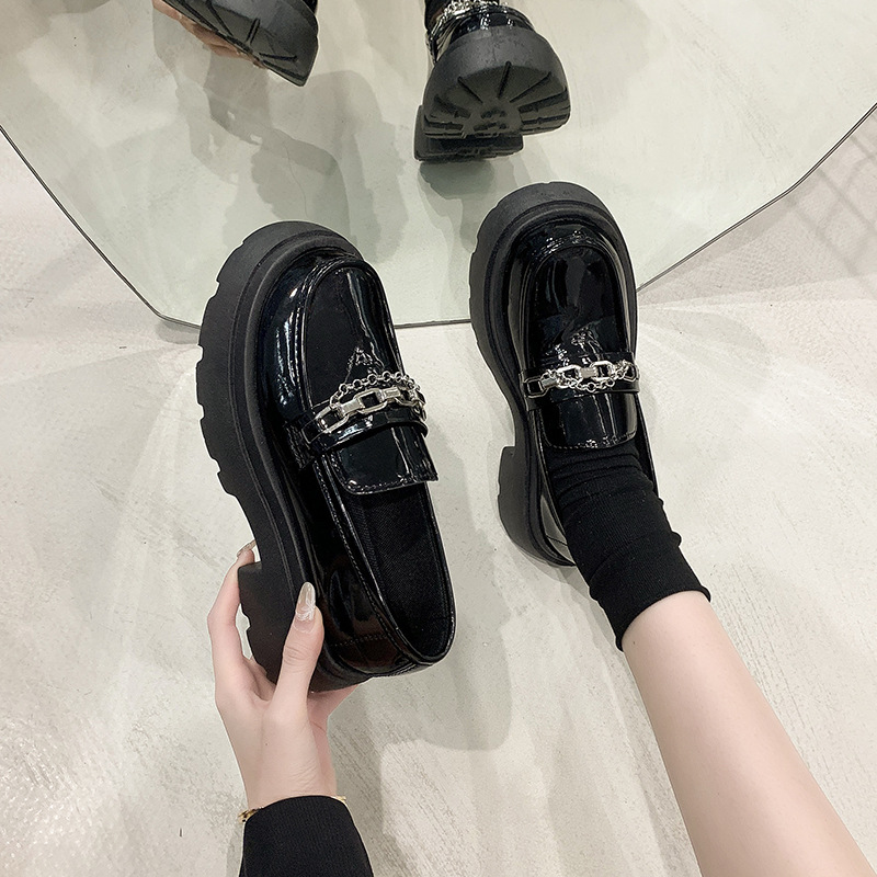 Французская обувь Lefu на толстой подошве женская 2024 новая педаль ретро маленькая кожаная обувь в английском стиле туфли на толстом каблуке оптом