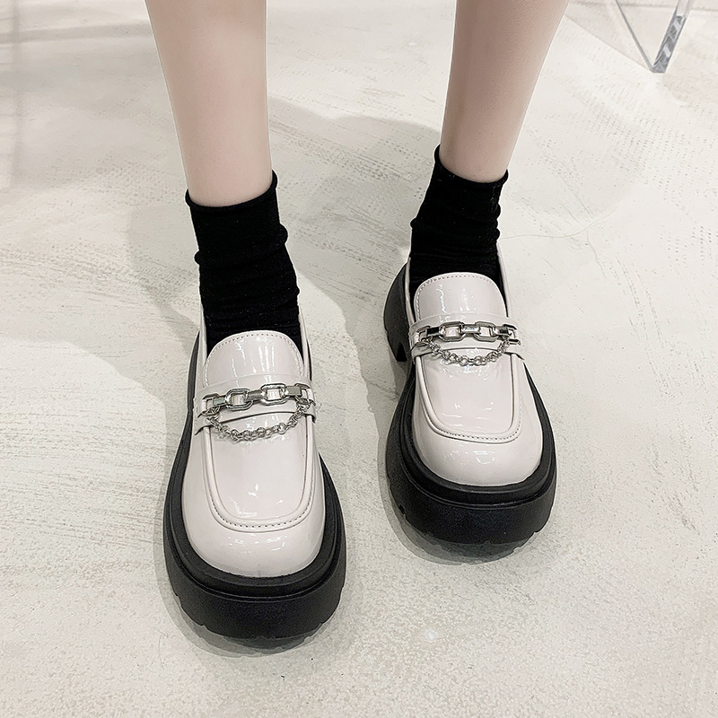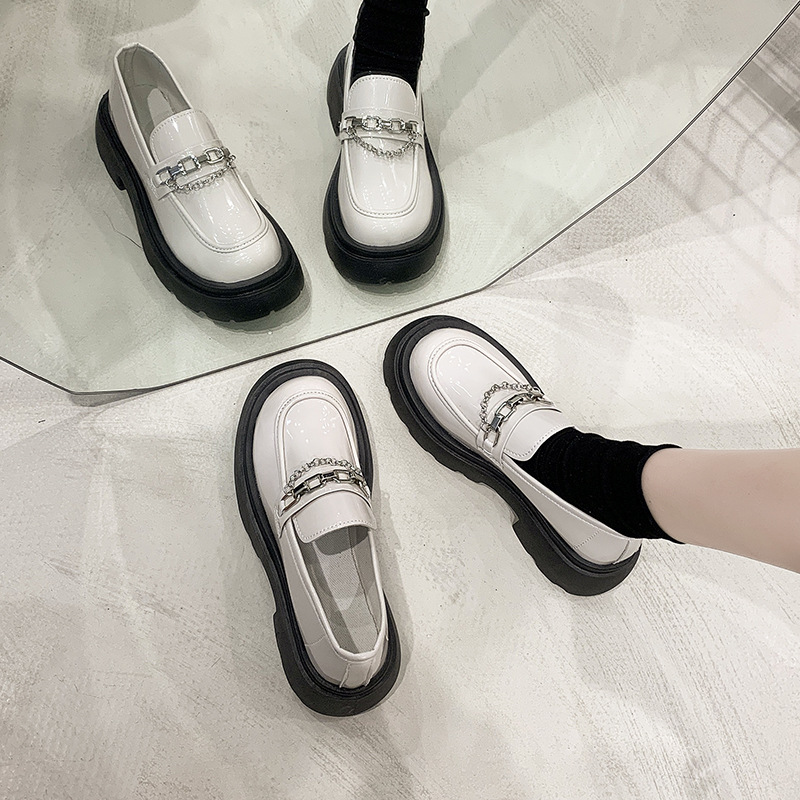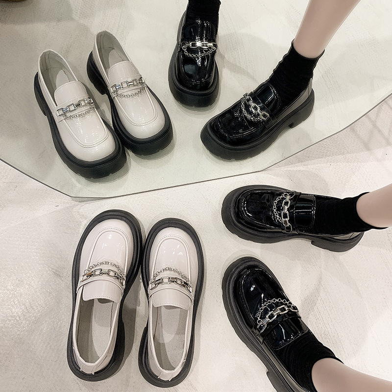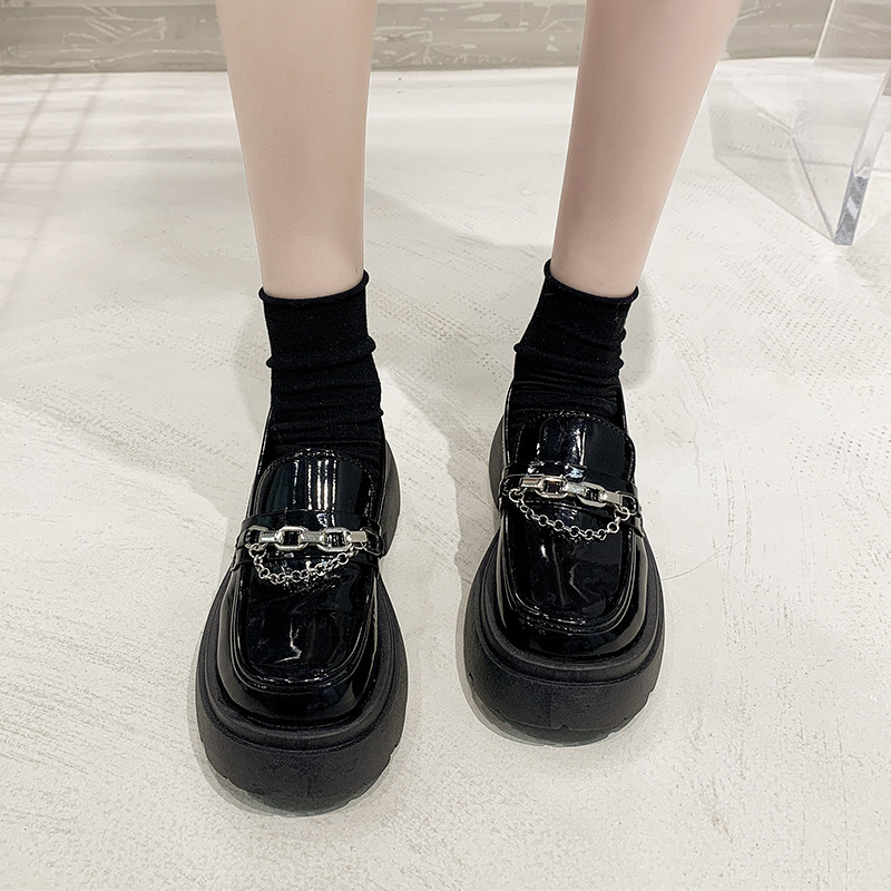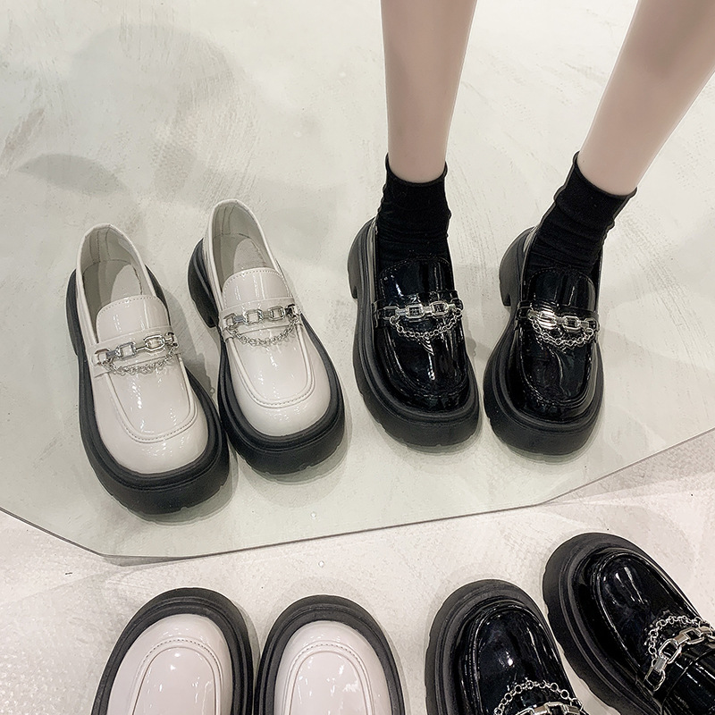 Французская обувь Lefu на толстой подошве женская 2024 новая педаль ретро маленькая кожаная обувь в английском стиле туфли на толстом каблуке оптом