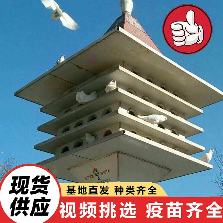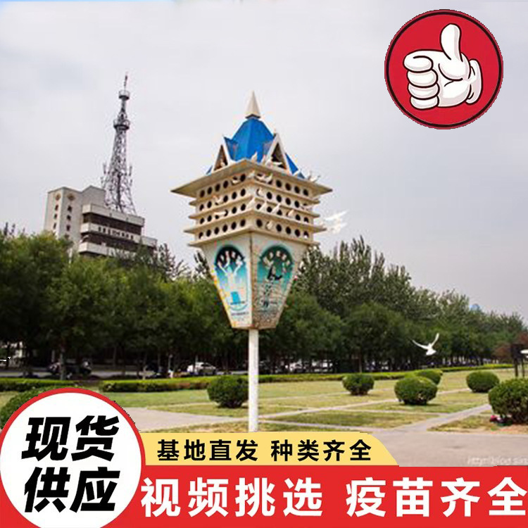 Разводческая база продает квадратных голубей и голубятни на весь год. Ландшафтный голубятник в садовом пейзаже. Парковая кормушка для голубей.