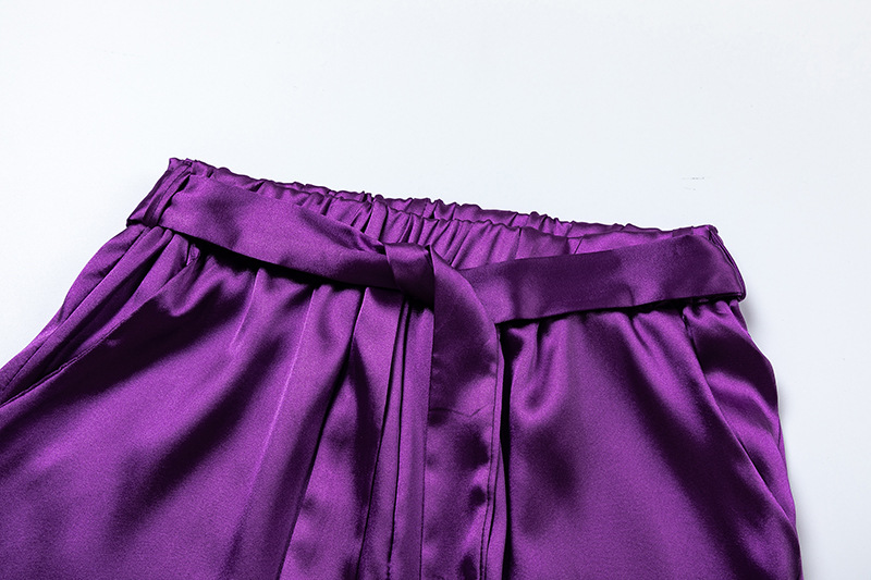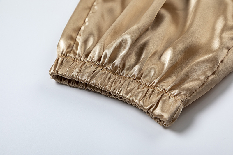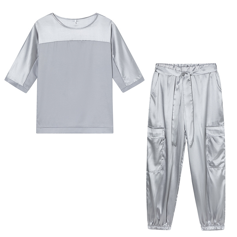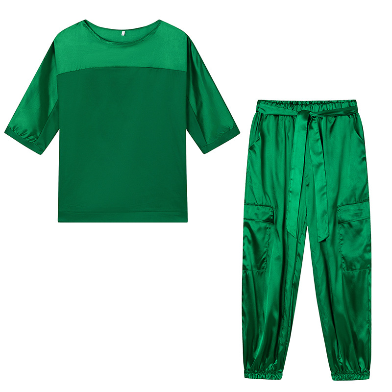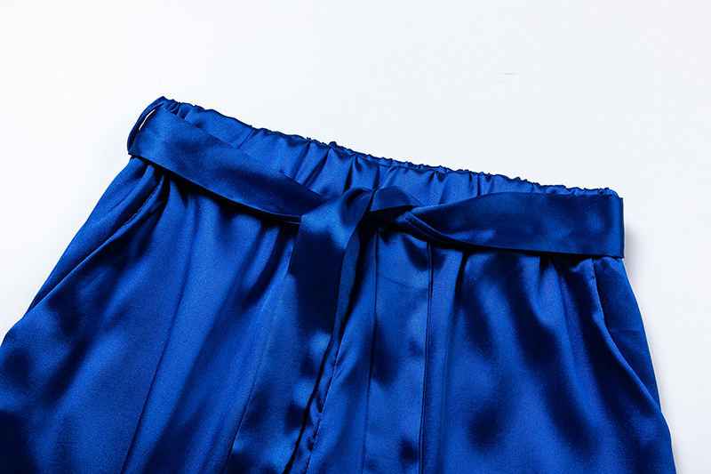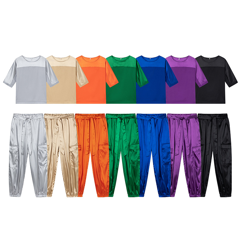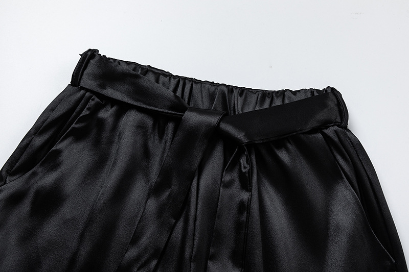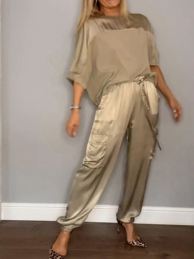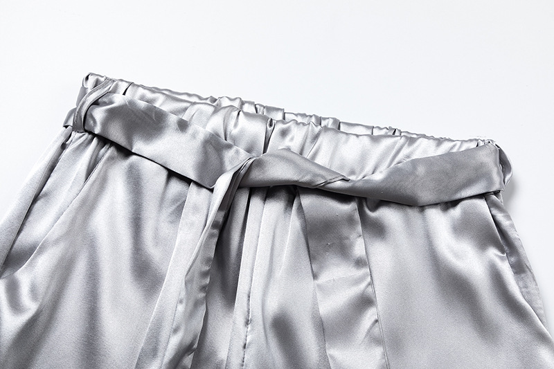 2024 Европейский и Американский трансграничный новый модный женский гладкий атласный топ с половиной рукава брюки набор из двух частей повседневный набор