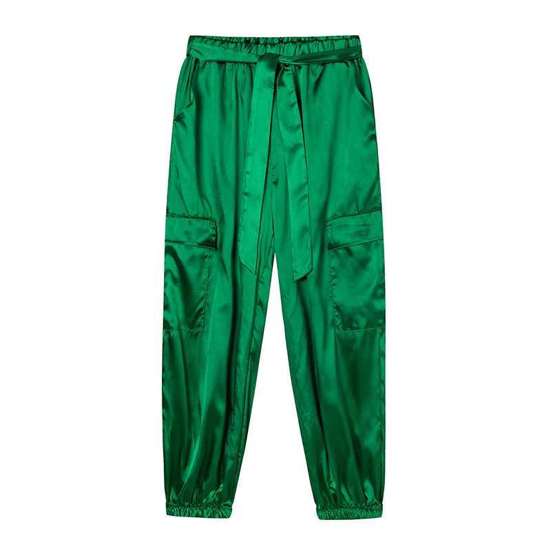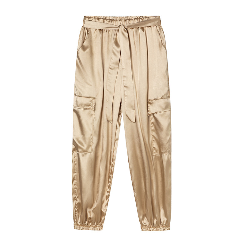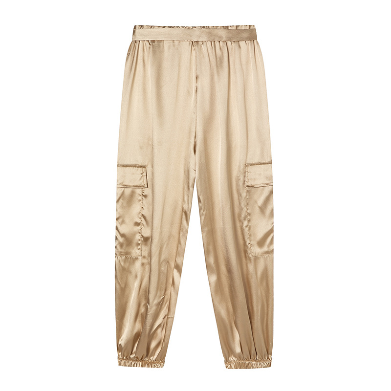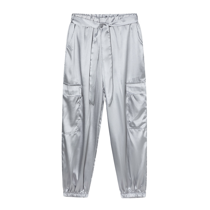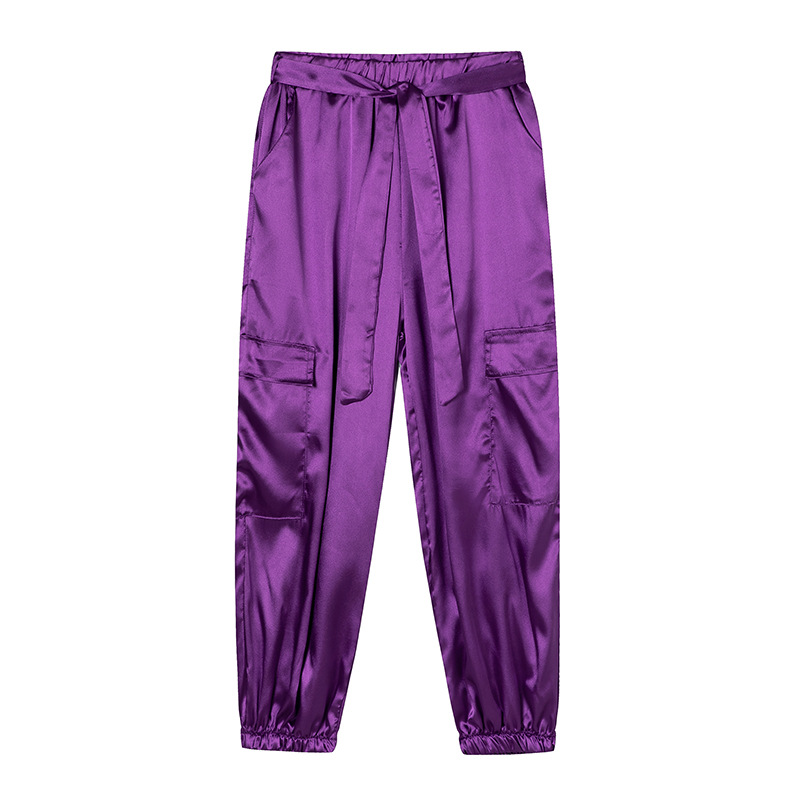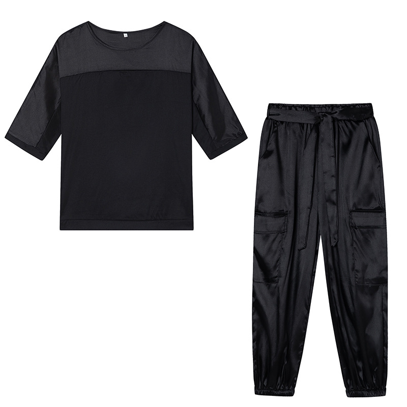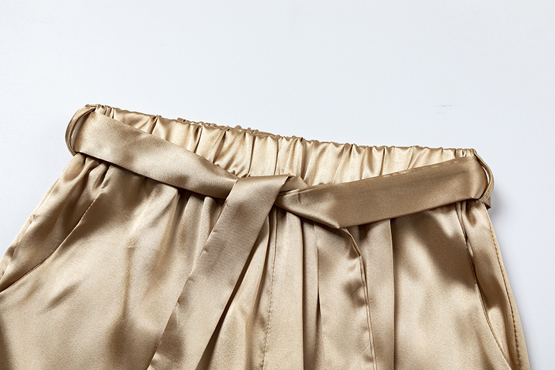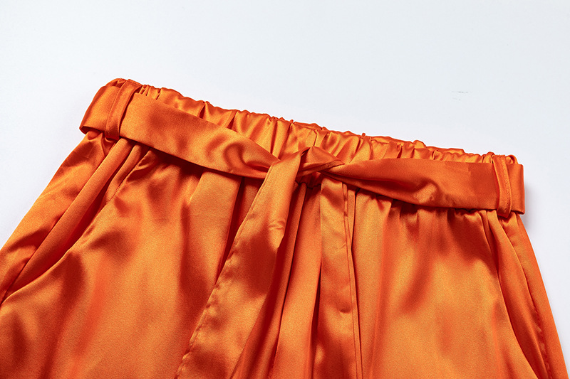 2024 Европейский и Американский трансграничный новый модный женский гладкий атласный топ с половиной рукава брюки набор из двух частей повседневный набор