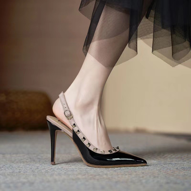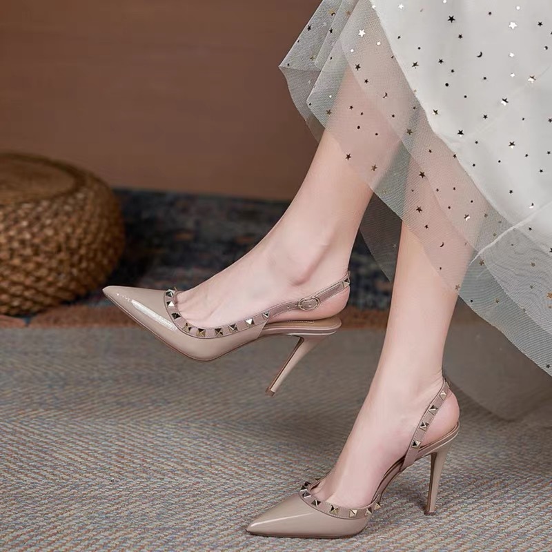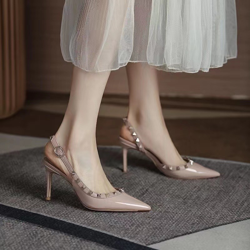 Женские туфли на высоком каблуке, лето 2024, интернет-хит, французские универсальные босоножки на тонком каблуке с острым носком и шипами, сексуальные элегантные туфли с неглубоким вырезом.