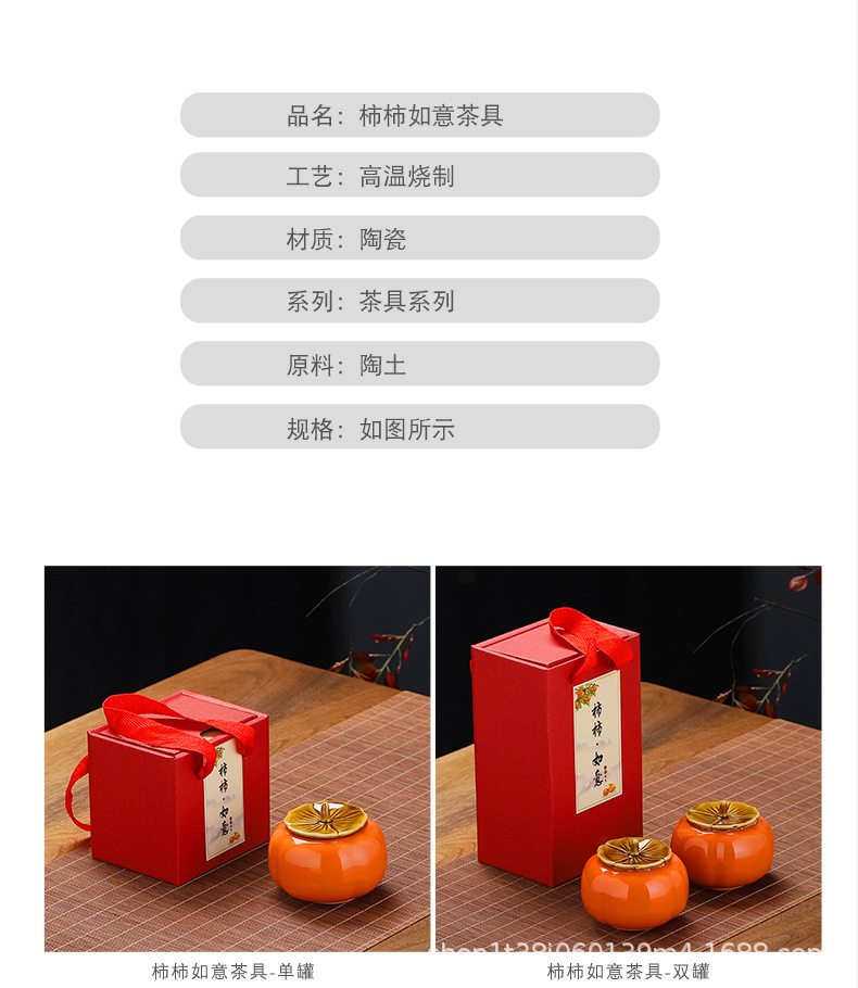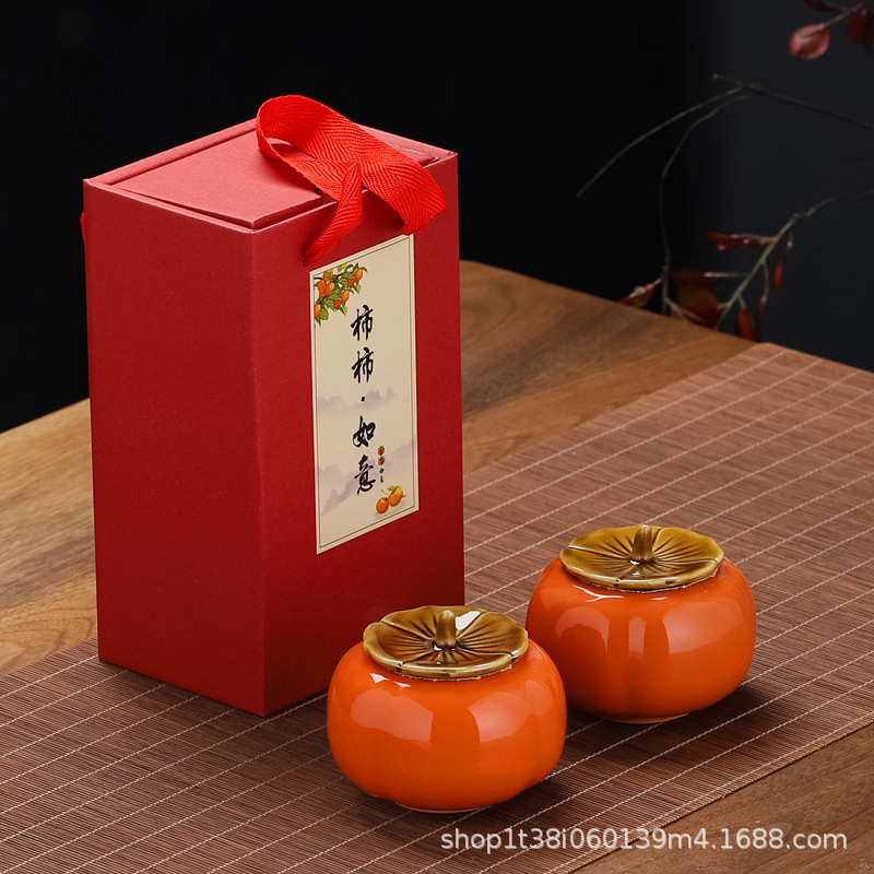 Persimmon Ruyi Persimmon Jar Свадебная банка для конфет Керамическая герметичная банка для хранения конфет Креативная банка для чая Упаковочная банка Meishu