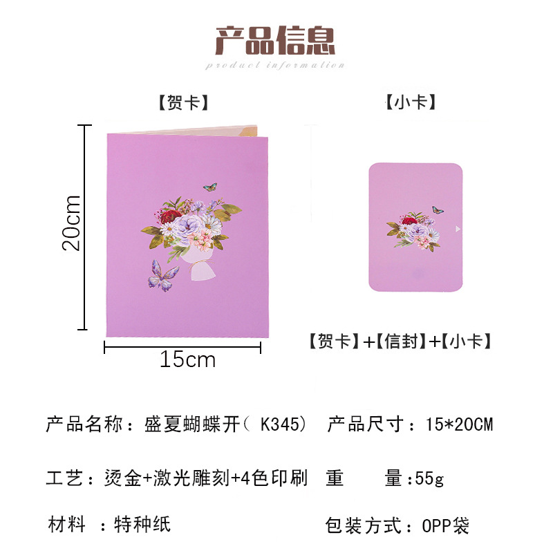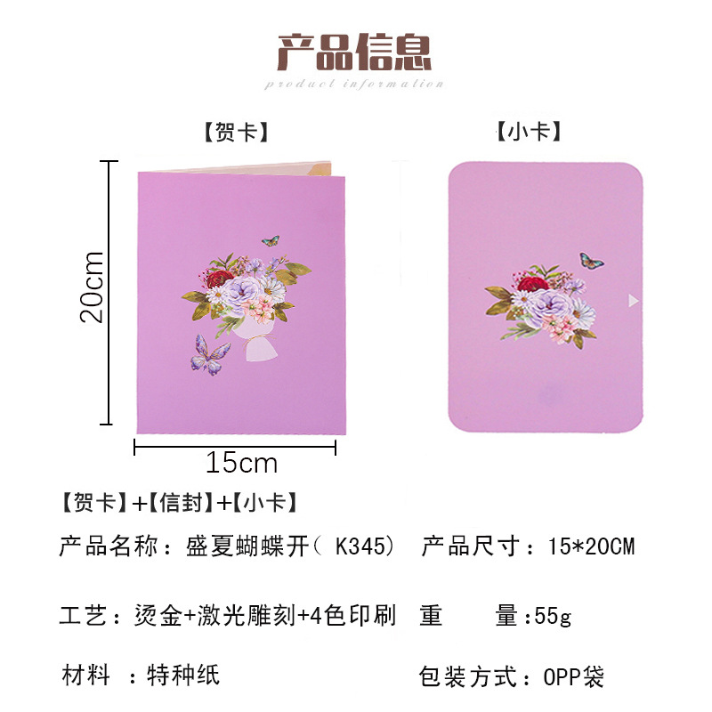Креативная 3D-открытка с бабочками и цветами для трансграничной торговли, складная, ручной работы, с возможностью индивидуализации, для поздравления на день рождения мамы