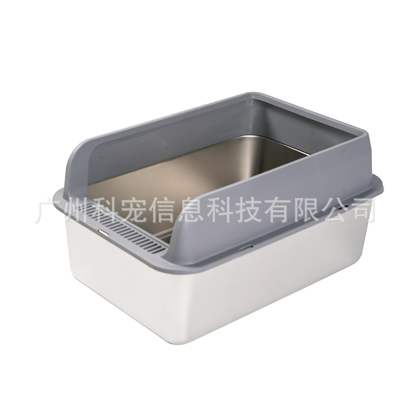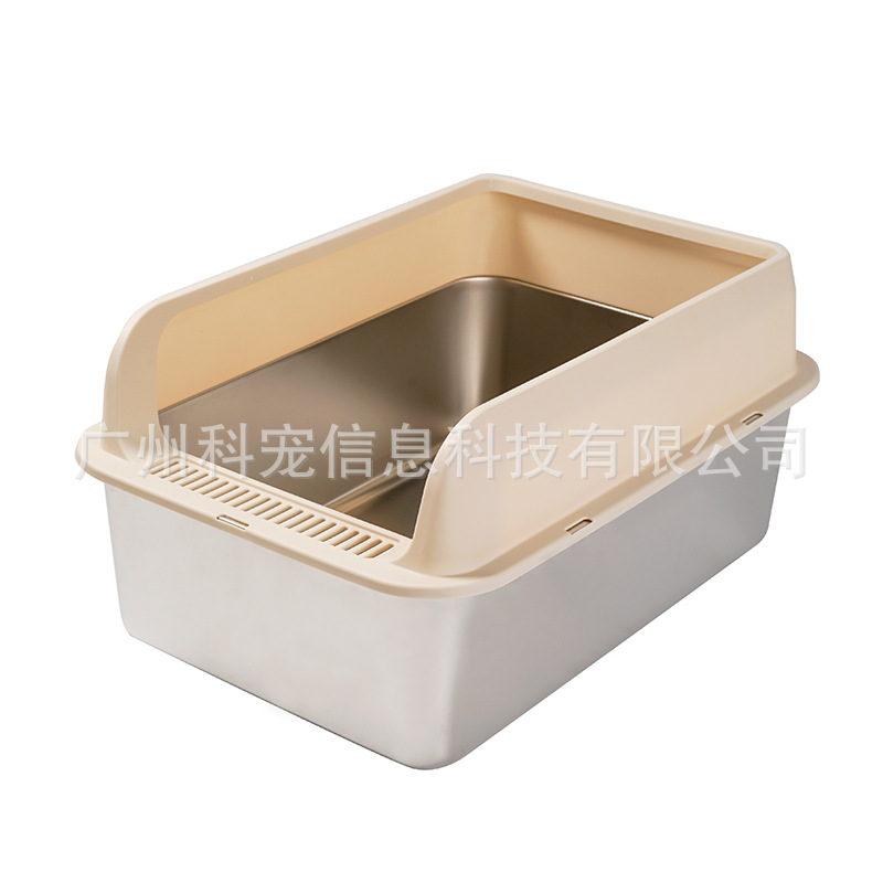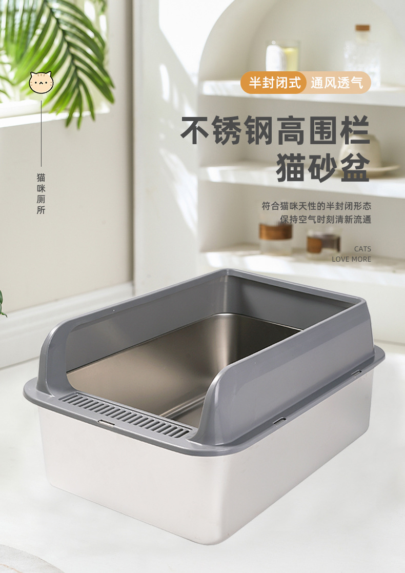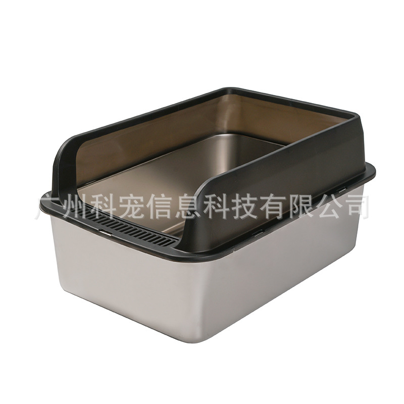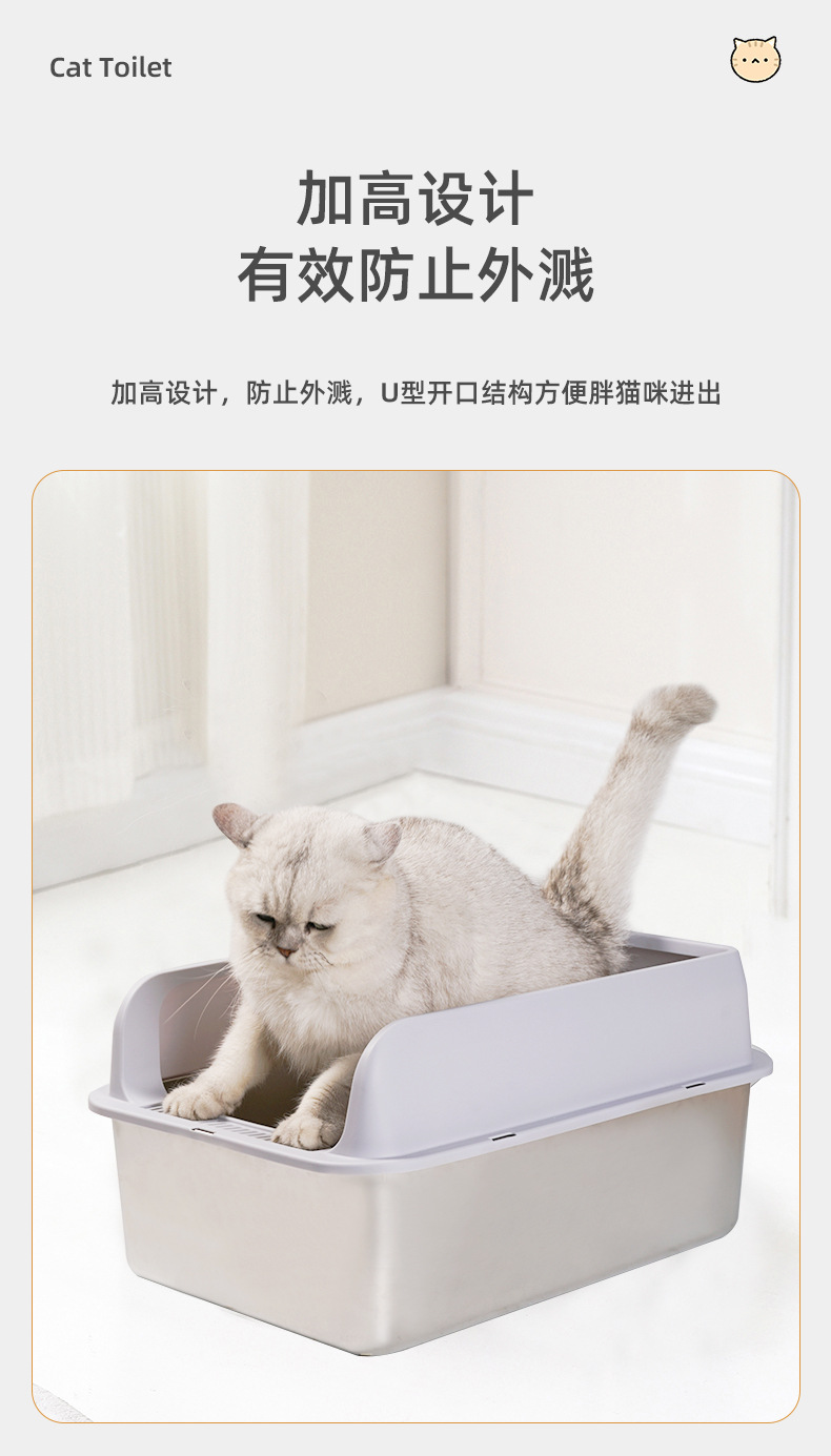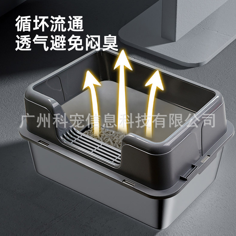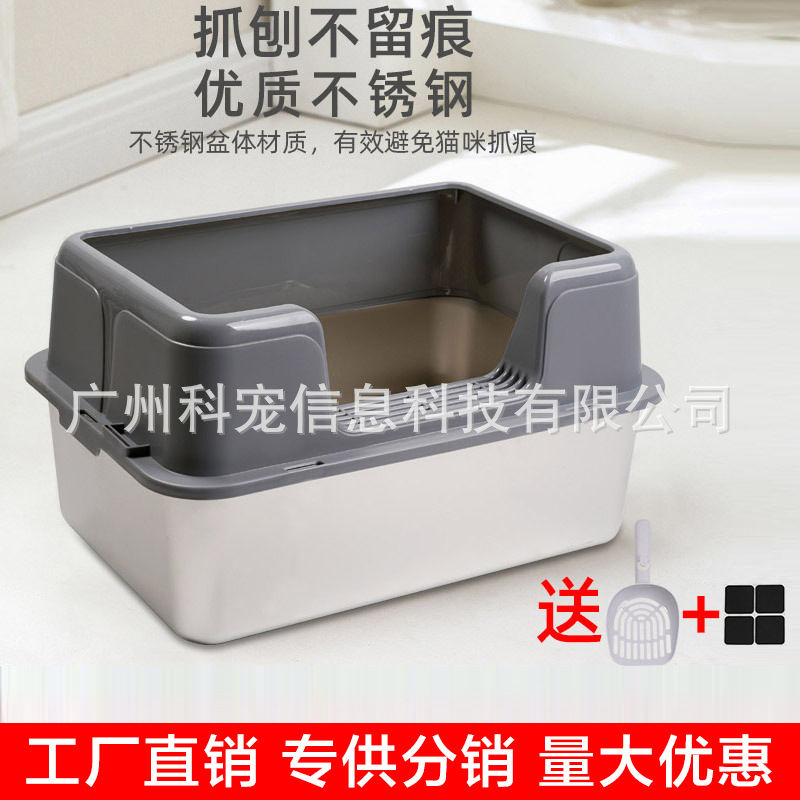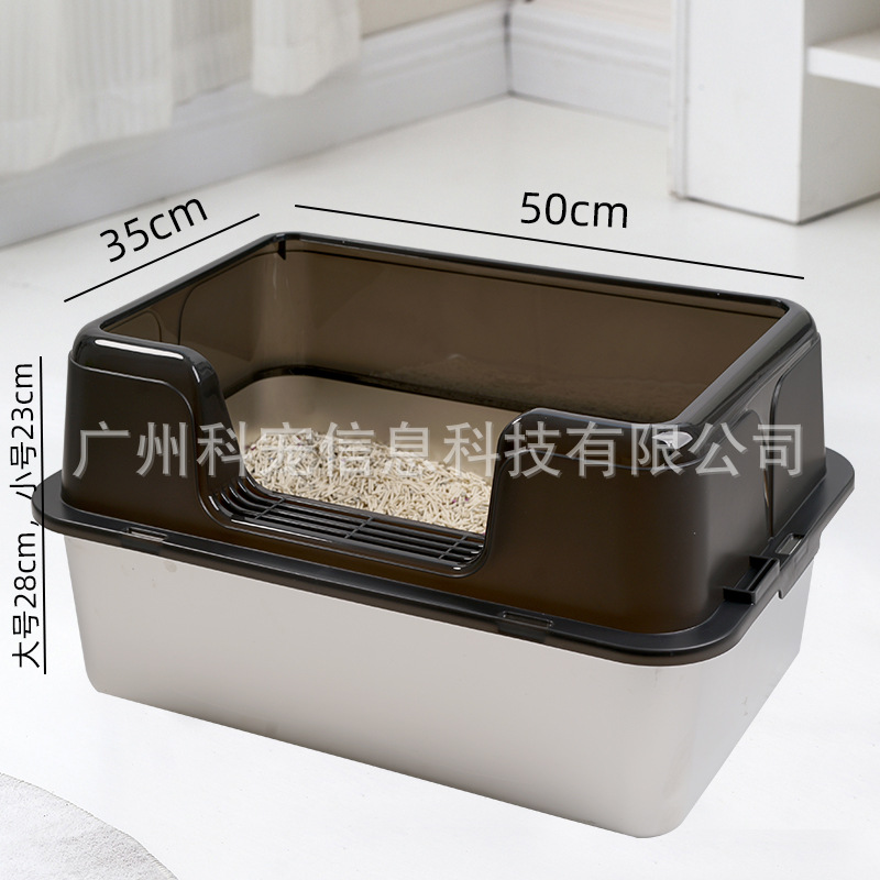 Кошачий туалет из нержавеющей стали для международной торговли Amazon с защитным кожухом от разбрызгивания, очень большой полузакрытый туалет для кошек с верхним входом