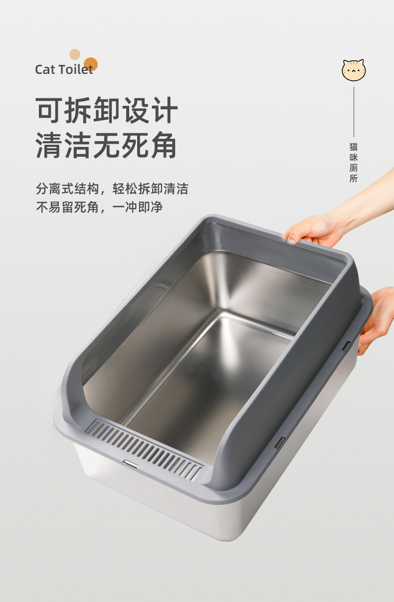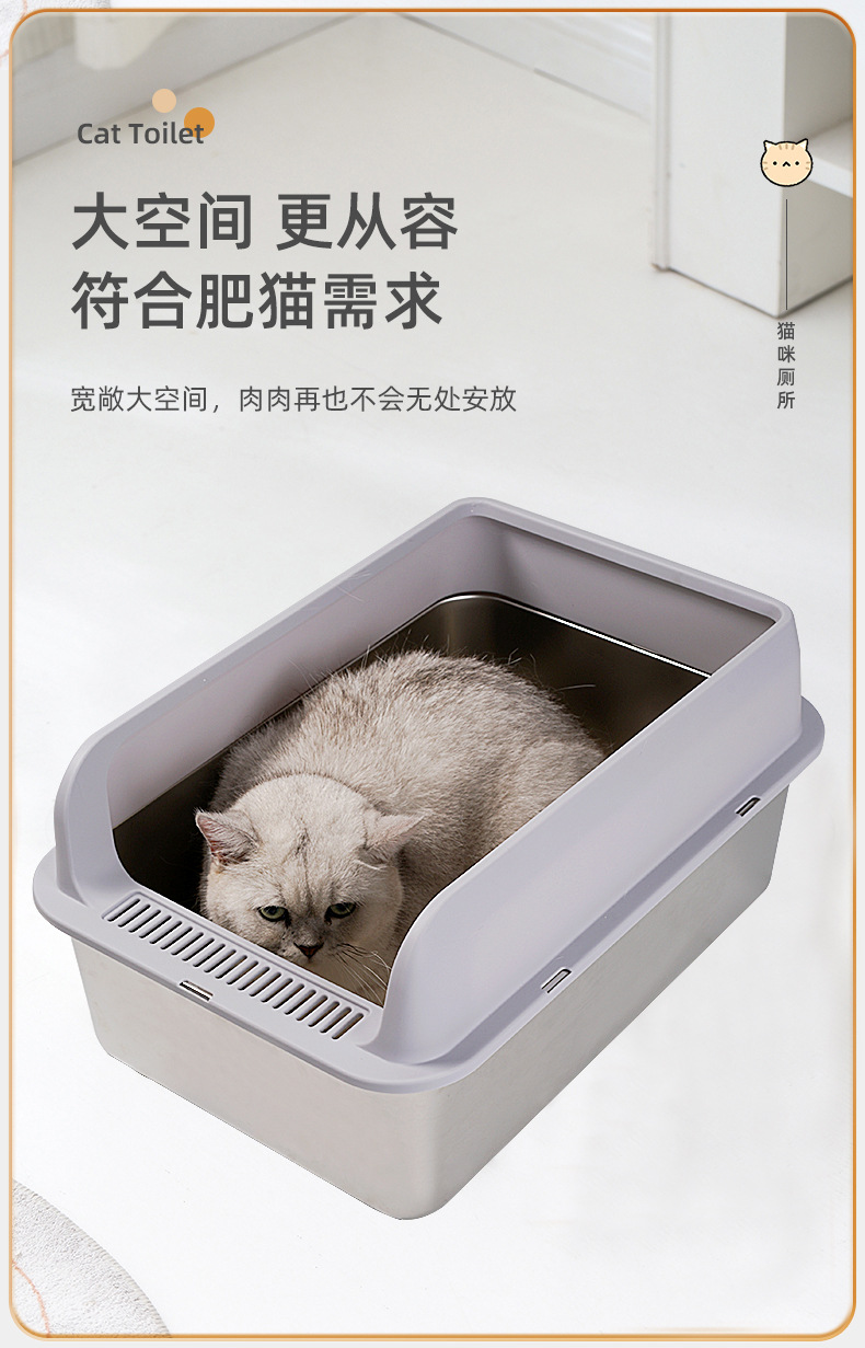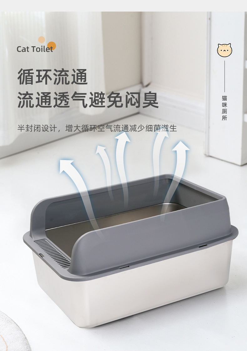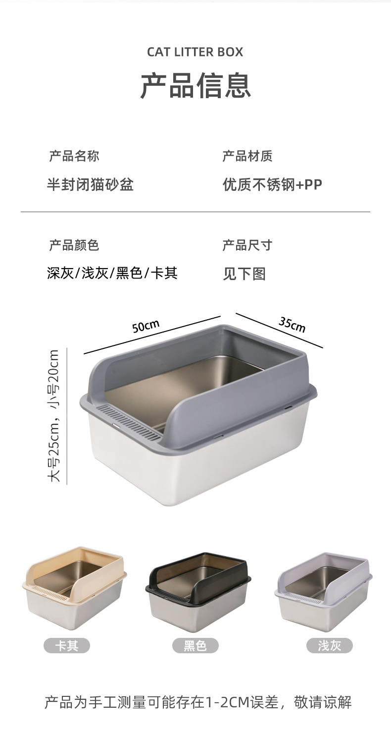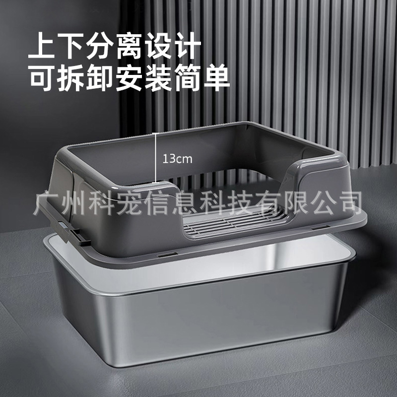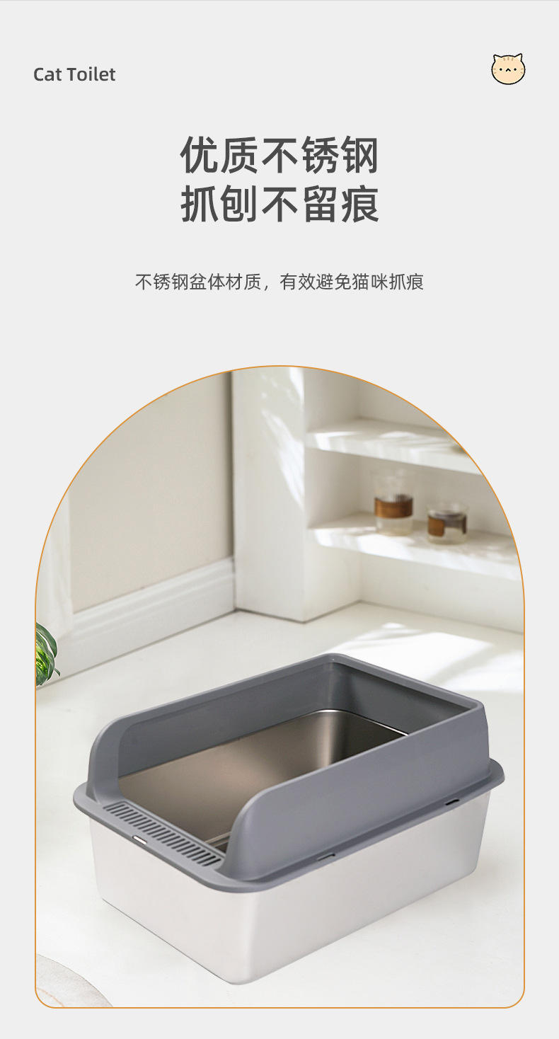 Кошачий туалет из нержавеющей стали для международной торговли Amazon с защитным кожухом от разбрызгивания, очень большой полузакрытый туалет для кошек с верхним входом