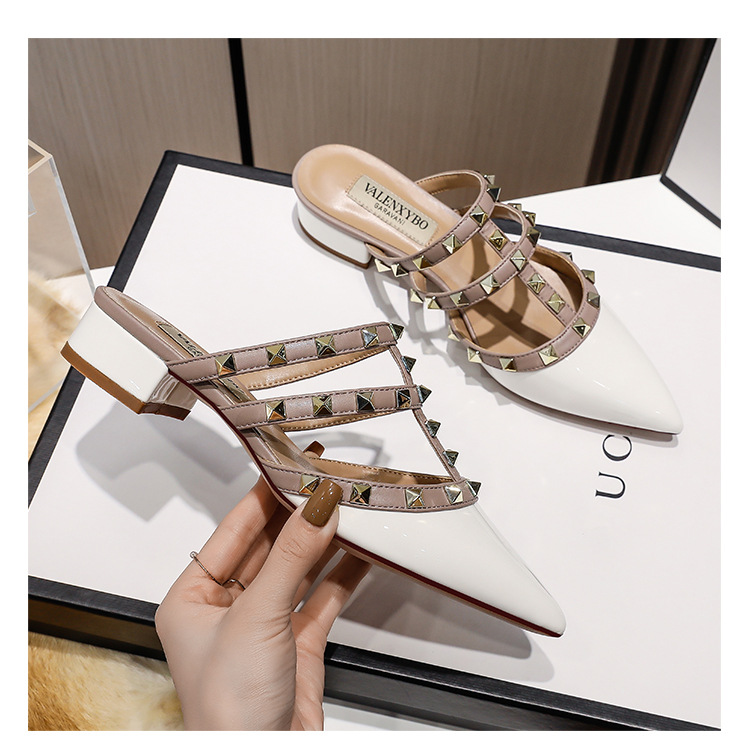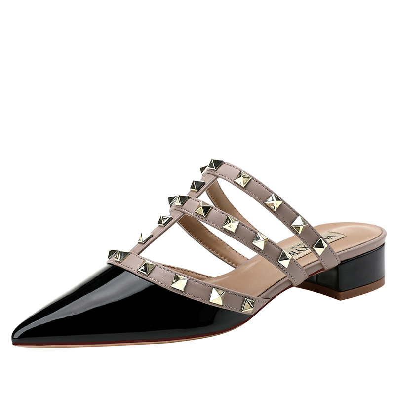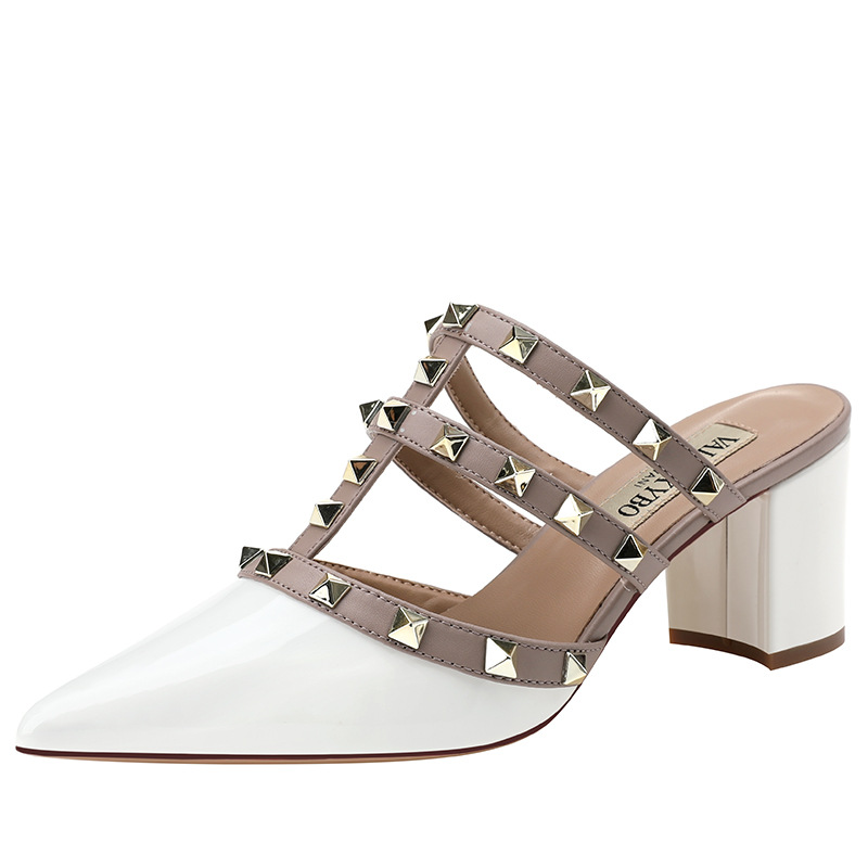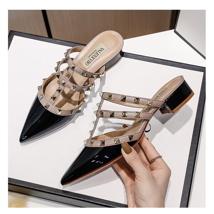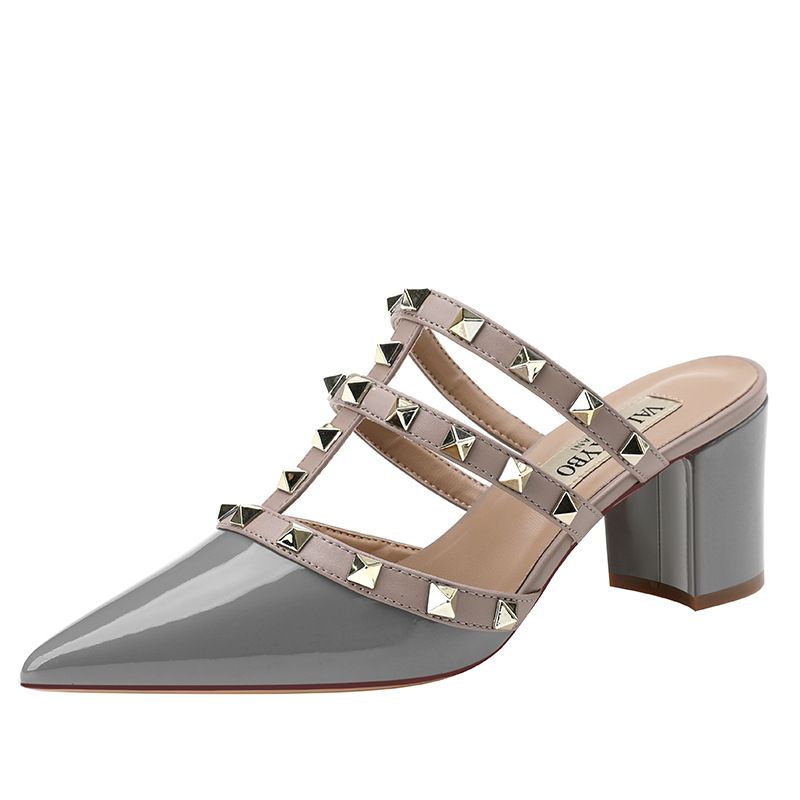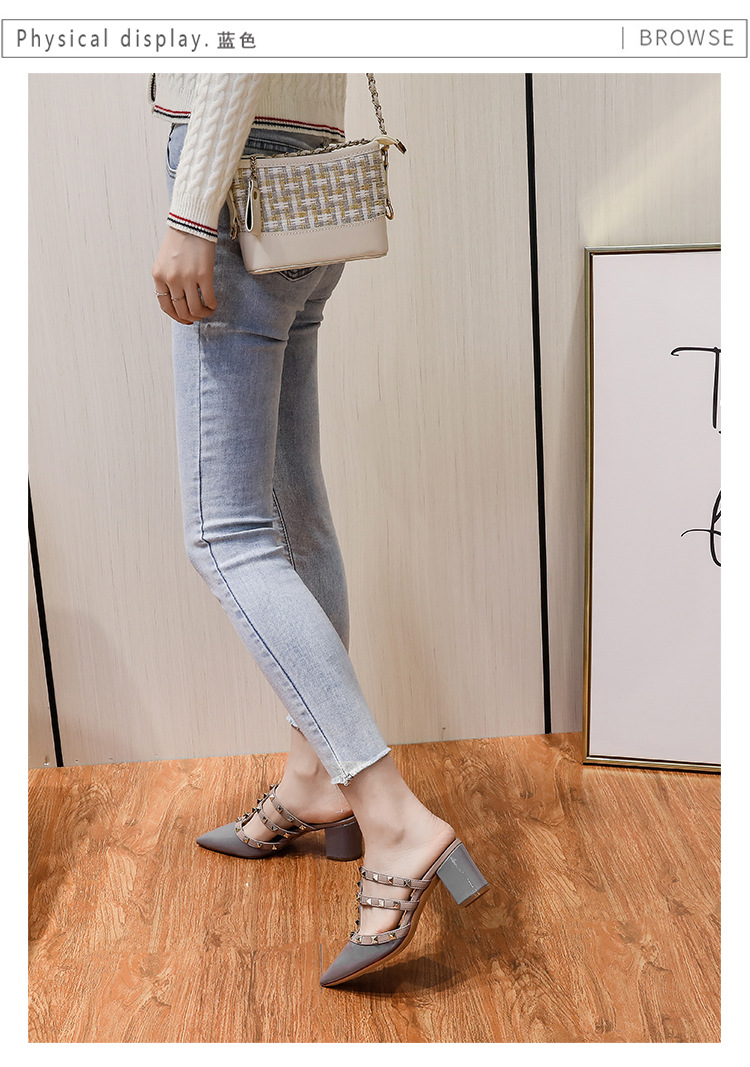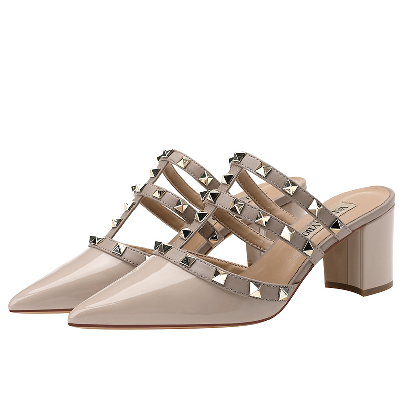 Французские туфли на высоком каблуке полутапочки женские наружные 2024 новые весенние и летние толстые каблуки заклепки дикие сказочные сандалии