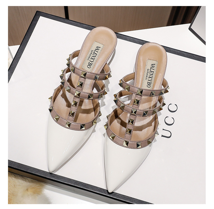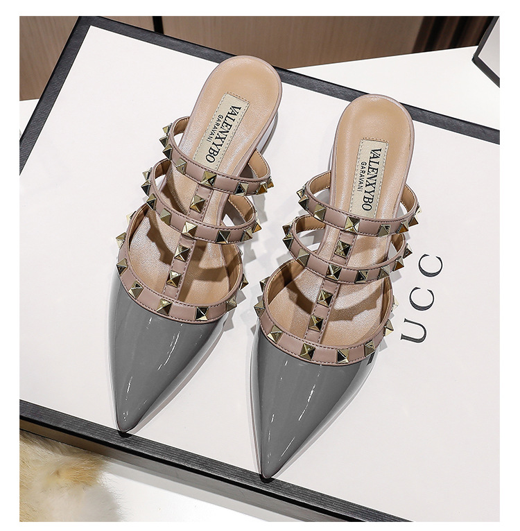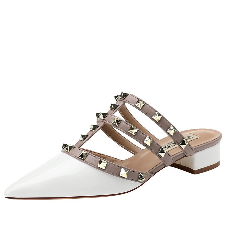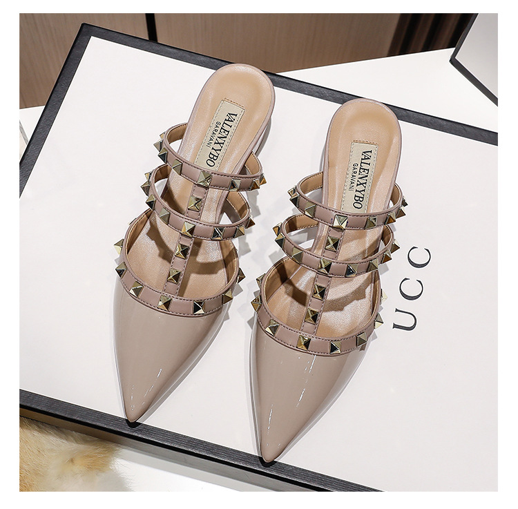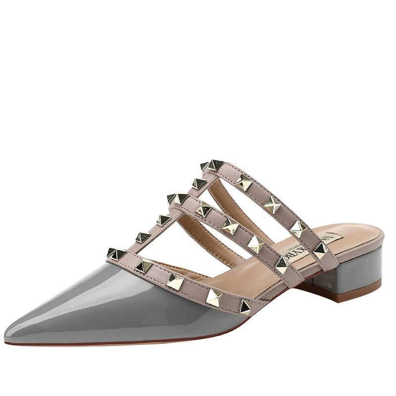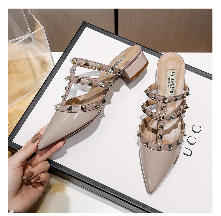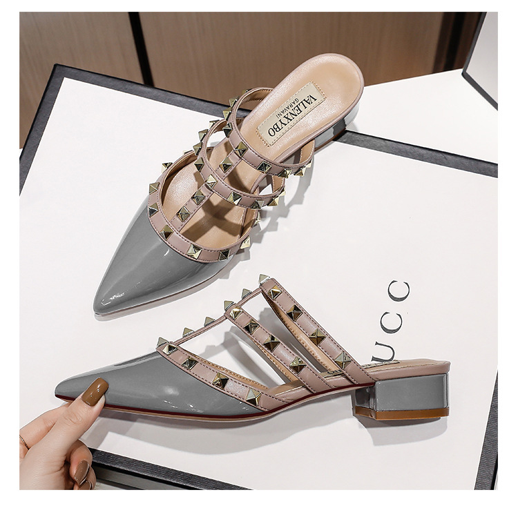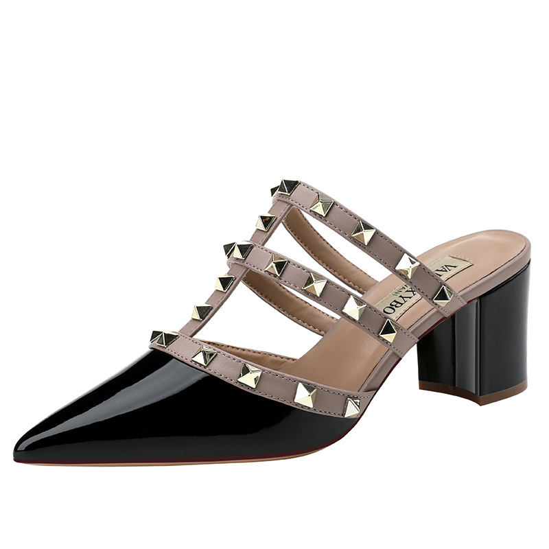 Французские туфли на высоком каблуке полутапочки женские наружные 2024 новые весенние и летние толстые каблуки заклепки дикие сказочные сандалии