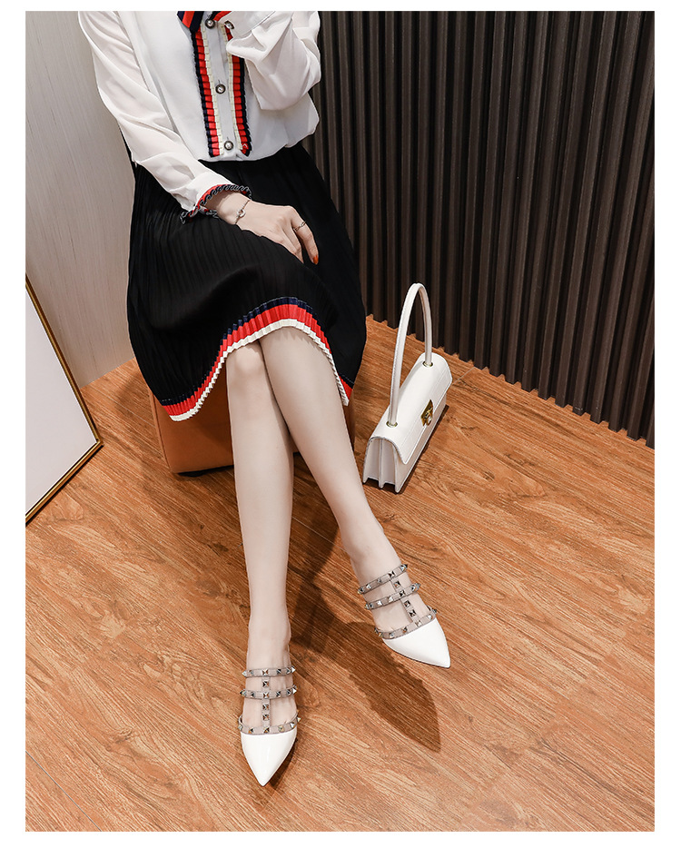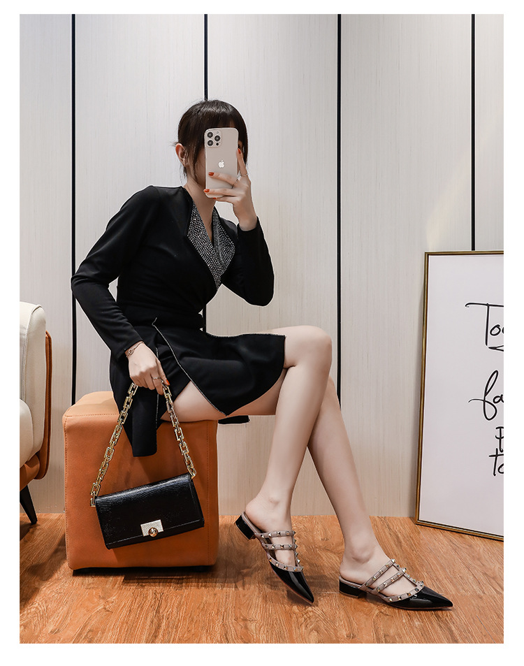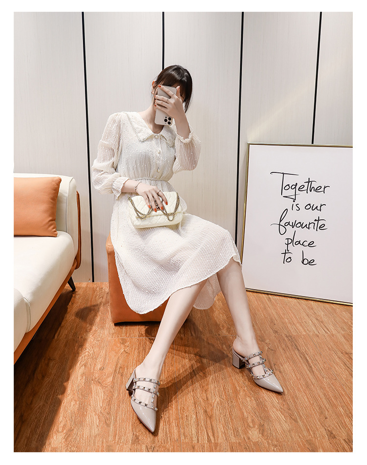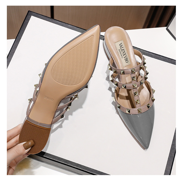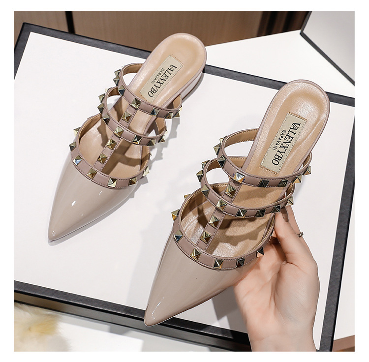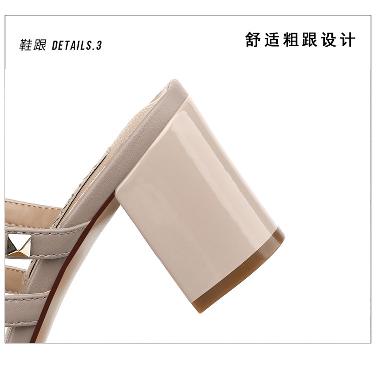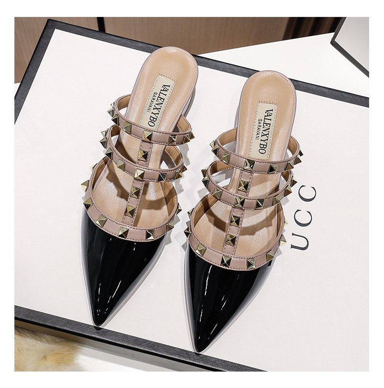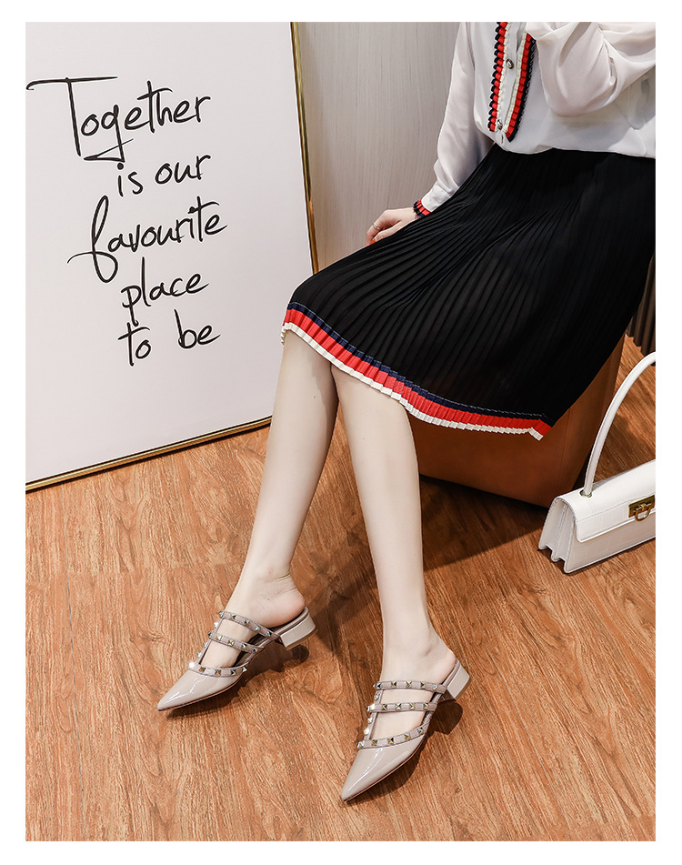 Французские туфли на высоком каблуке полутапочки женские наружные 2024 новые весенние и летние толстые каблуки заклепки дикие сказочные сандалии