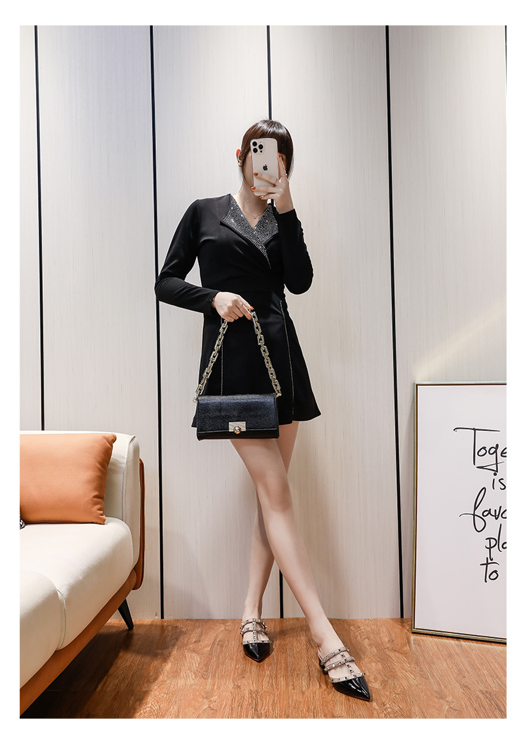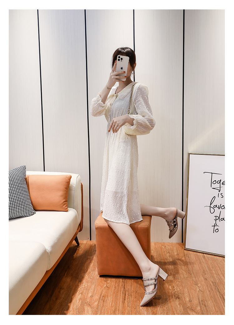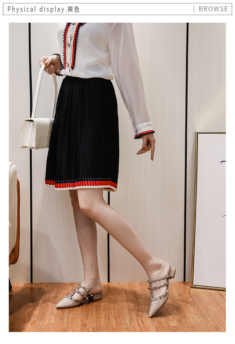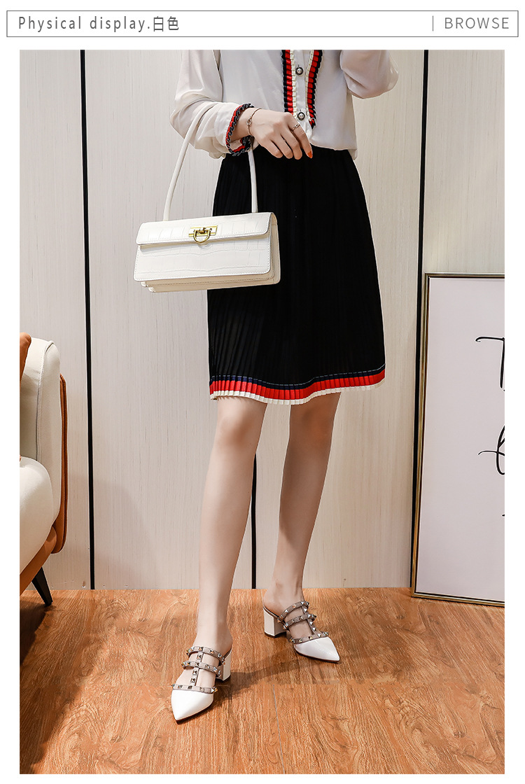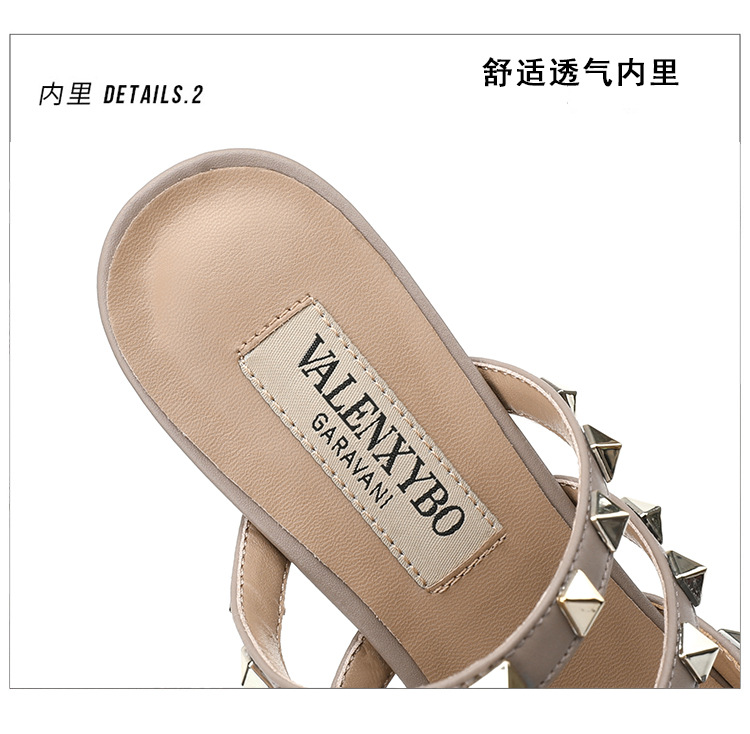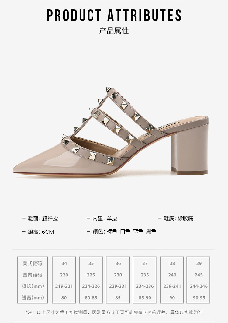 Французские туфли на высоком каблуке полутапочки женские наружные 2024 новые весенние и летние толстые каблуки заклепки дикие сказочные сандалии