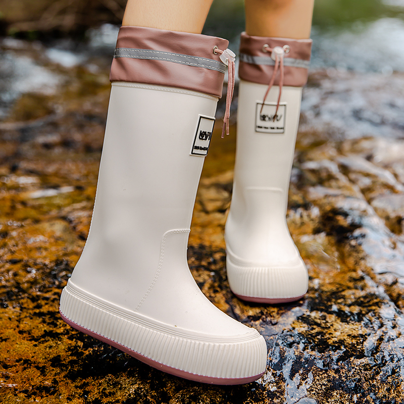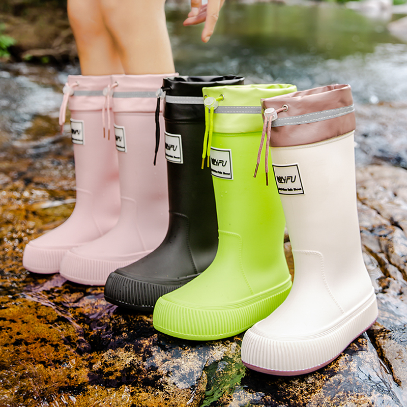 Женские резиновые сапоги, модная обувь для воды в японском стиле с высоким берцем для взрослых, водонепроницаемые, нескользящие, бархатные, легкие, износостойкие резиновые сапоги LFY