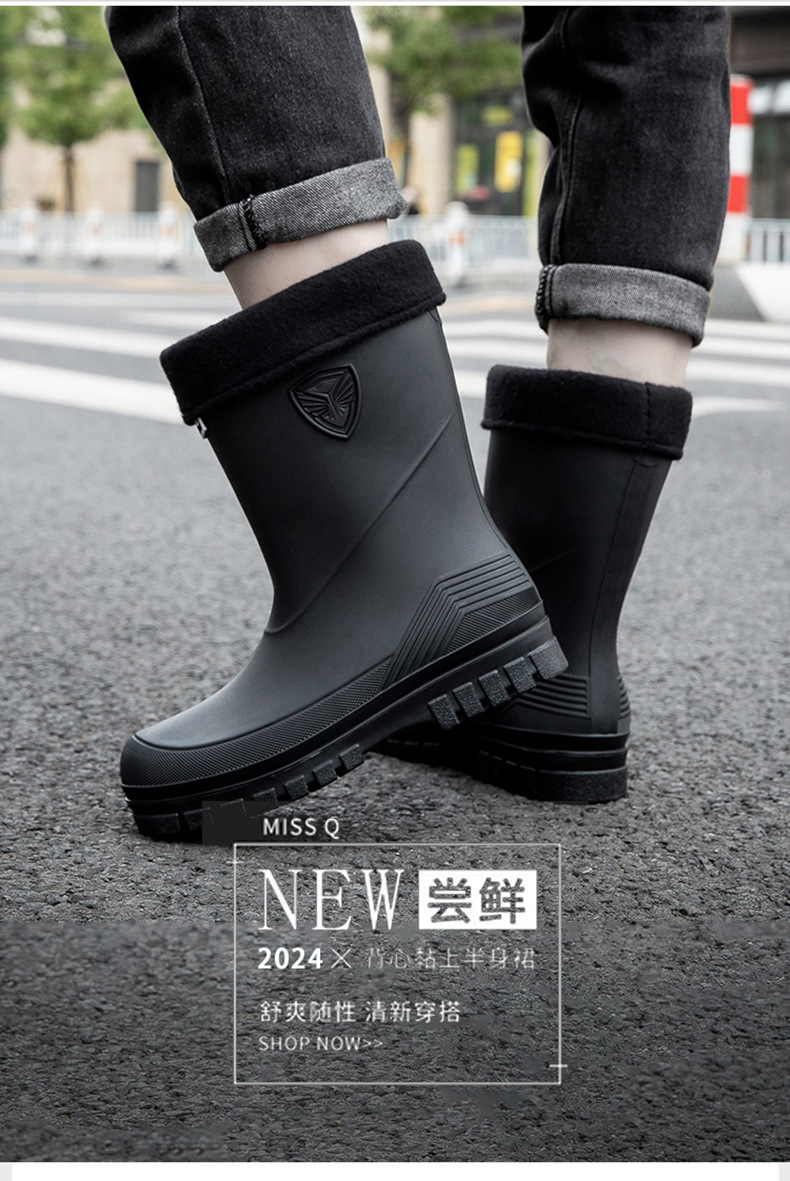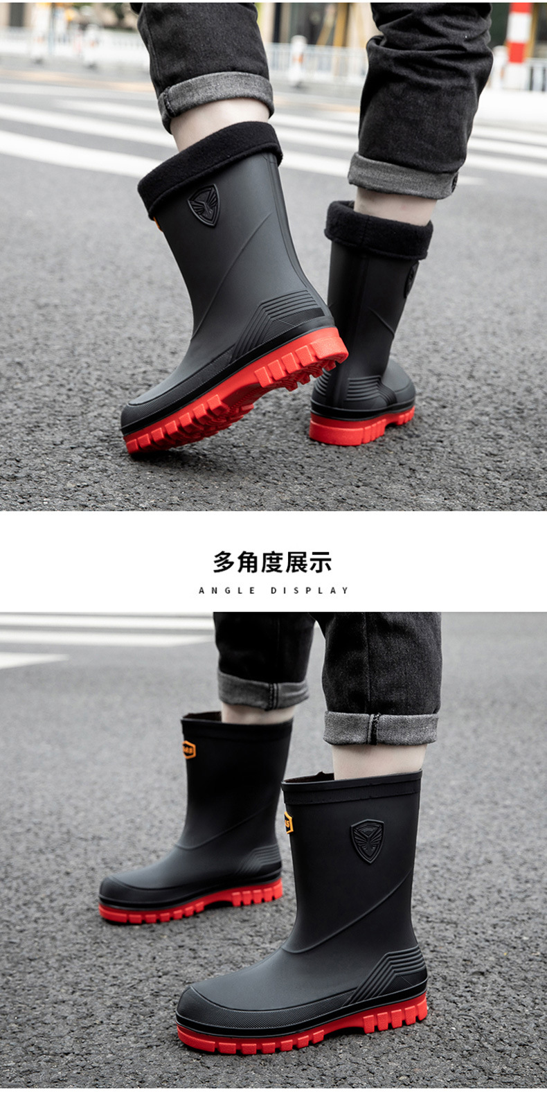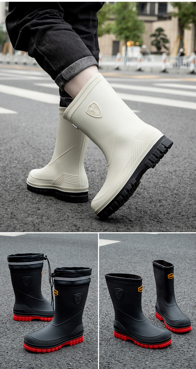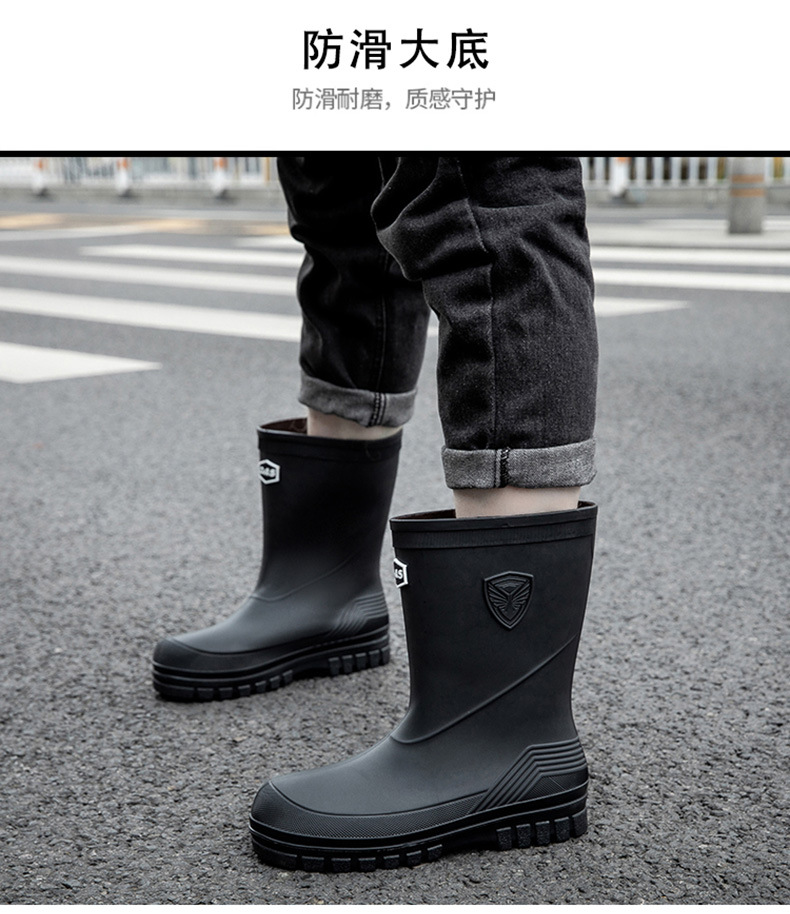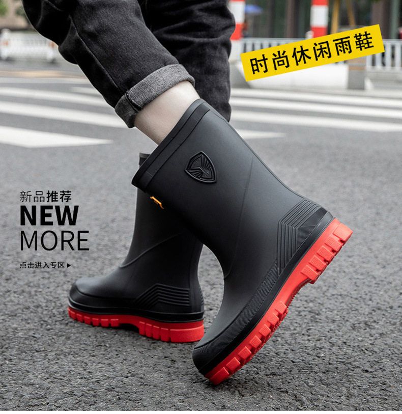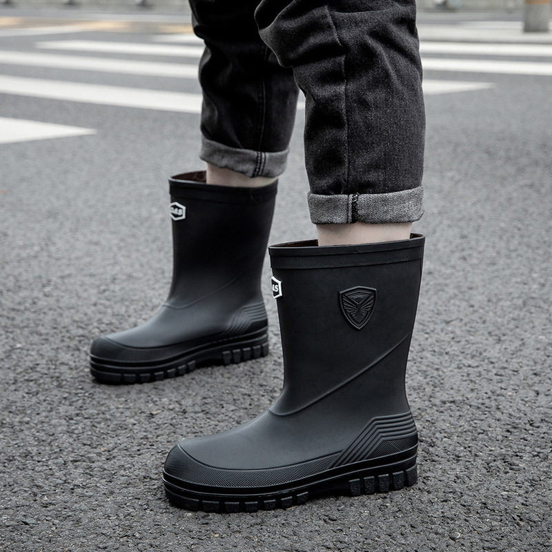 Мужские резиновые сапоги, нескользящая обувь для воды, водонепроницаемые резиновые сапоги средней длины, модные резиновые туфли без шнуровки в корейском стиле с короткой трубкой, экспортные легкие резиновые туфли.