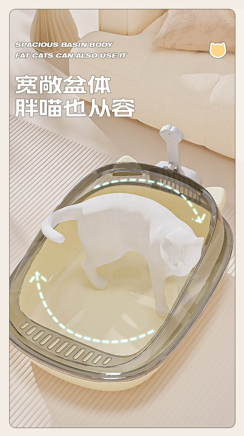 Полузакрытый кошачий туалет высокий пограничный брызг кошачий горшок кошачий песочник мультфильм милый кошачий ухо кошачий горшок